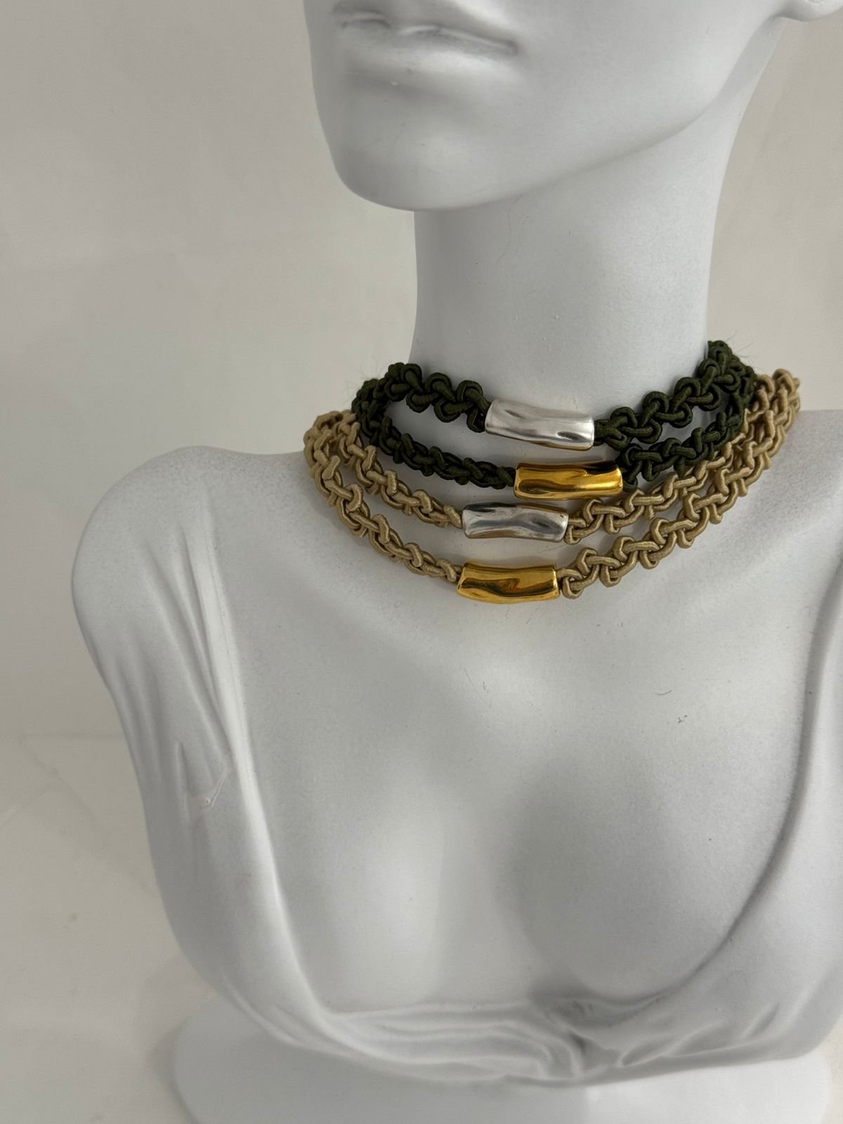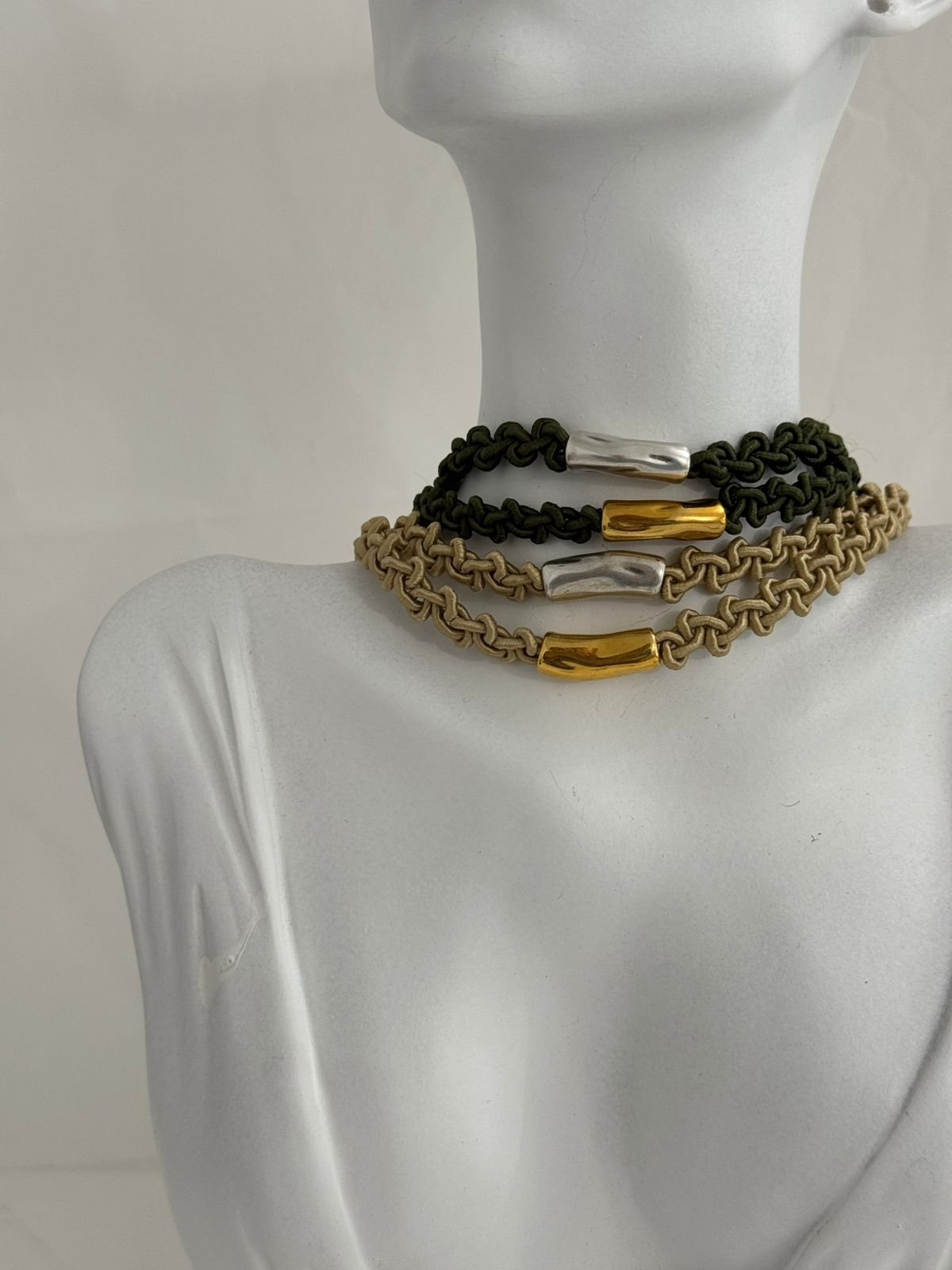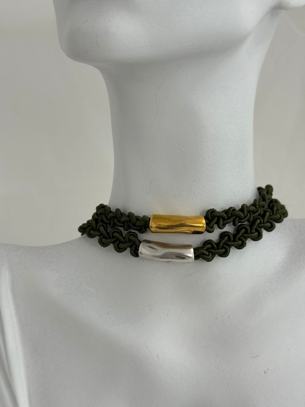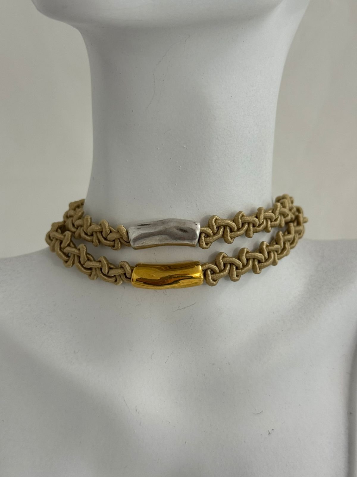 Ένα κομψό choker που συνδυάζει την ιδιαίτερη πλέξη με ένα minimal σωληνάκι στο κέντρο, δημιουργώντας έναν ακαταμάχητο συνδυασμό απλότητας και στυλ.