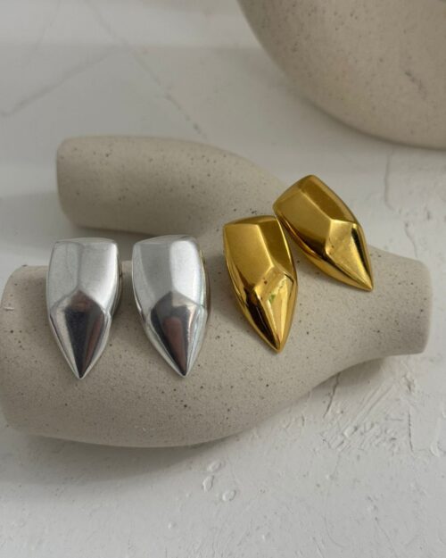 Σκουλαρίκια κρικάκια με κυματιστές βέργες και αλυσίδα με στρογγυλό σχέδιο – ένα κόσμημα με κίνηση, ρυθμό και μοντέρνα κομψότητα.