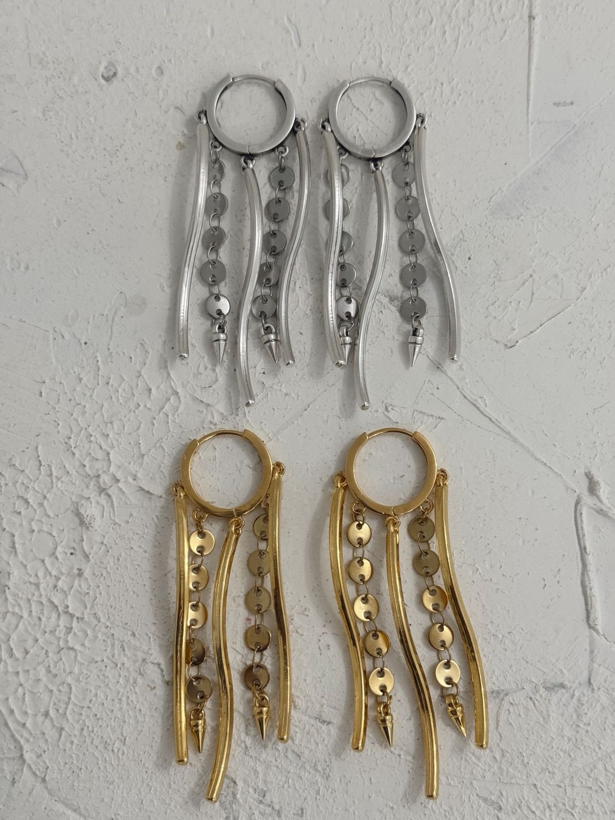 Ορειχάλκινα επιχρυσωμενα 24k/ επαργυρωμένα 925 σκουλαρίκια με ατσάλινες αλυσίδες.