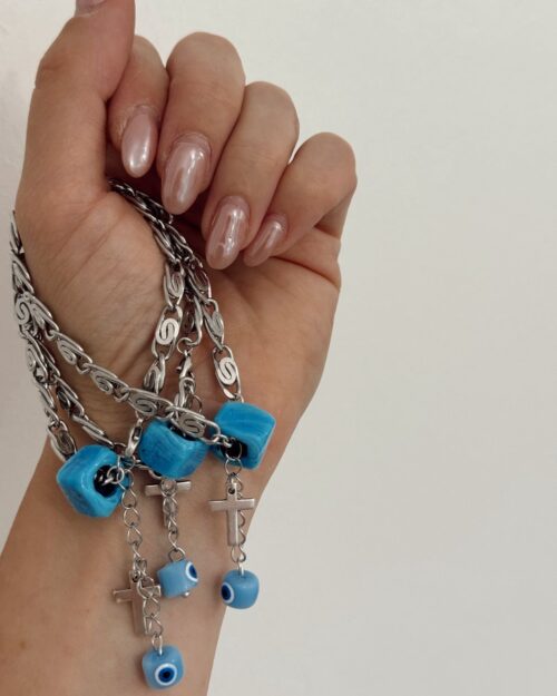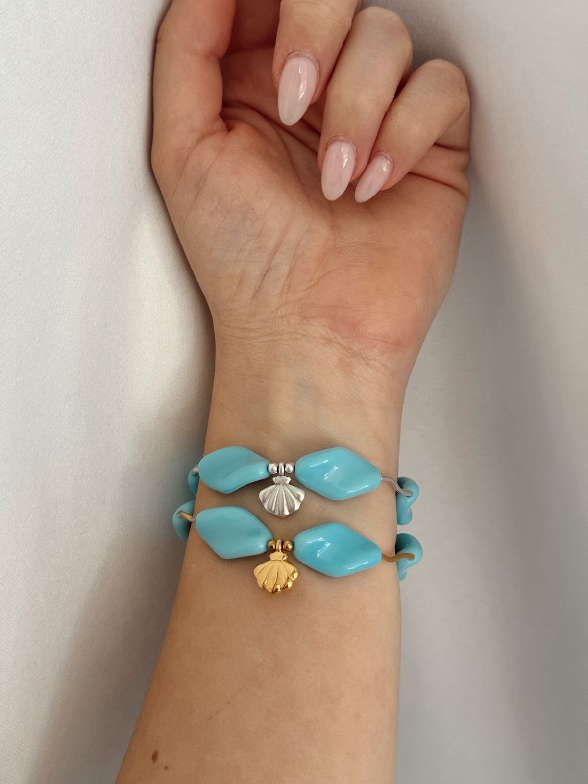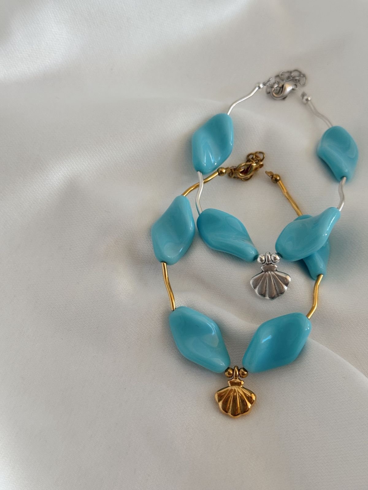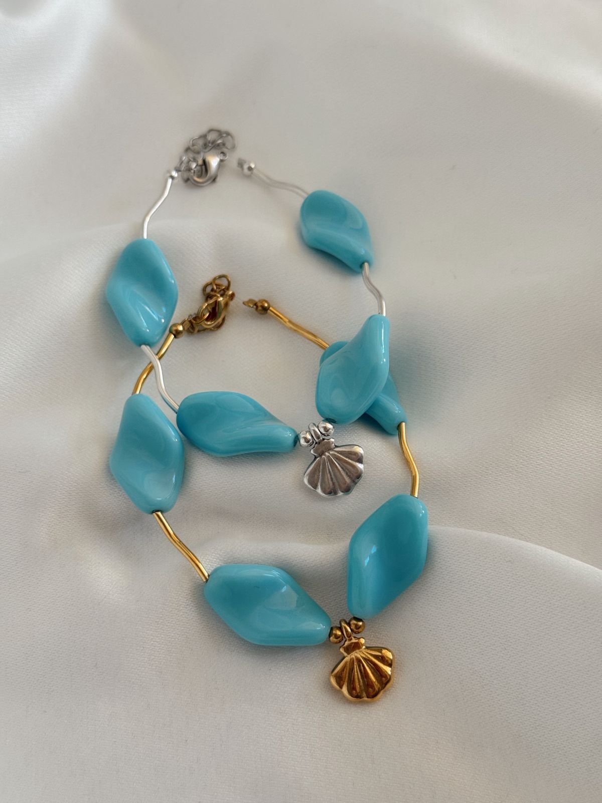 Βραχιόλι με ακρυλικές χάντρες και ορειχαλκινα επαργυρωμένα 925/ επιχρυσωμένα 24Κ στοιχεία.
