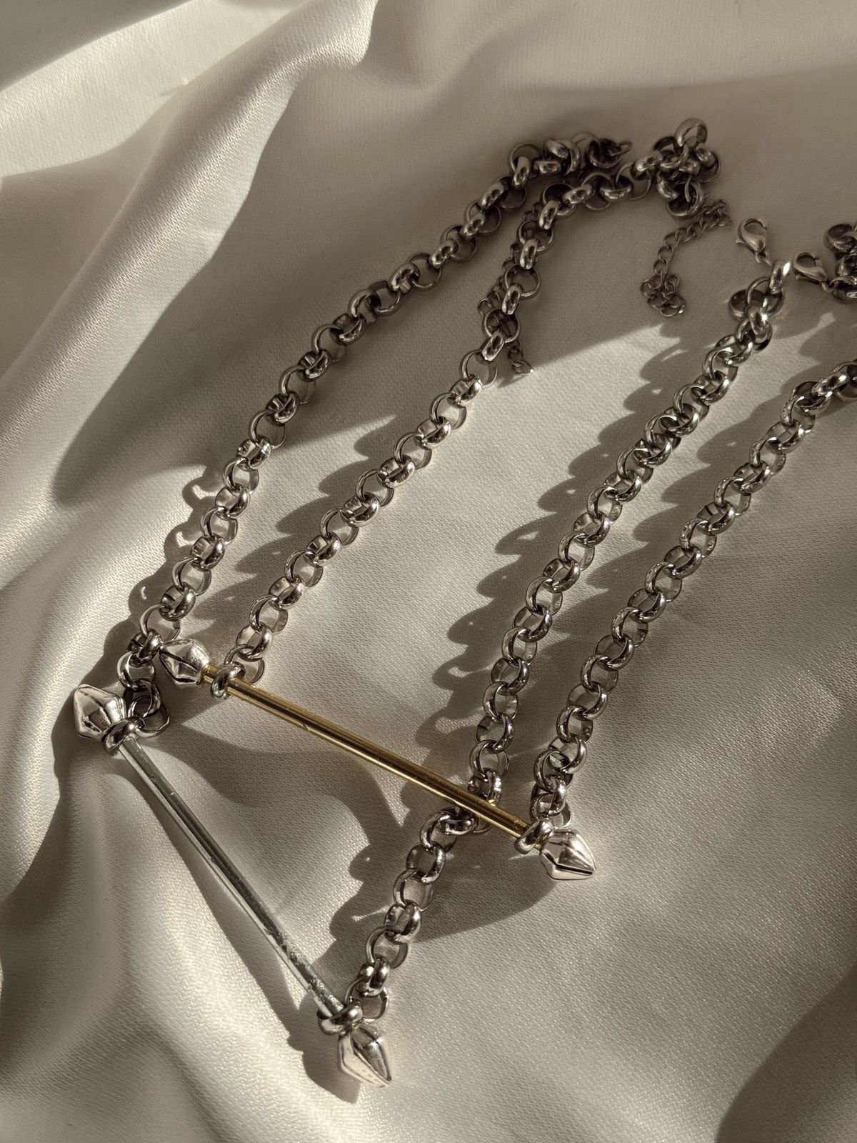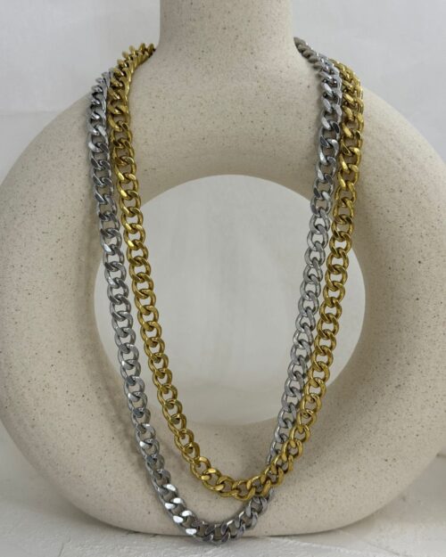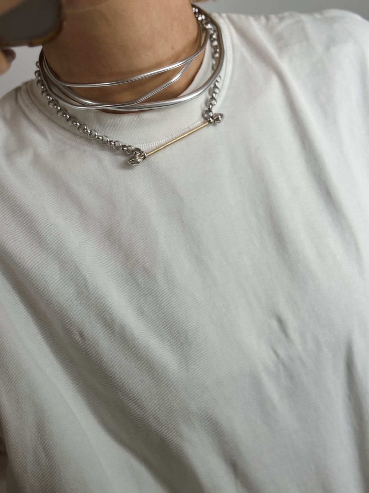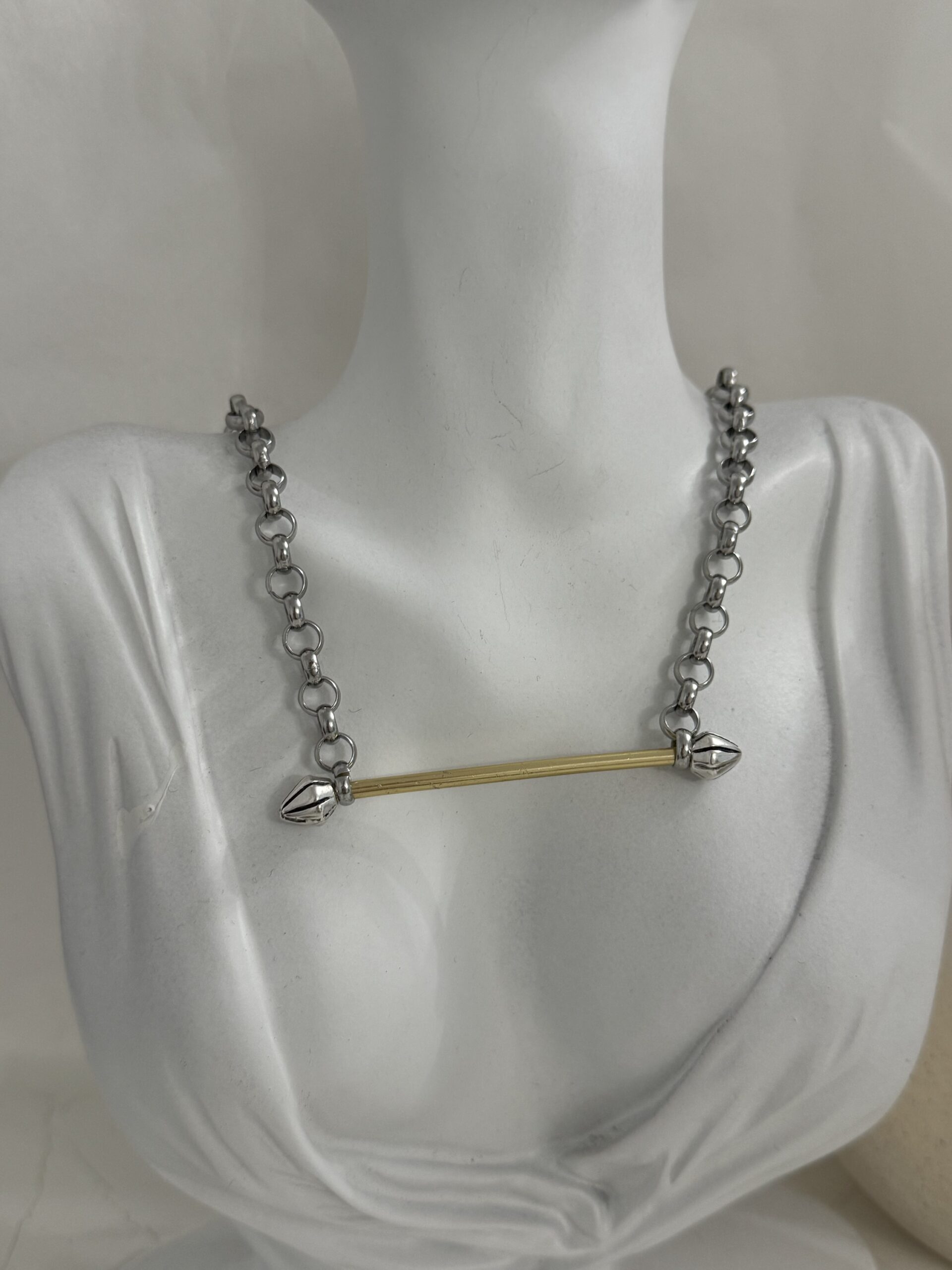 Κολιέ με ατσάλινη αλυσίδα και χειροποίητη μπάρα στο κέντρο, σύμβολο ισορροπίας και διακριτικής πολυτέλειας. Ένα διαχρονικό κόσμημα που φοριέται από το πρωί μέχρι το βράδυ.