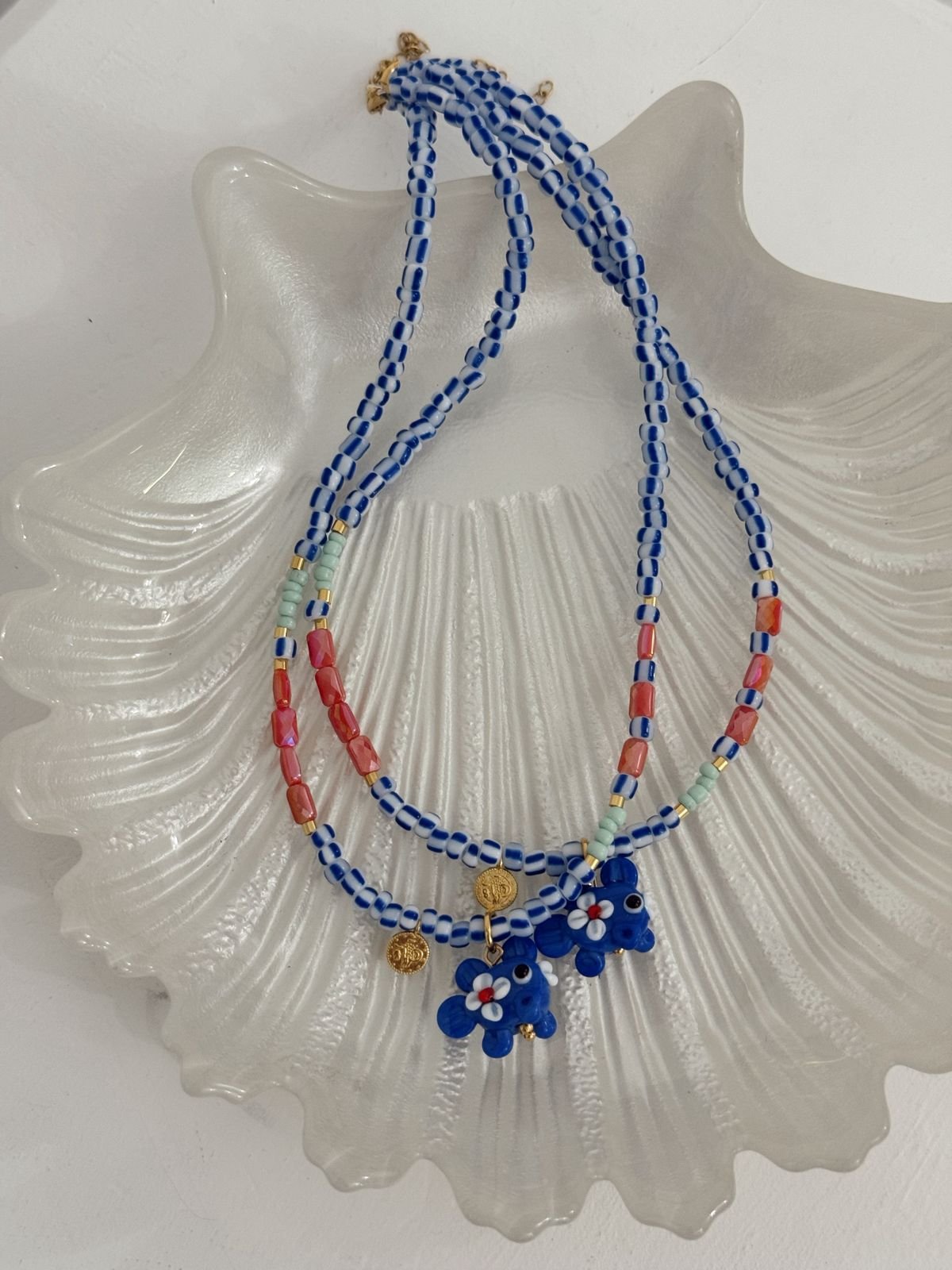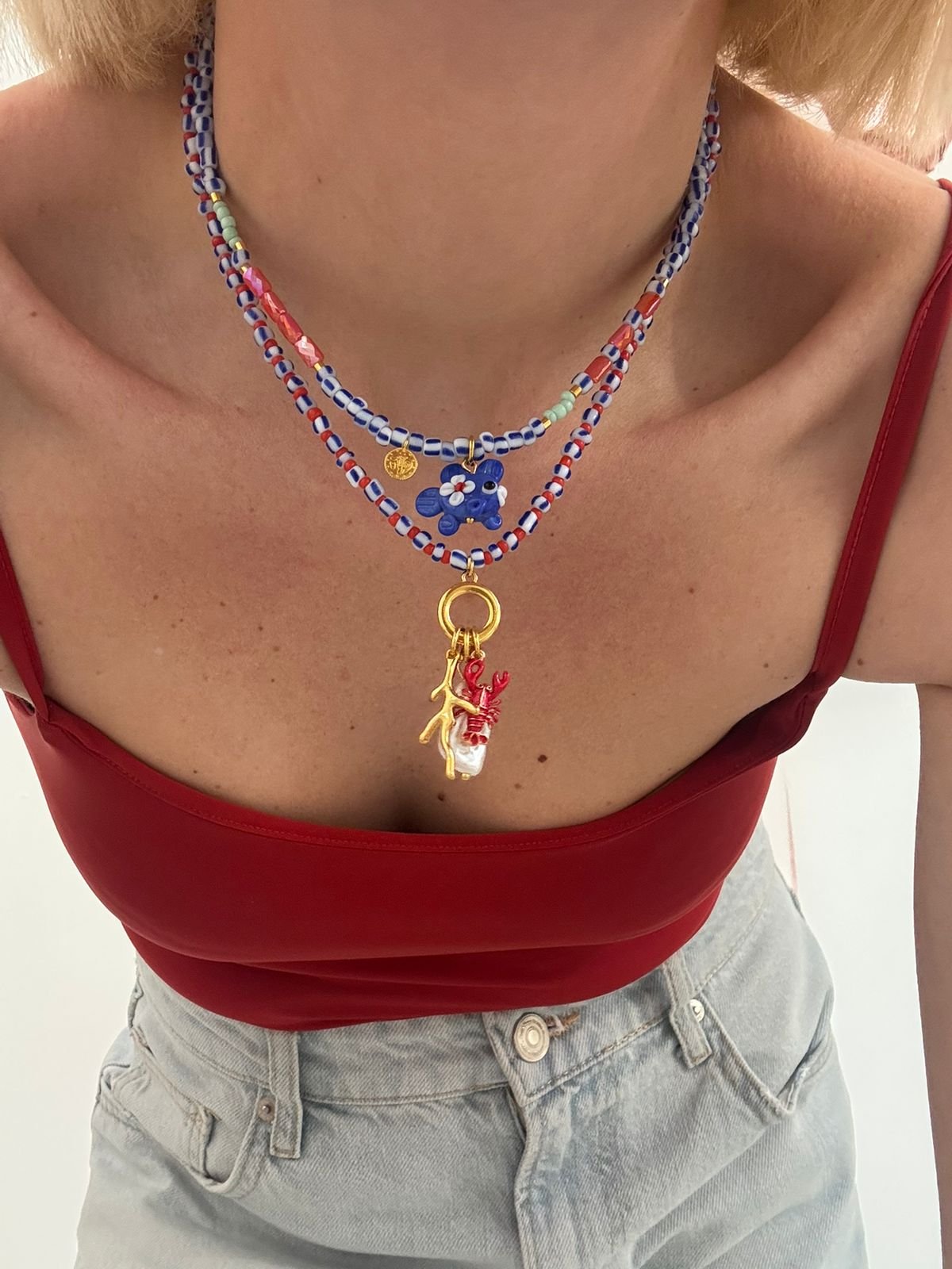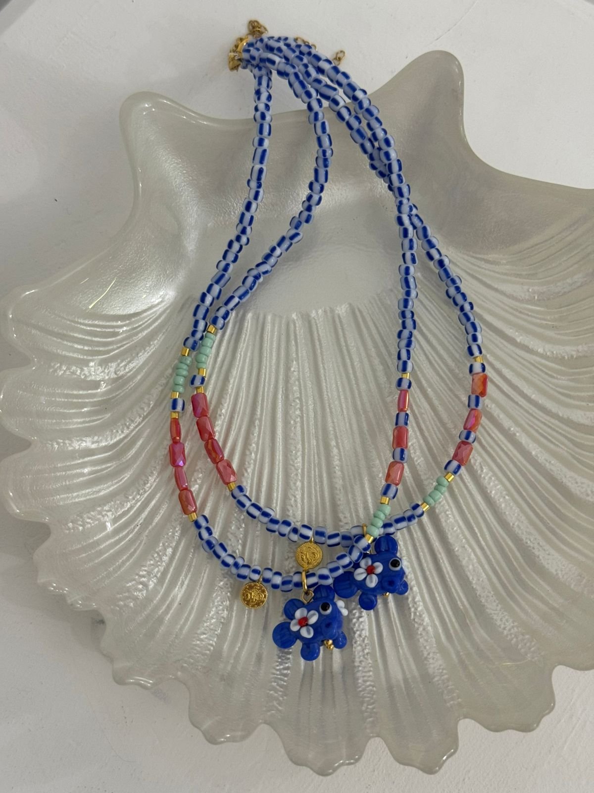 Κολιέ με χάντρες, γυάλινο και ορειχαλκινο στοιχείο.
