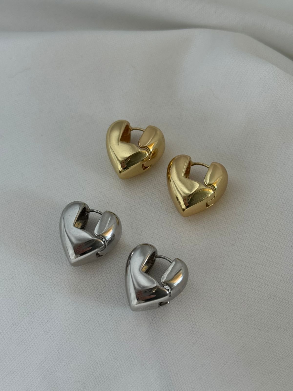 Bold ατσάλινα σκουλαρίκια σε σχήμα καρδιάς που κλέβουν τις εντυπώσεις από την πρώτη στιγμή. Έντονα, θηλυκά και γεμάτα χαρακτήρα, δίνουν στυλ σε κάθε εμφάνιση και αναδεικνύουν την πιο δυναμική πλευρά της κομψότητας. Το ιδανικό κόσμημα για όσες αγαπούν να ξεχωρίζουν και να εκφράζονται μέσα από τις λεπτομέρειες.