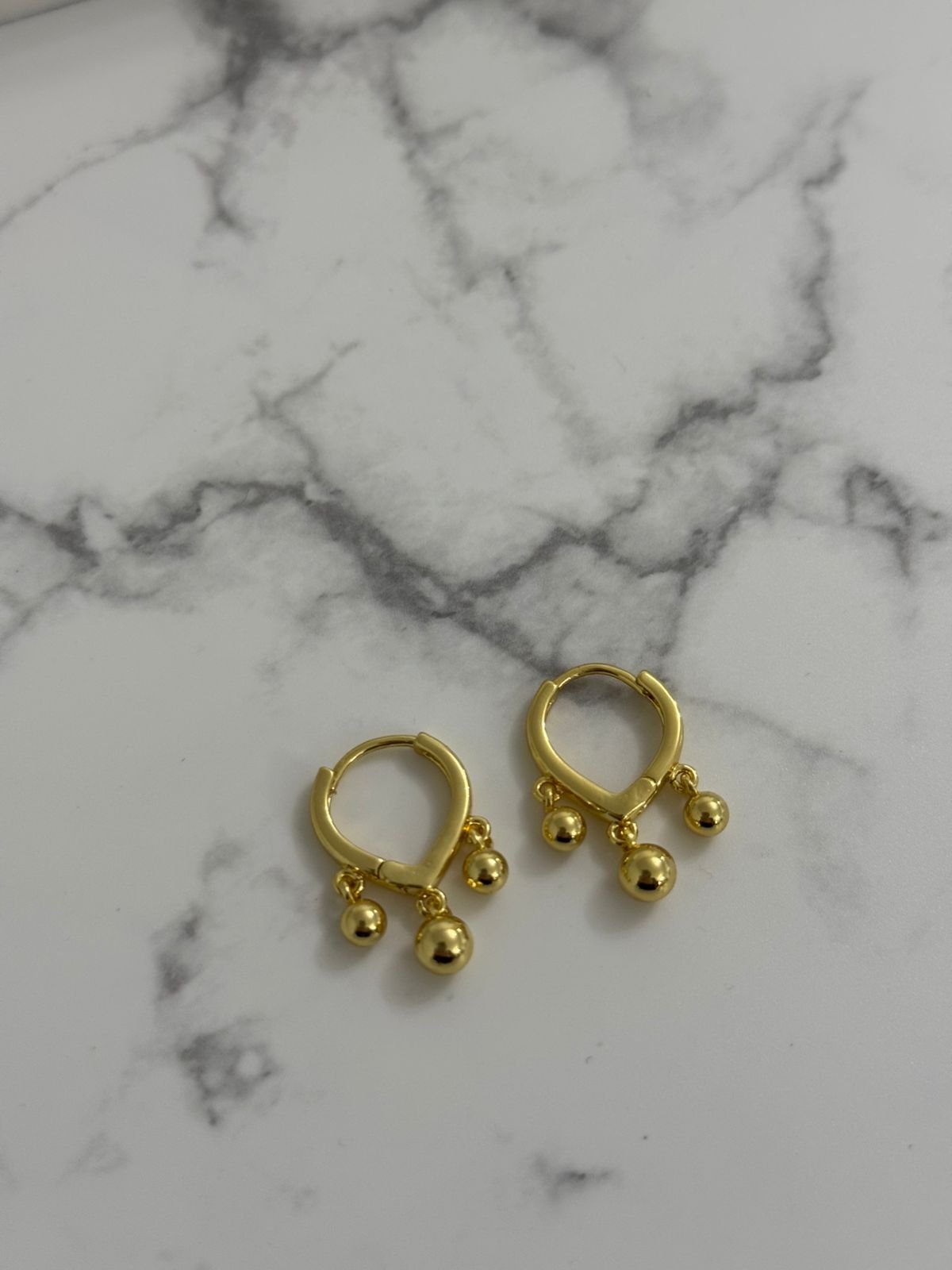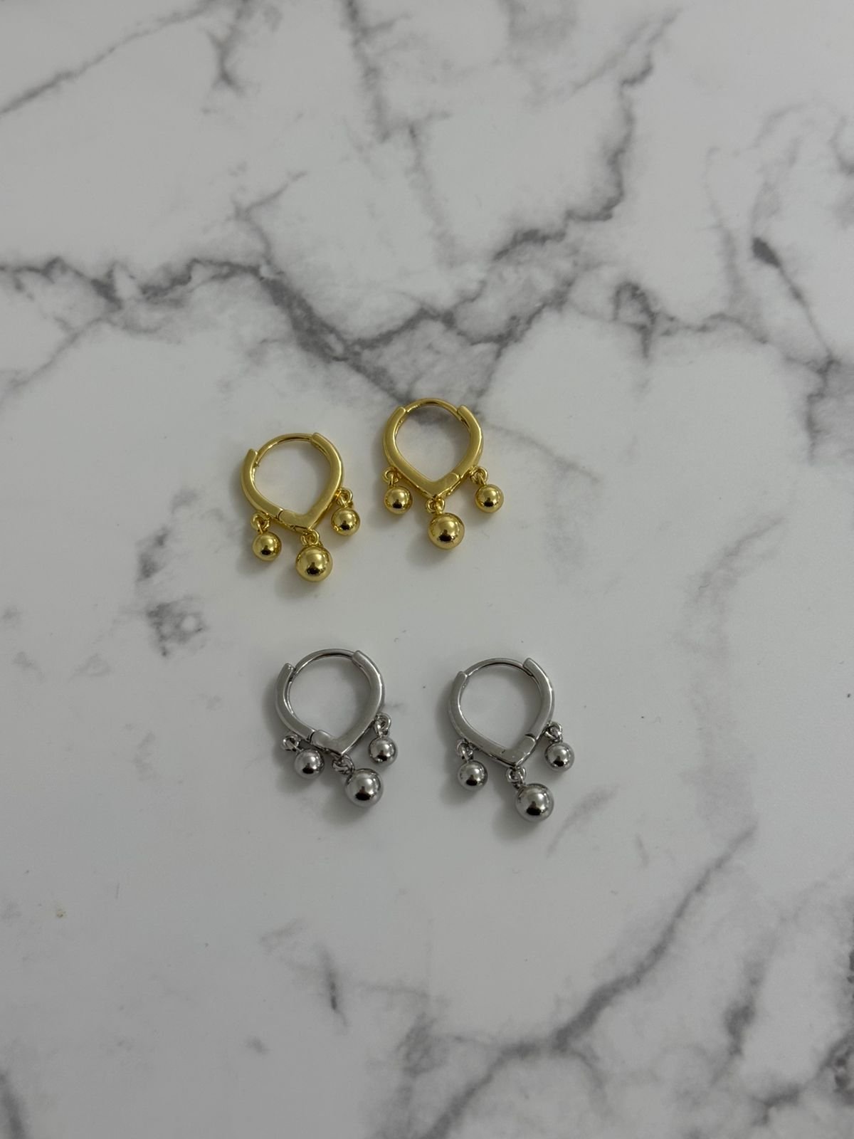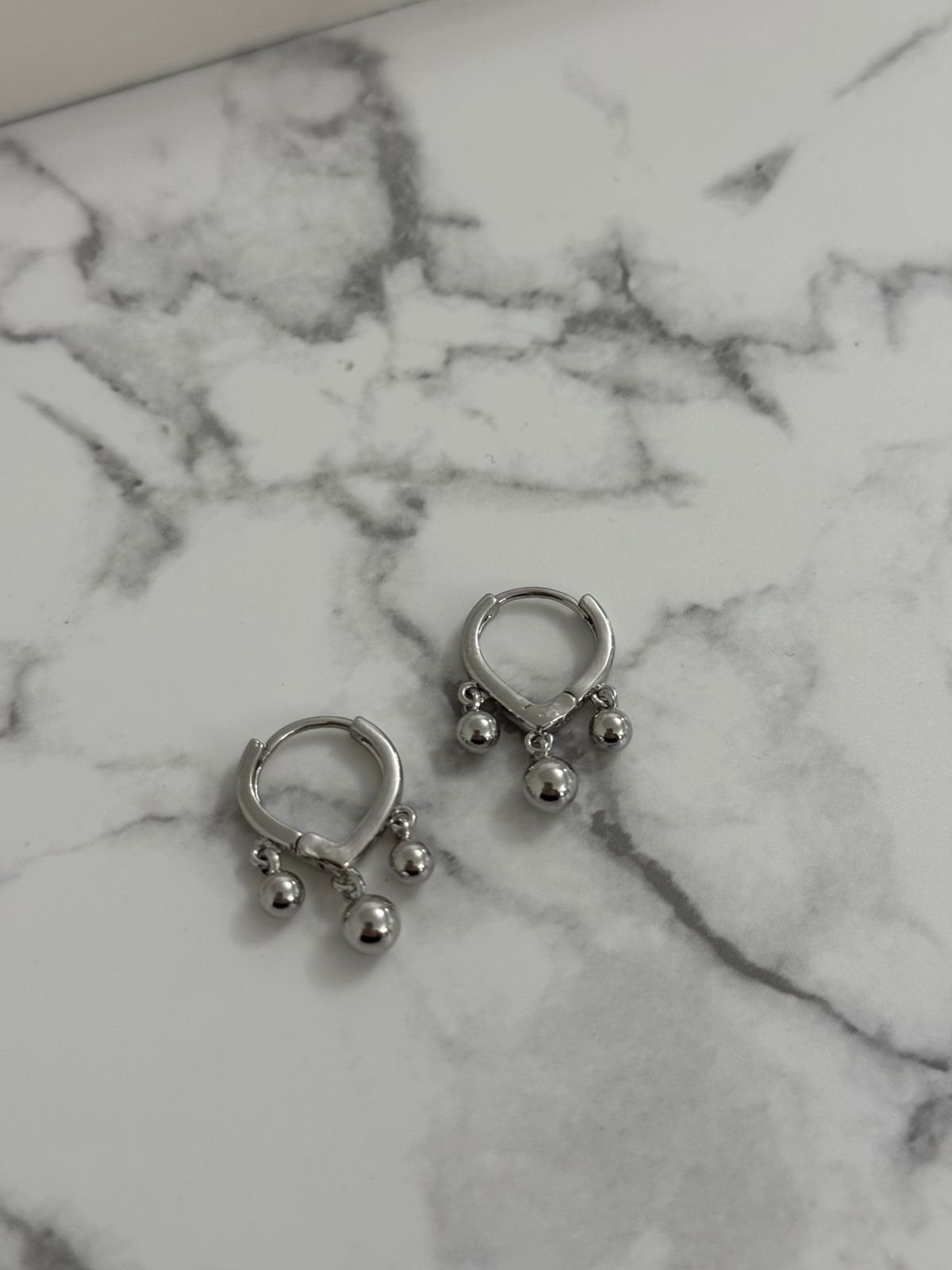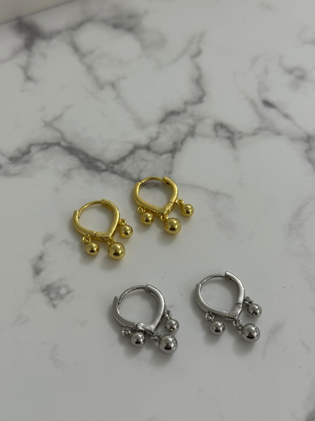 Ατσάλινα σκουλαρίκια με τρία κρικάκια και mini στρογγυλές χάντρες, που προσθέτουν κίνηση και διακριτική λάμψη.