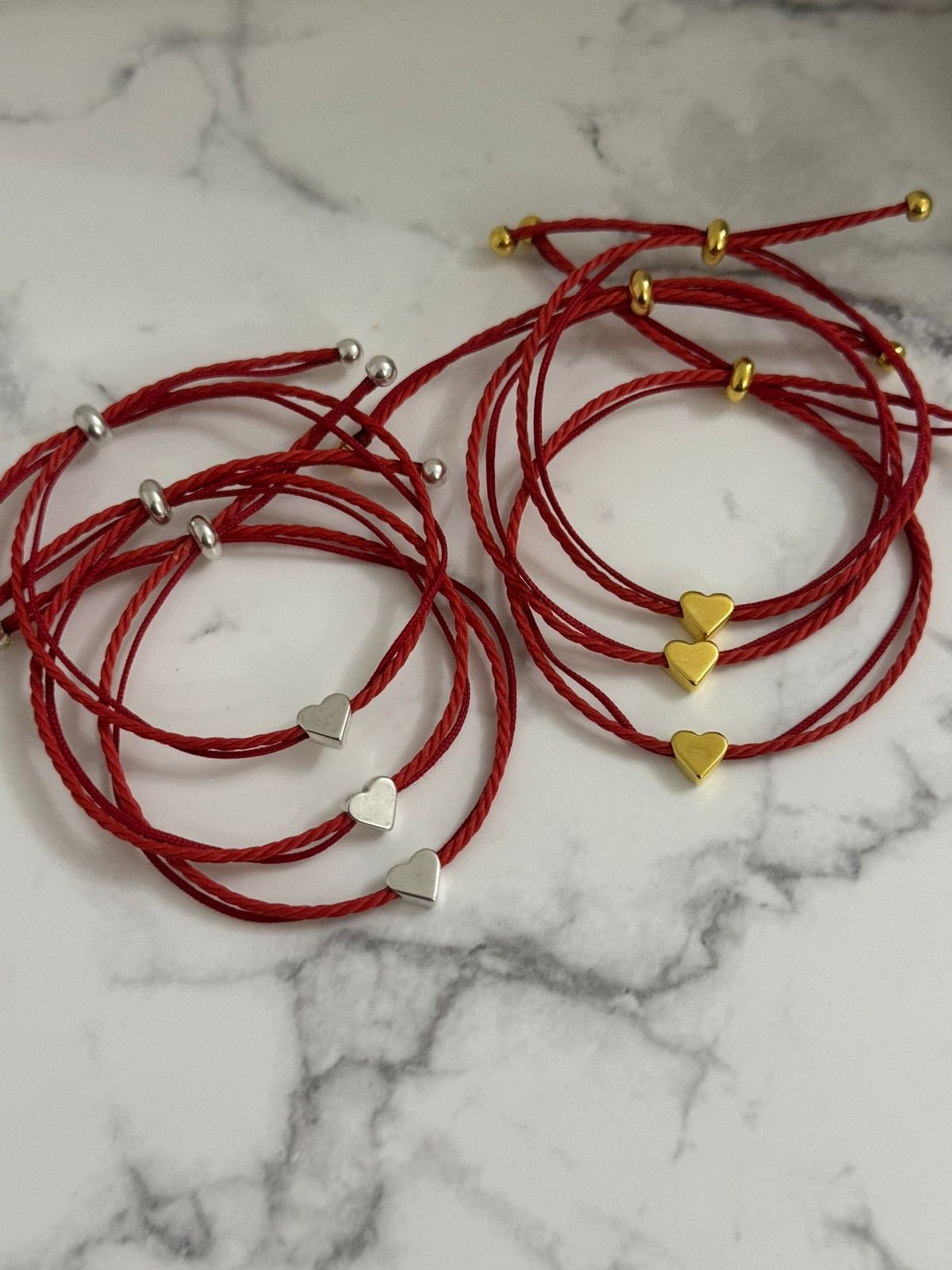 Ένα βραχιόλι με μίνι καρδιά και κόκκινη διπλή κλωστή, φτιαγμένο για να θυμίζει πως τα πιο μικρά σύμβολα κρύβουν τη μεγαλύτερη αγάπη.