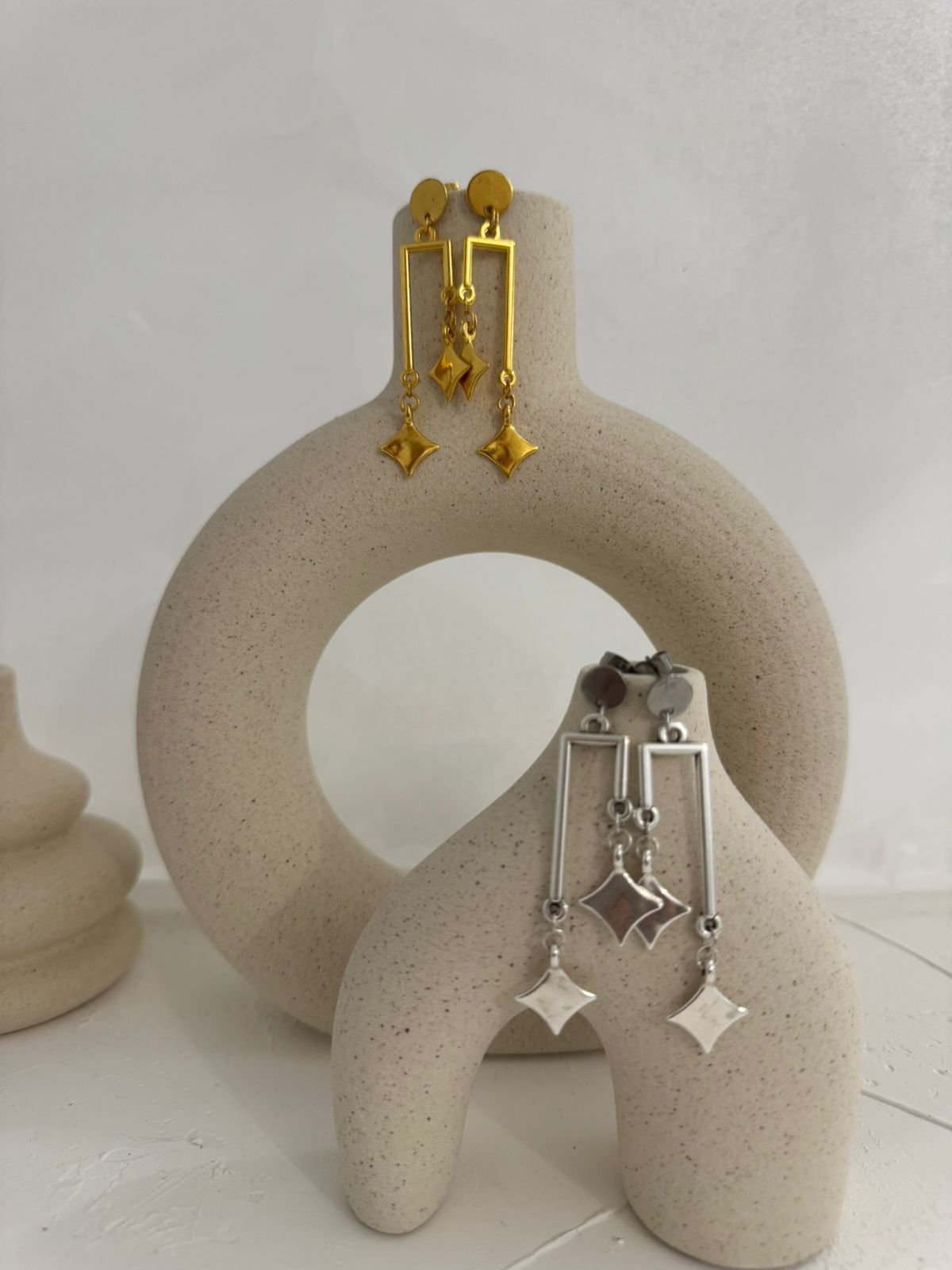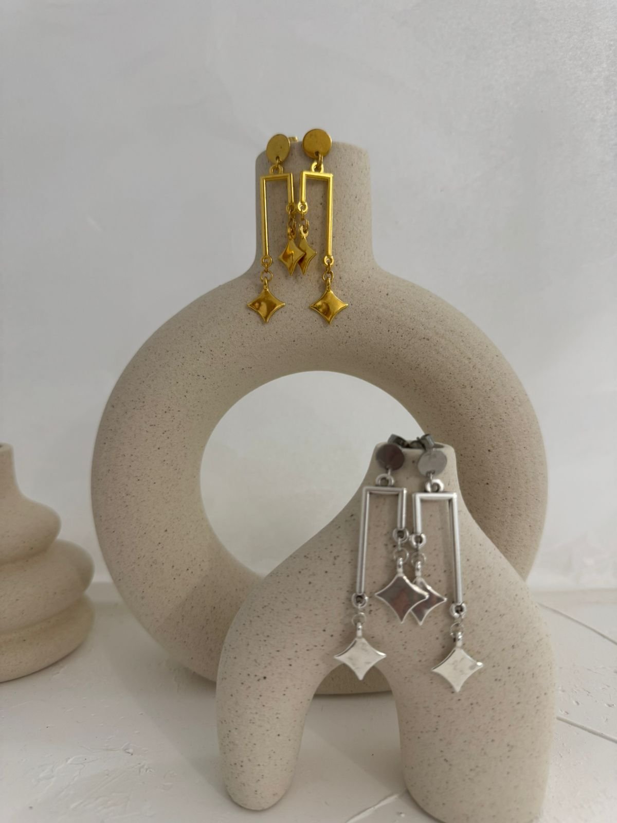 Σκουλαρίκια με γεωμετρικά σχήματα που συνδυάζουν κομψότητα και σύγχρονο design.