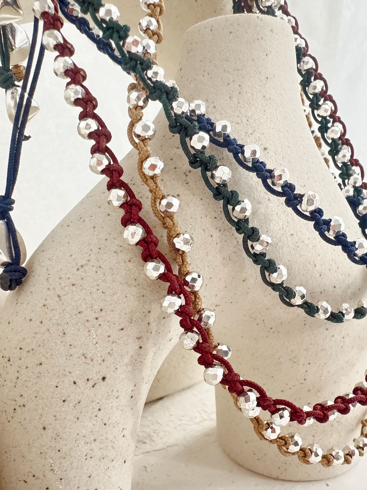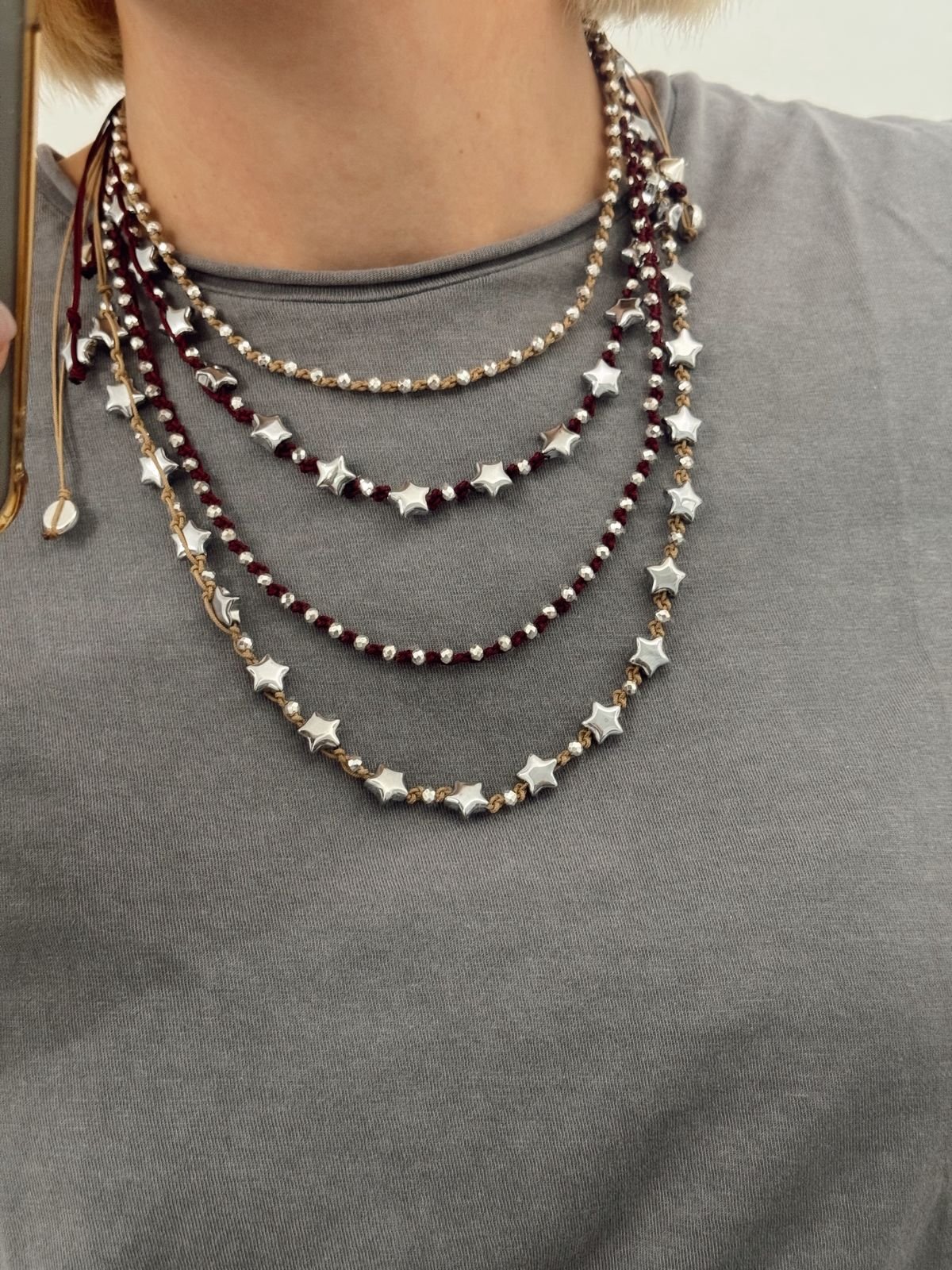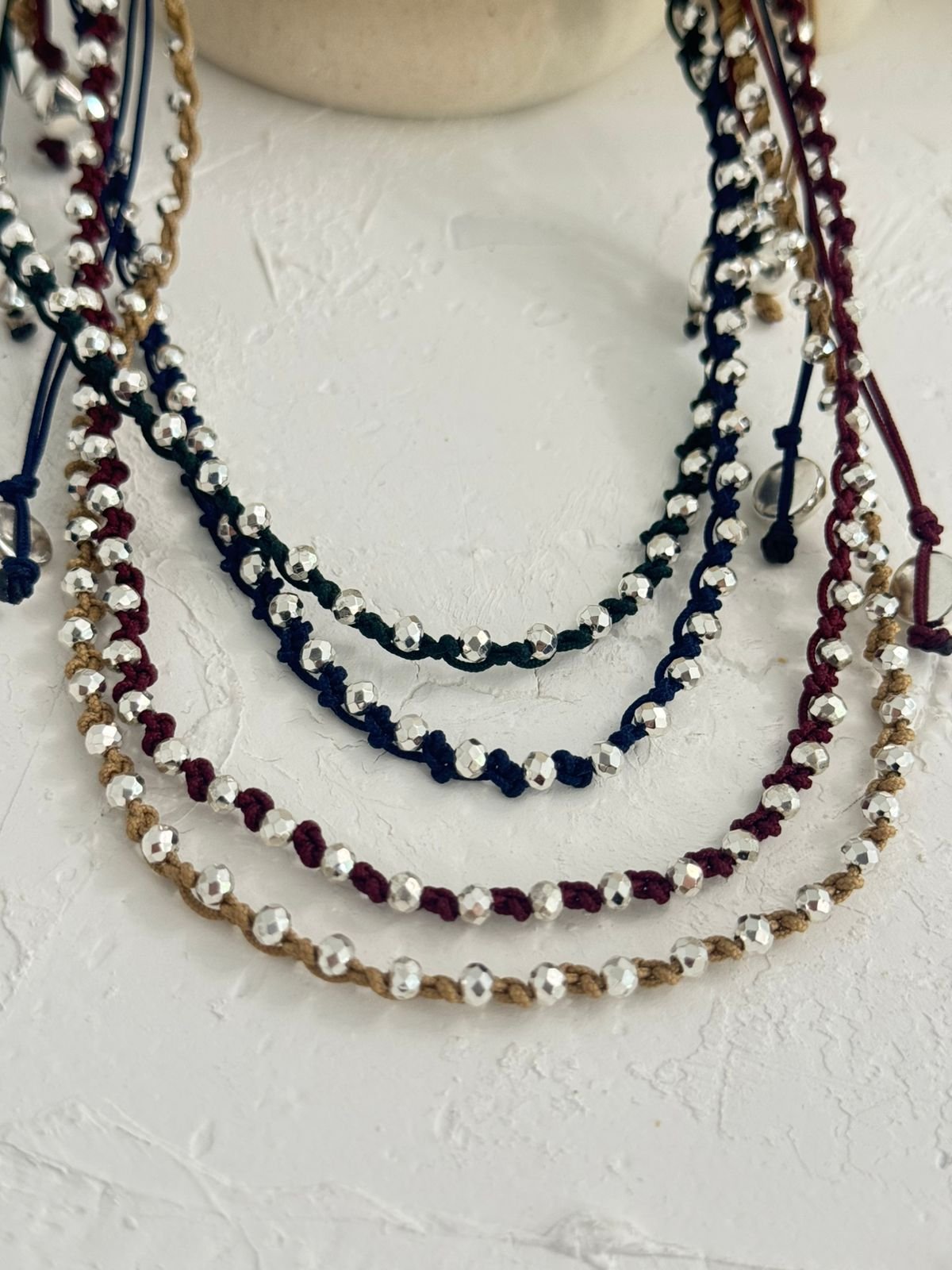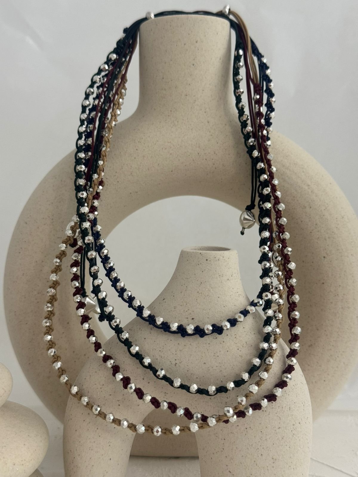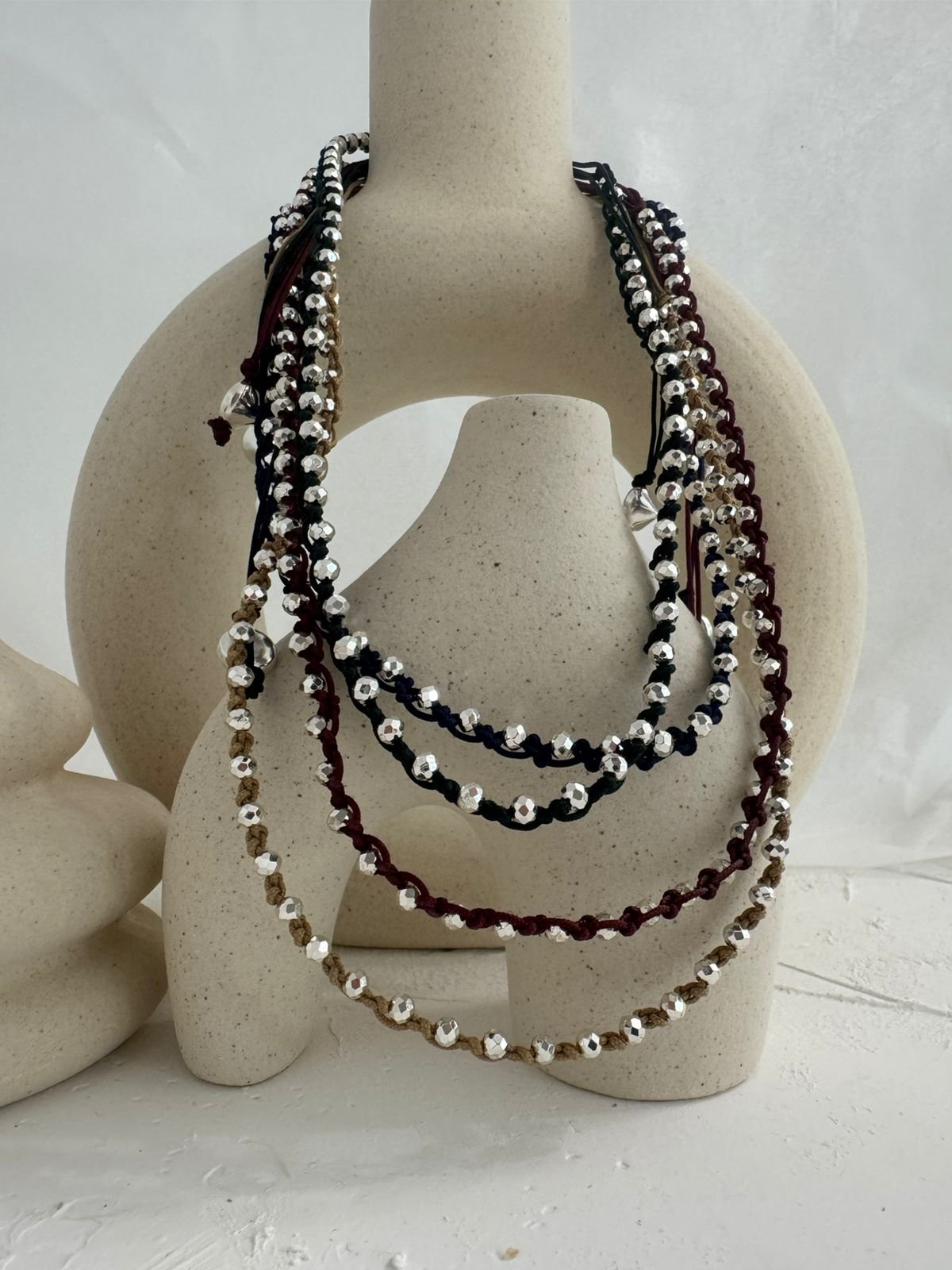 ✨ «Κολιέ με λεπτές, πλεγμένες χάντρες που λαμποκοπούν σε κάθε κίνηση. Φοριέται με δύο τρόπους – κοντά για κομψή λάμψη ή πιο μακρύ για χαλαρή κομψότητα. Ένα κομμάτι που προσαρμόζεται στη διάθεσή σου.»