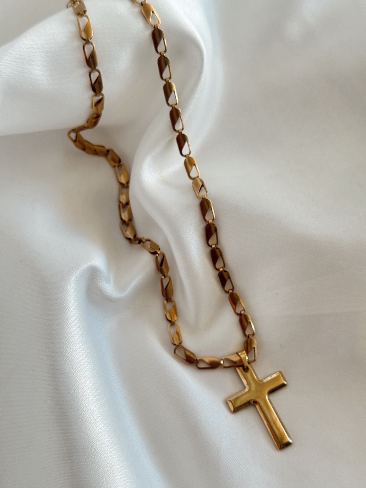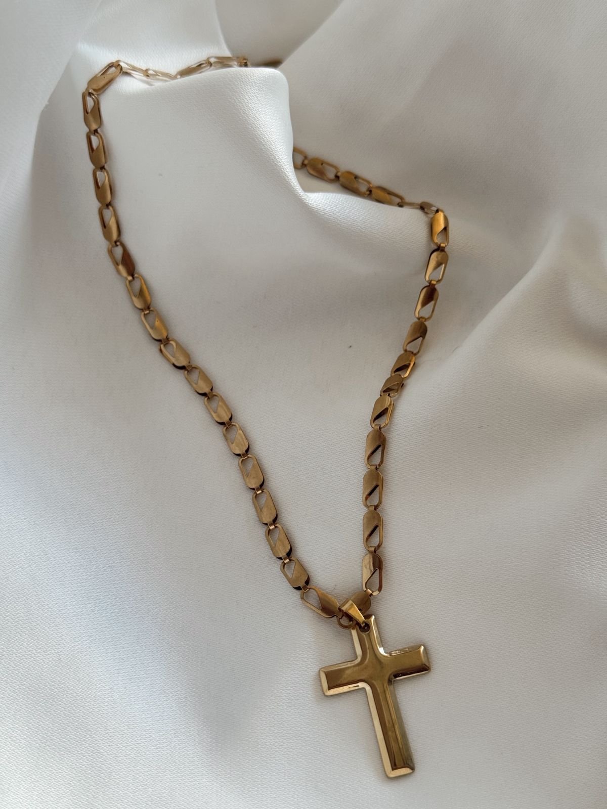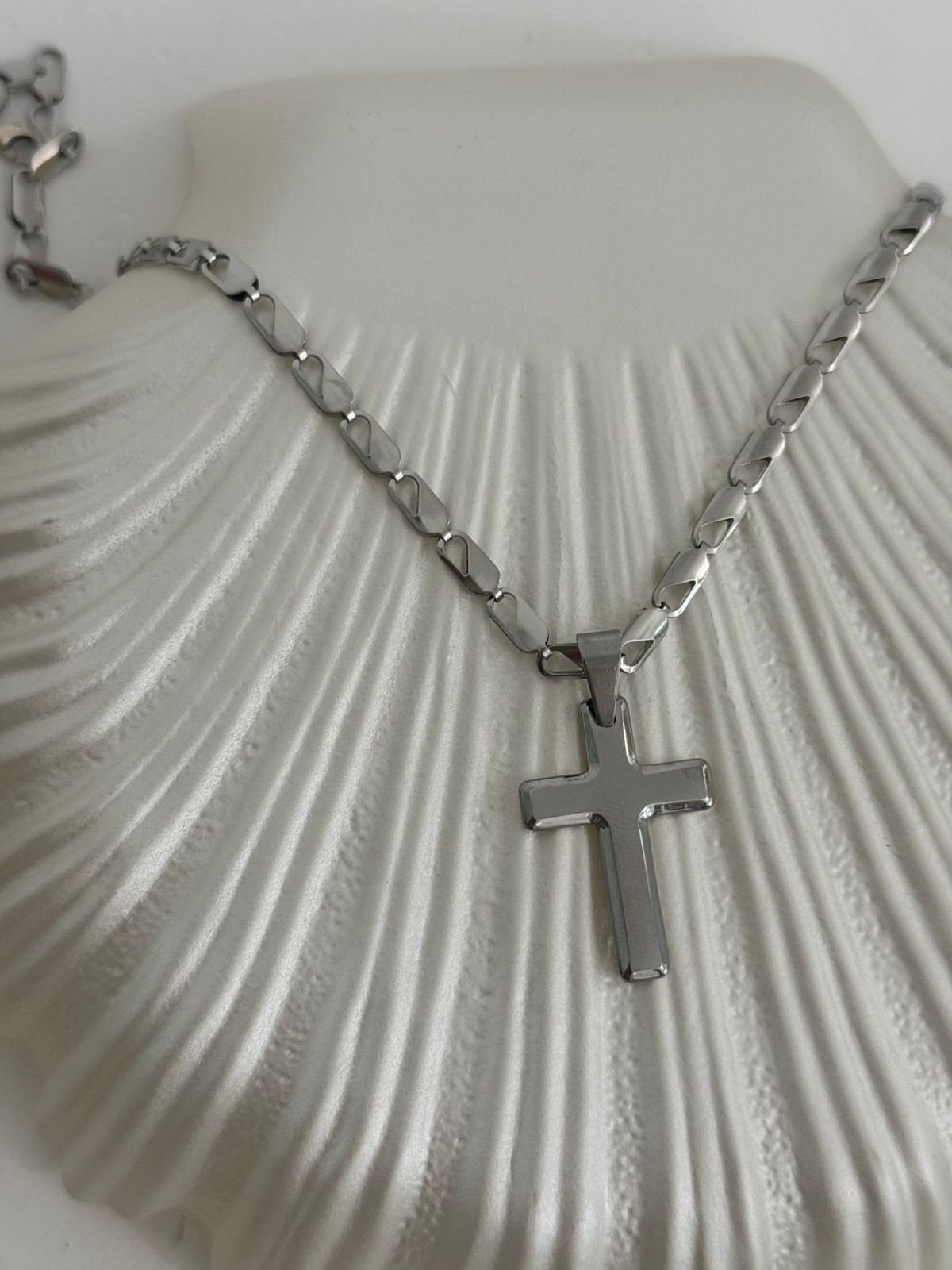 Κολιέ με ατσάλινη αλυσίδα κ ατσάλινο σταυρό.