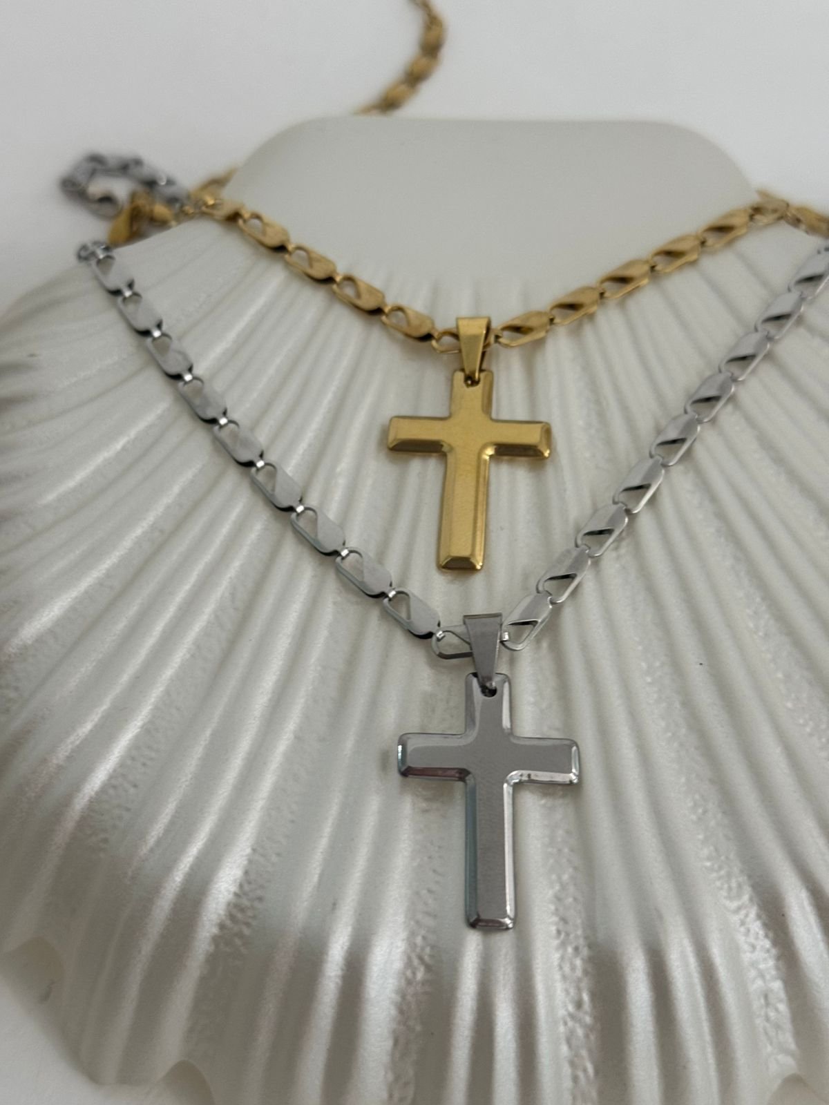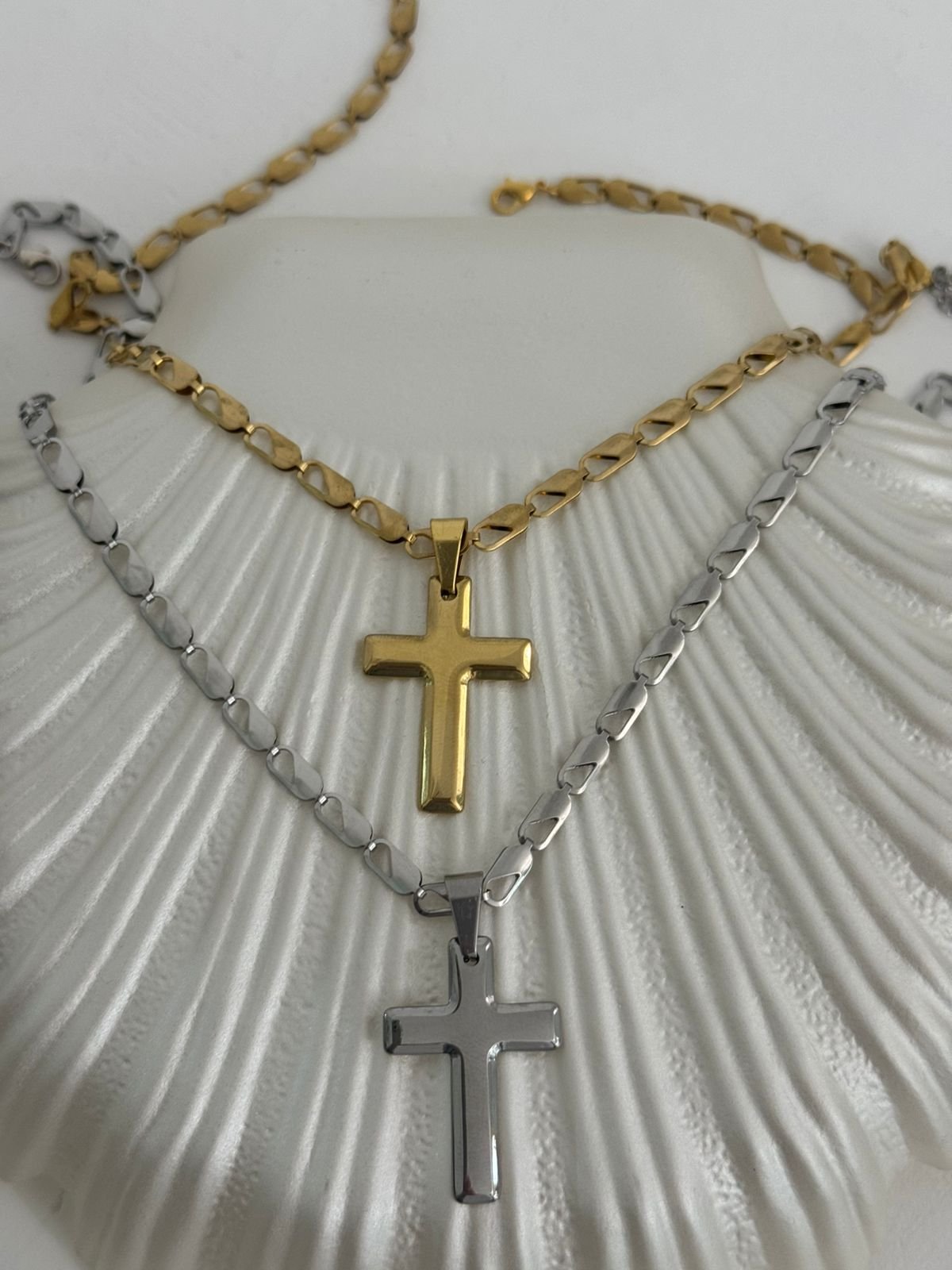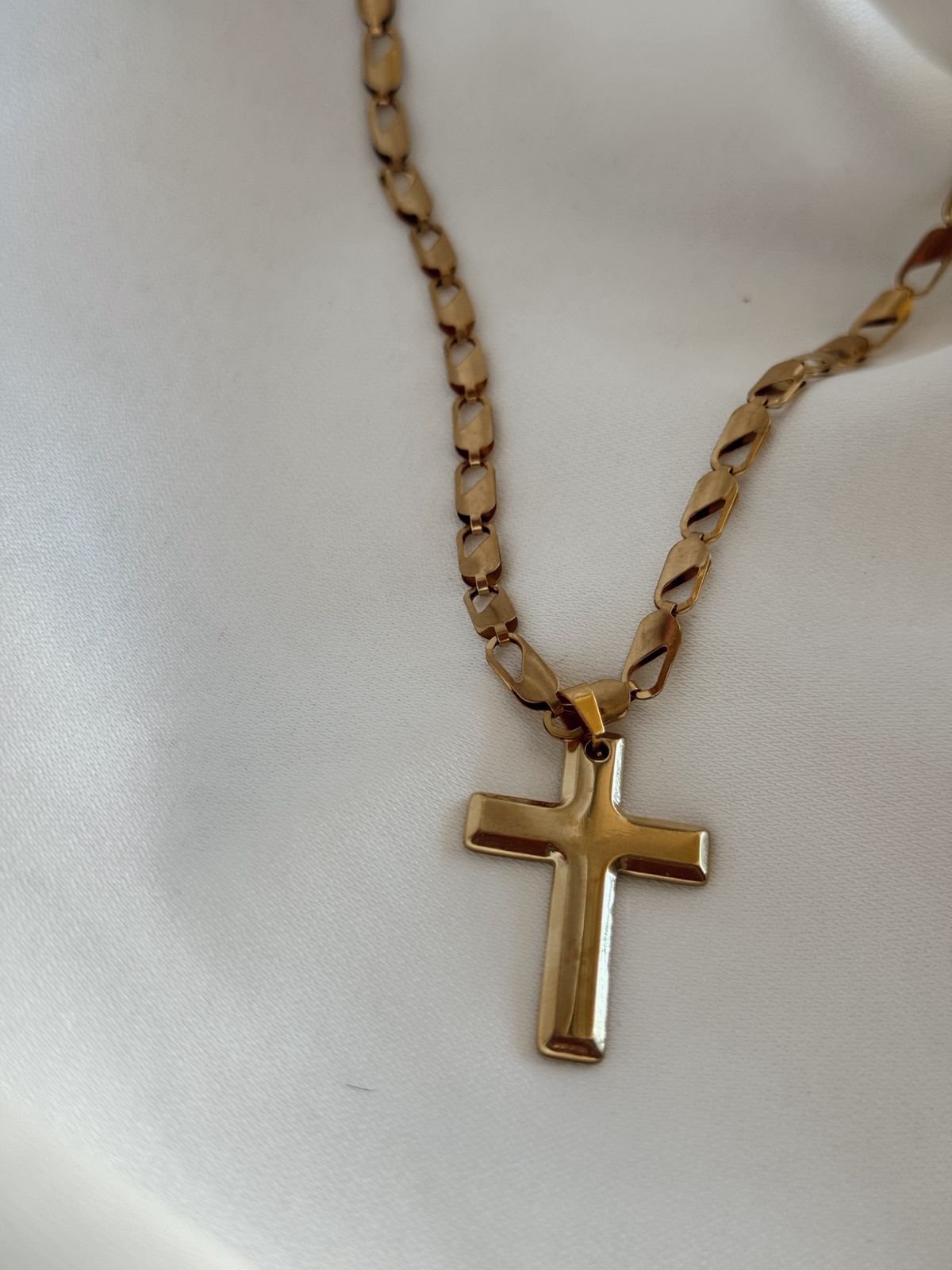 Κολιέ με ατσάλινη αλυσίδα κ ατσάλινο σταυρό.