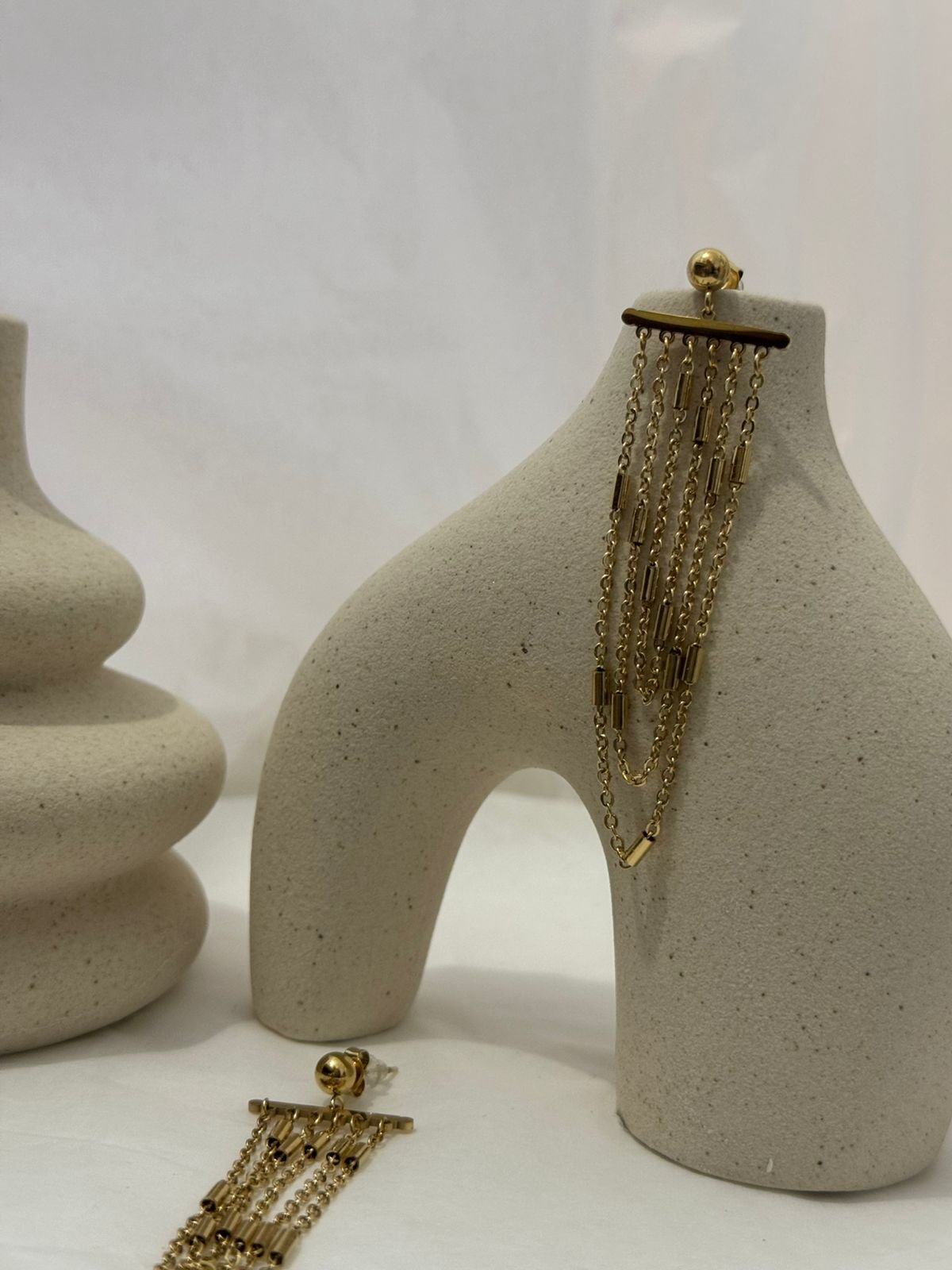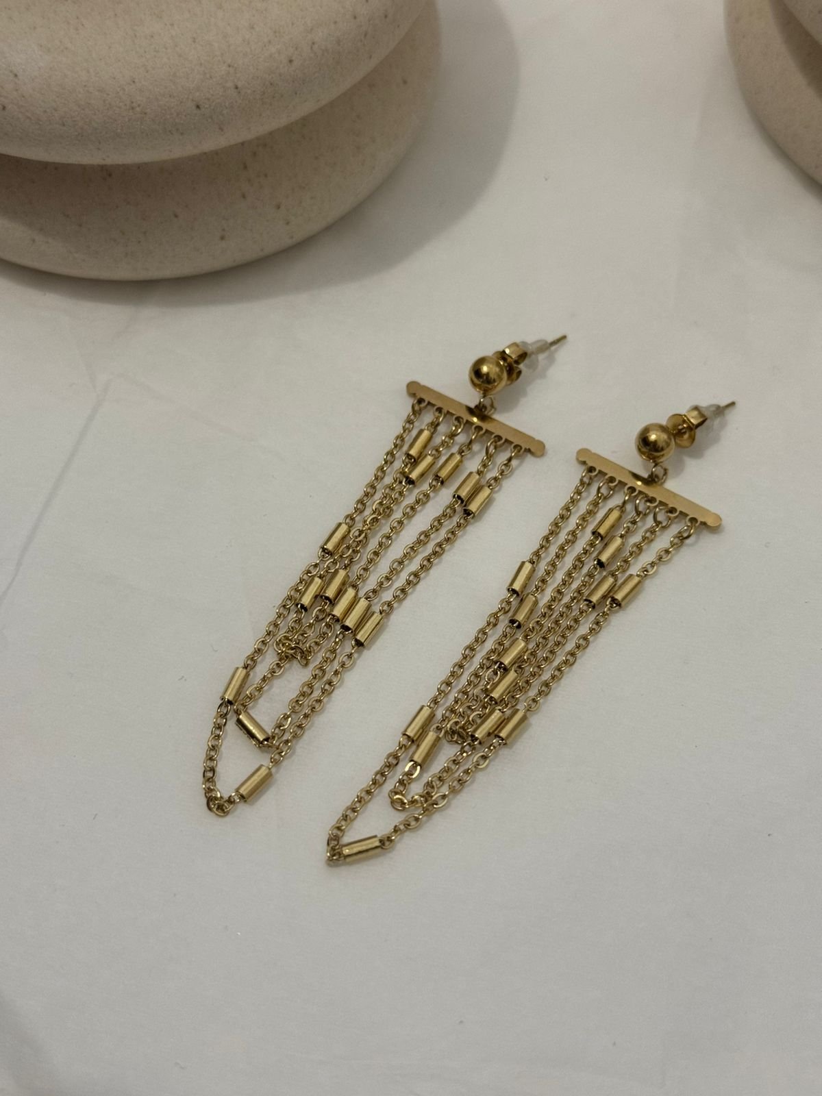 Κομψά σκουλαρίκια με λεπτές αλυσίδες που πέφτουν απαλά, δημιουργώντας κίνηση και διακριτική λάμψη σε κάθε βήμα. Το minimal αλλά εντυπωσιακό τους σχέδιο τα κάνει ιδανικά τόσο για καθημερινές εμφανίσεις όσο και για πιο βραδινά looks. Ένα μοντέρνο κόσμημα που προσθέτει δυναμικότητα και στυλ σε κάθε σύνολο. ✨