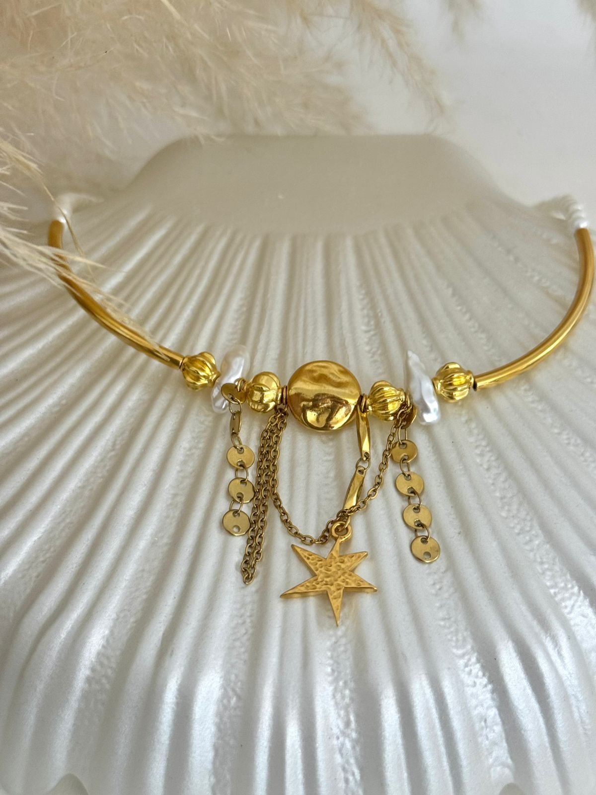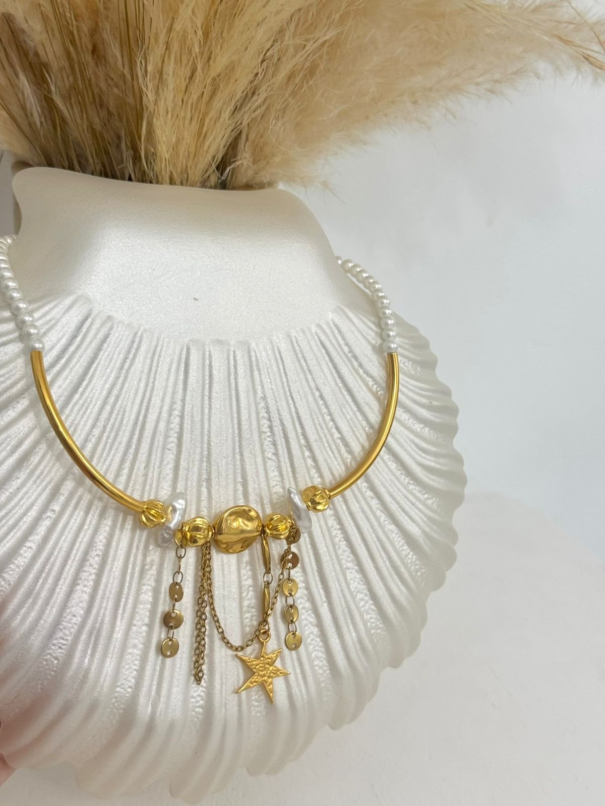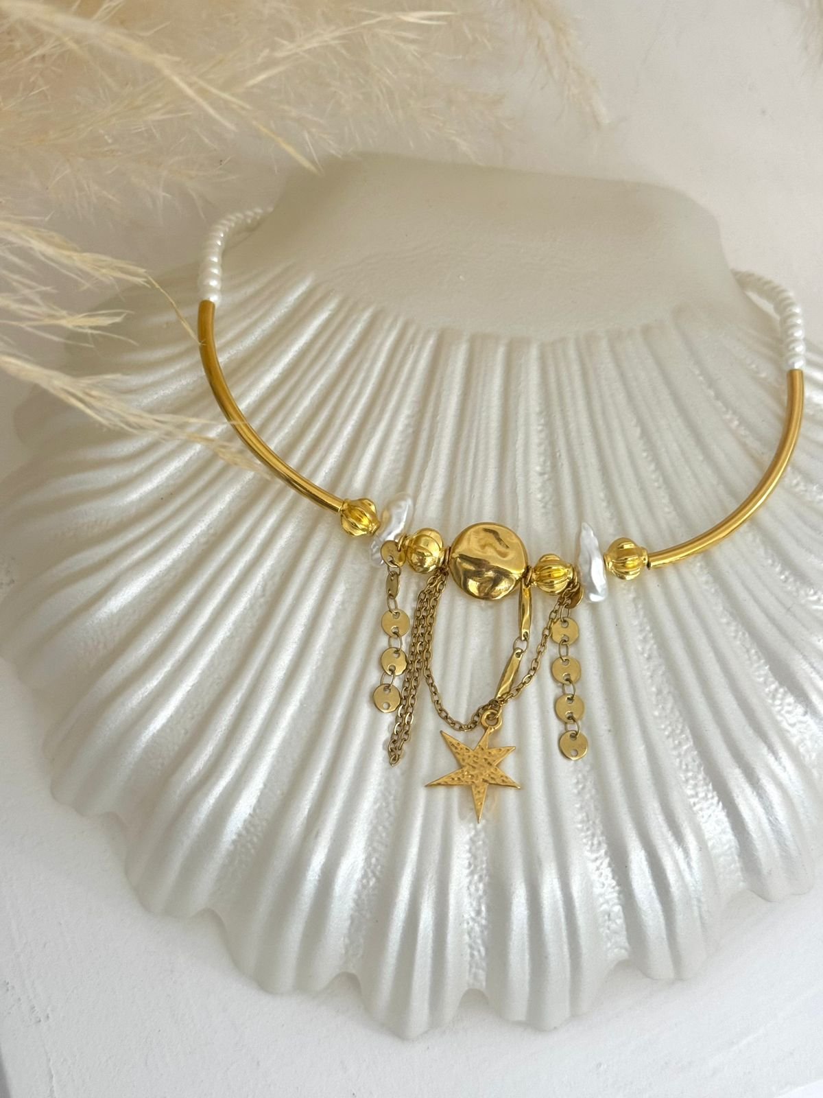 Κολιέ τσόκερ με πέρλες και ορειχαλκινα επιχρυσωμενα 24k στοιχεία.