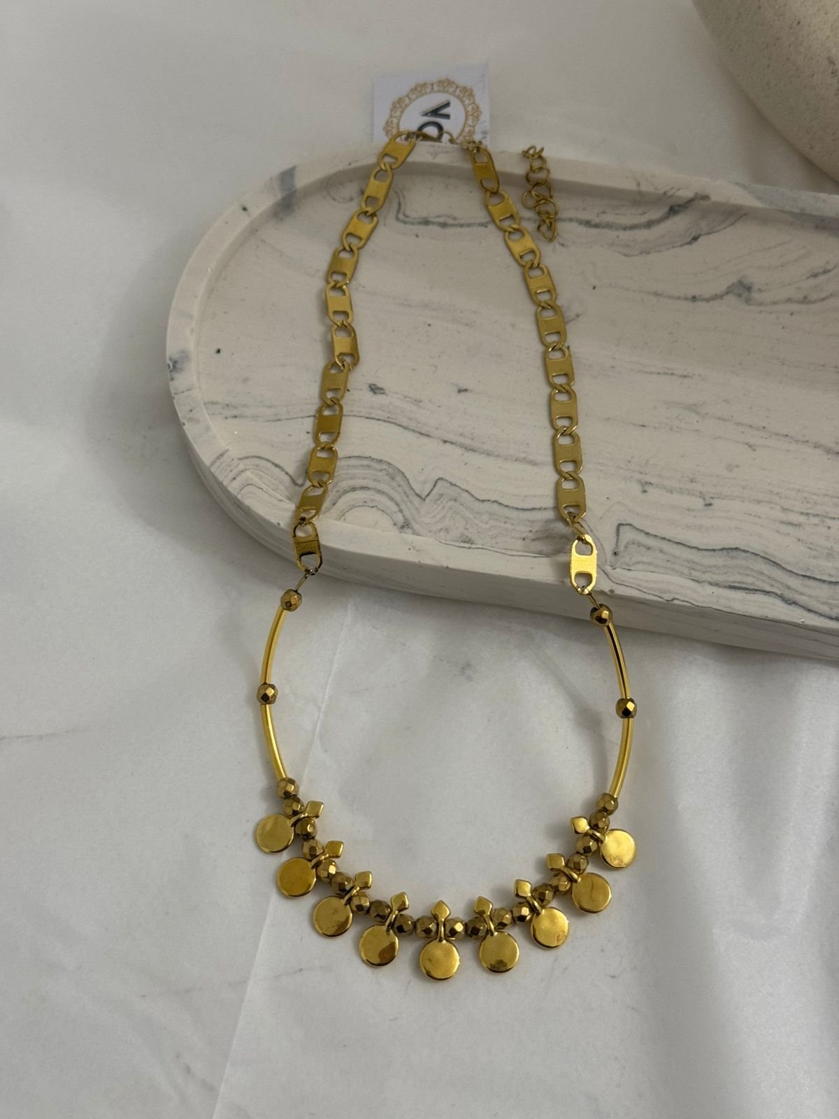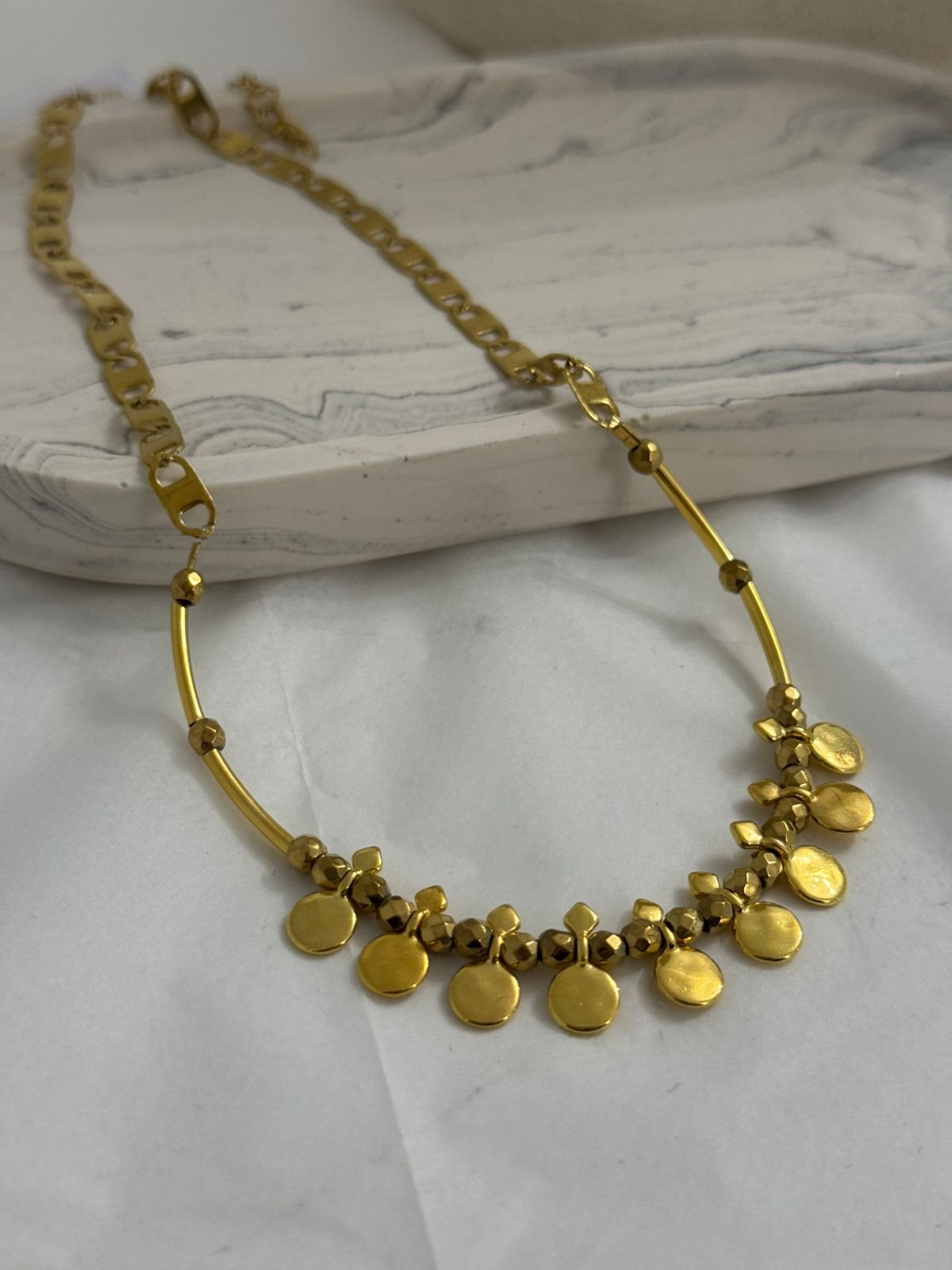 Ατσάλινη αλυσίδα με ορείχαλκινα επιχρυσωμενα 24k στοιχεία και αιματίτη.