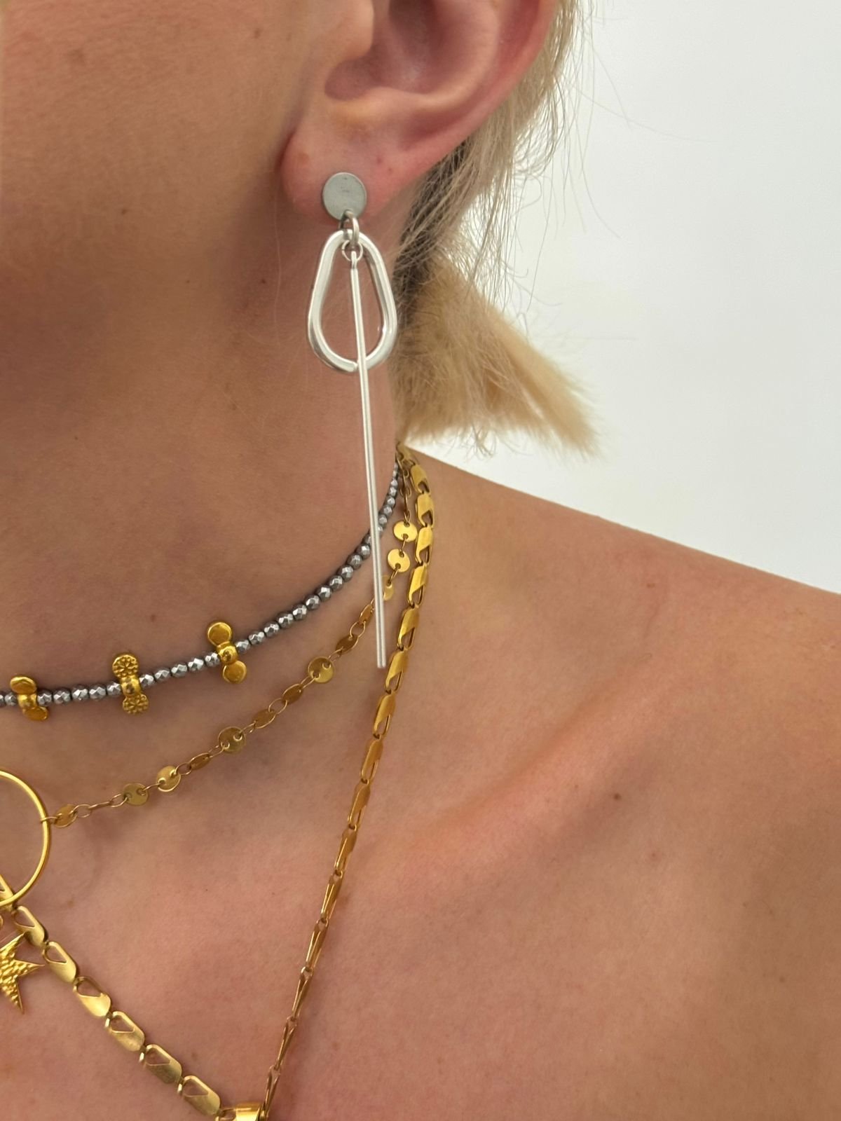Σκουλαρίκια με ατσάλινο καρφάκι και ορειχαλκινα επαργυρωμένα 925 στοιχεία.