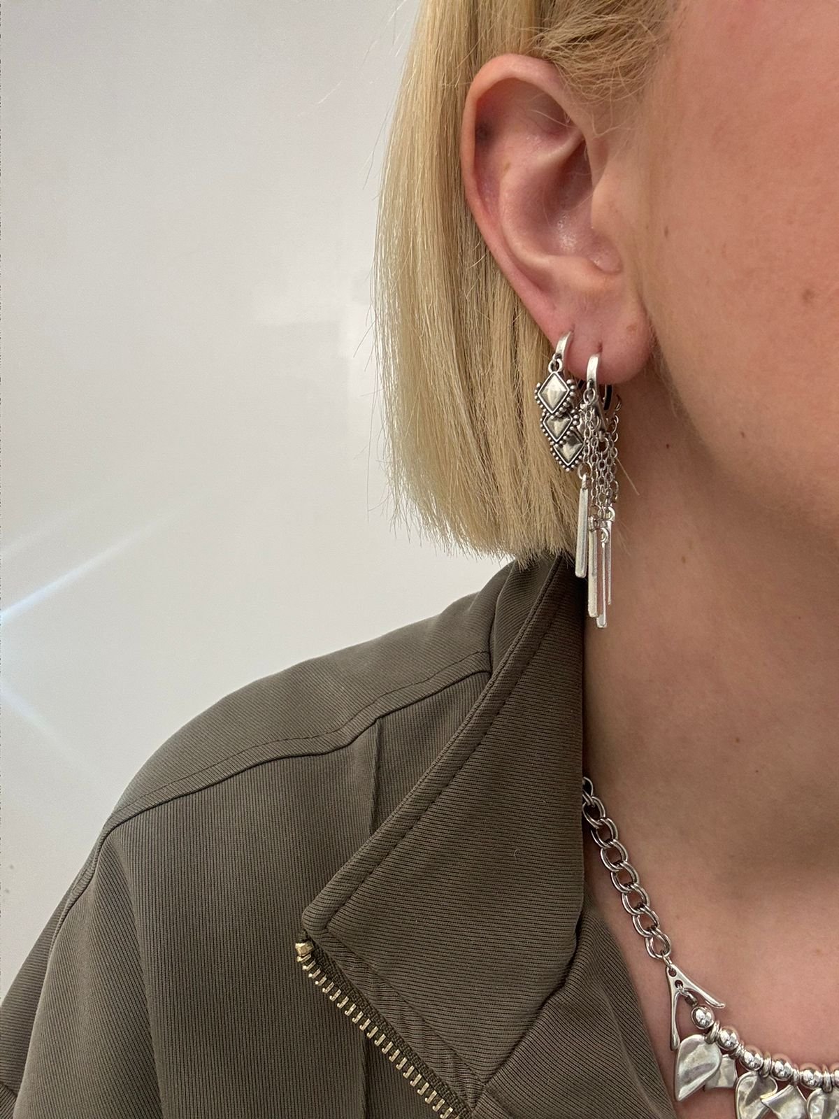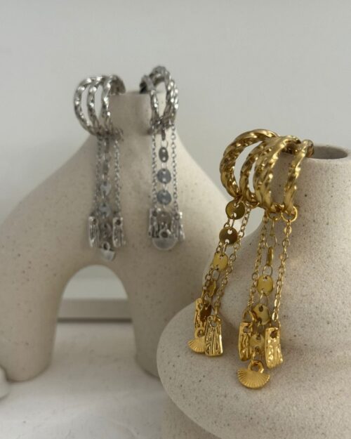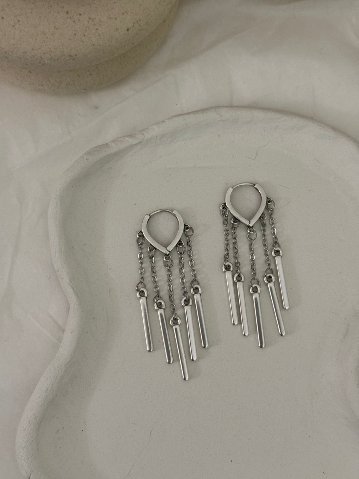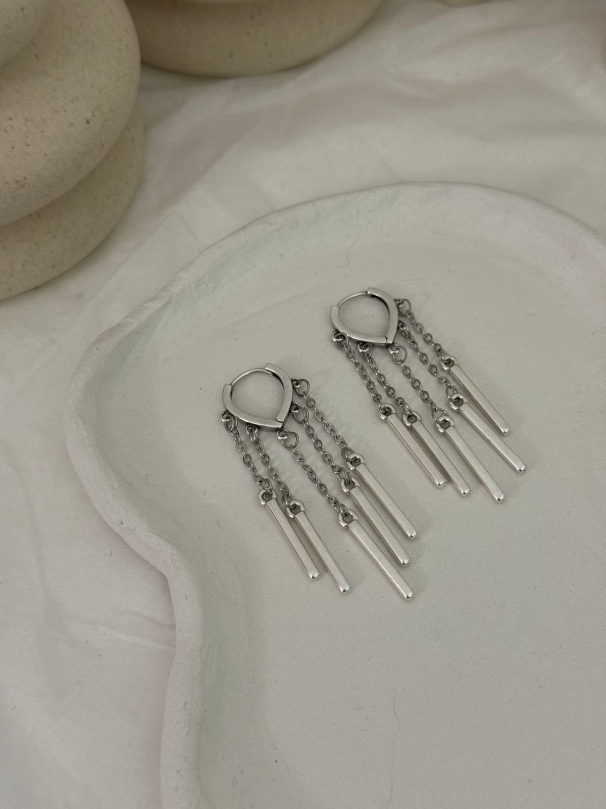 Ορειχαλκινα επαργυρωμένα σκουλαρίκια με ατσάλινες αλυσίδες.