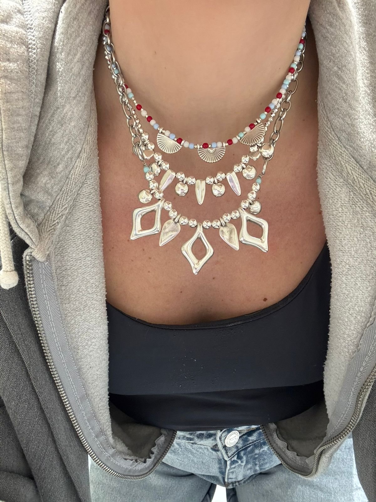 Ατσάλινη αλυσίδα με ατσάλινες χάντρες και ορειχαλκινα επαργυρωμένα στοιχεία.