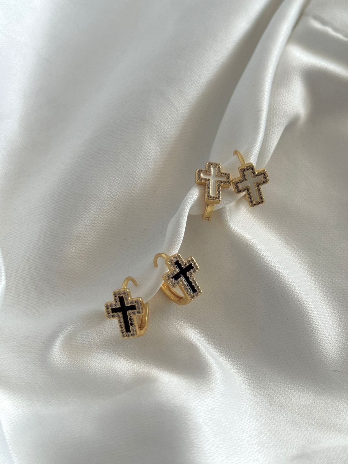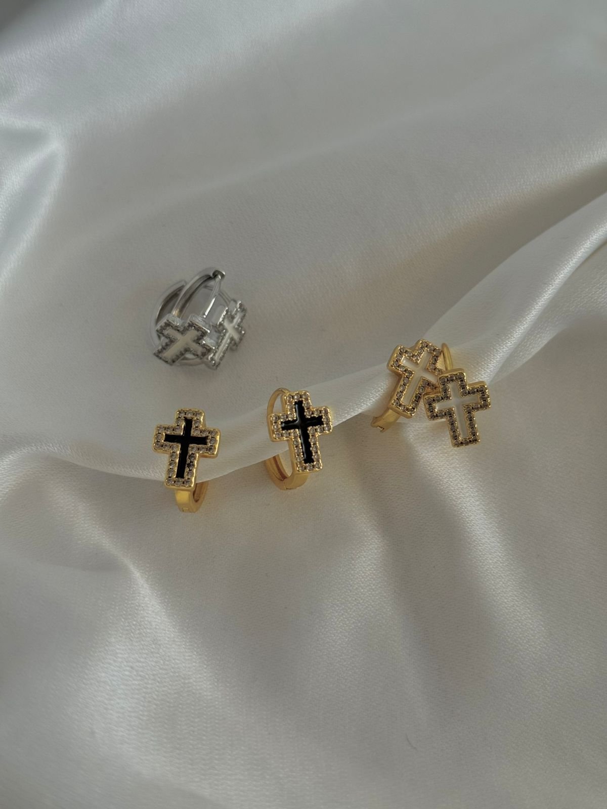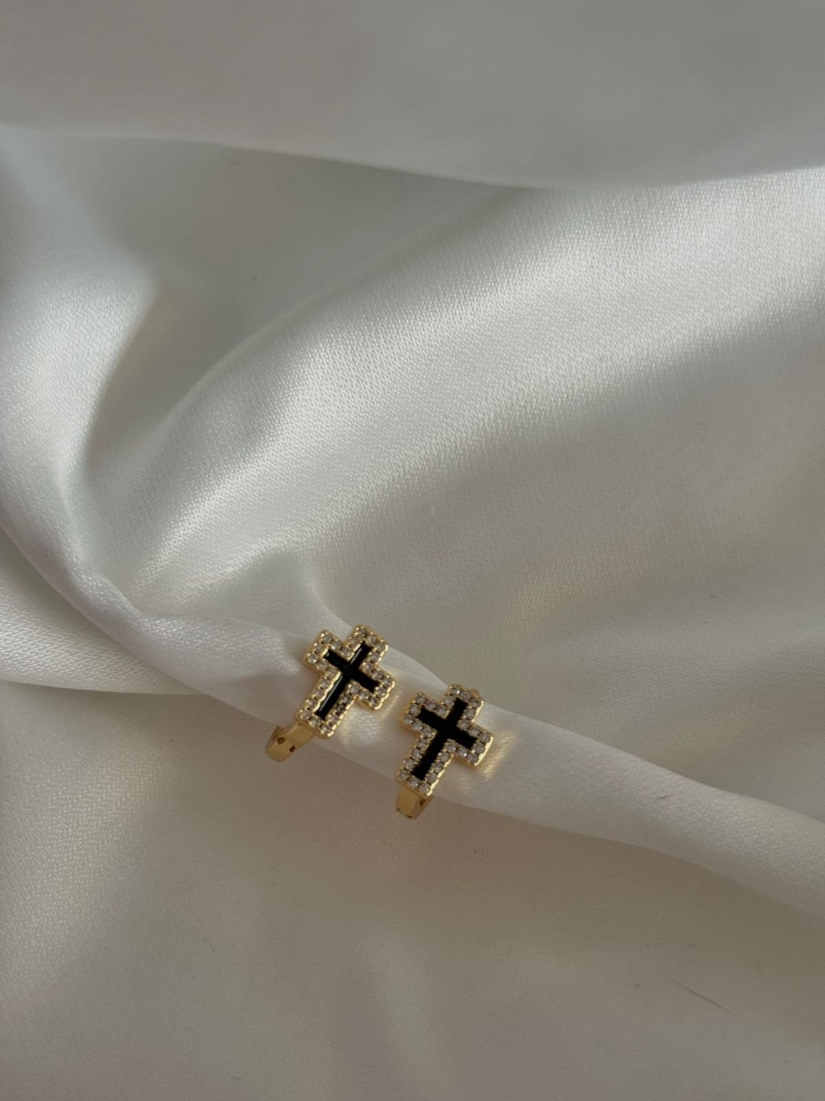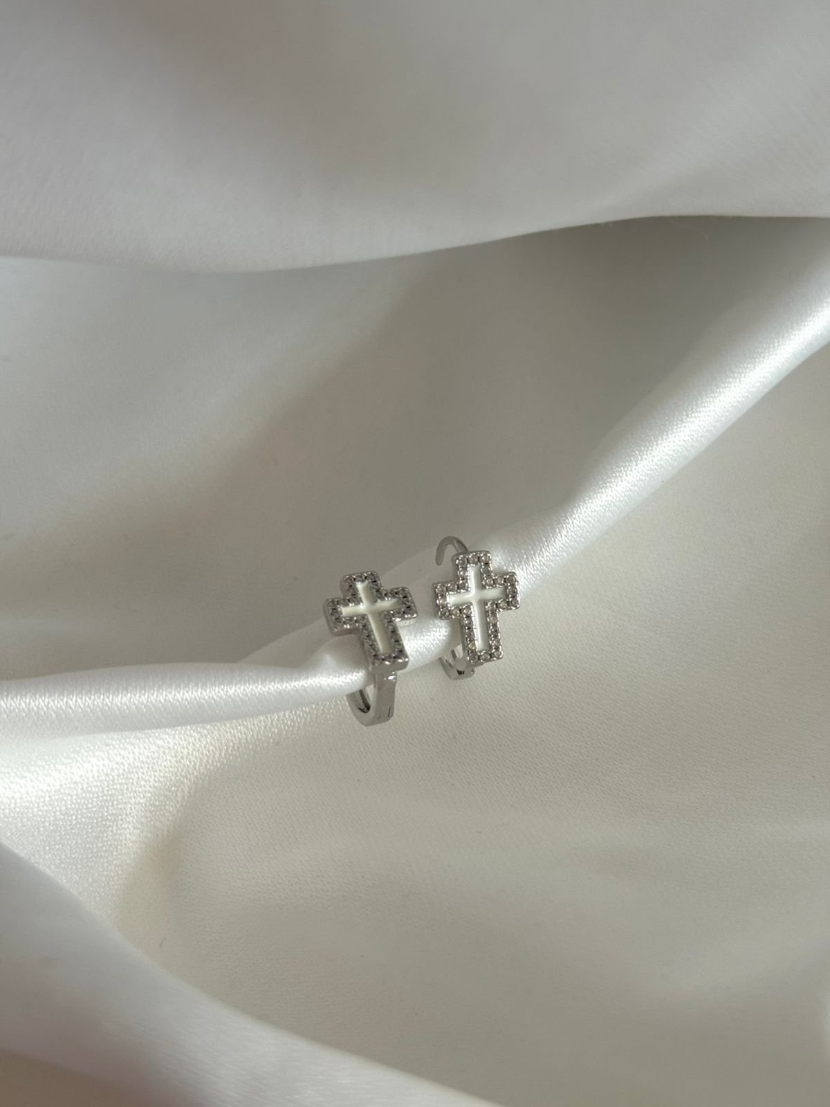 Κομψά σκουλαρίκια κρικάκια με ενσωματωμένο σταυρό, διακοσμημένο με σμάλτο στο εσωτερικό του και διακριτικά στρας που αγκαλιάζουν το περίγραμμά του. Ένα φίνο κόσμημα που ισορροπεί ανάμεσα στη διαχρονική κομψότητα και τη σύγχρονη λάμψη, ιδανικό για καθημερινές αλλά και πιο ιδιαίτερες εμφανίσεις. ✨
