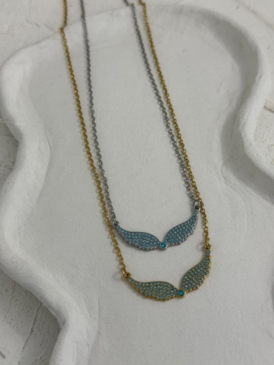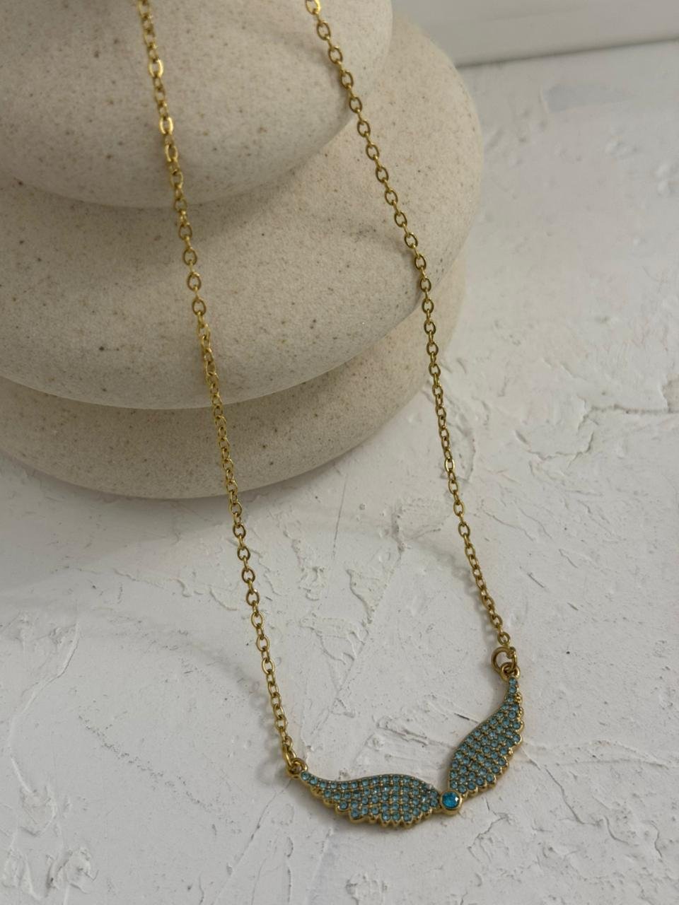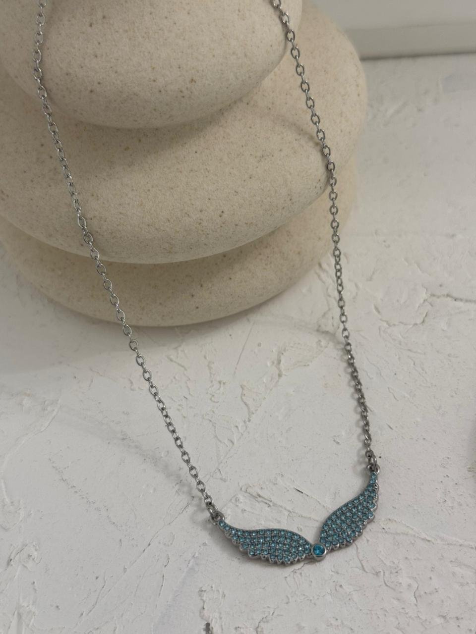 Ατσάλινο κολιέ με στρας στο κέντρο.