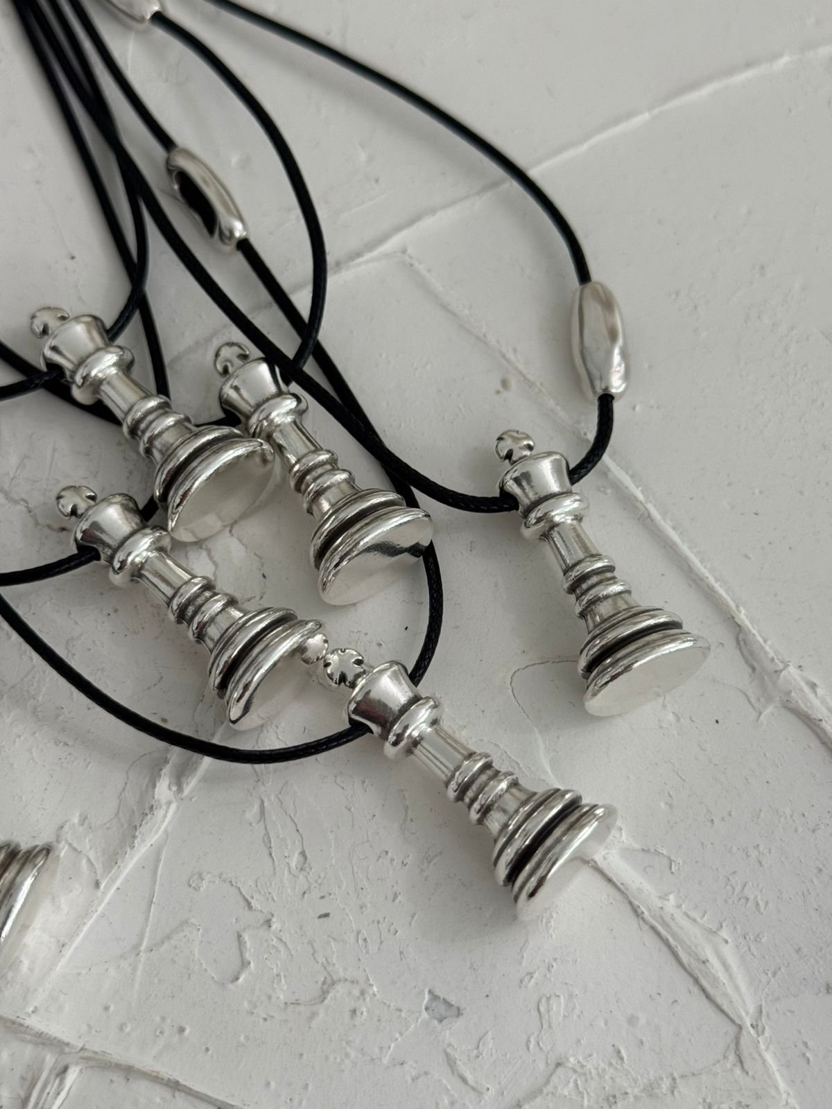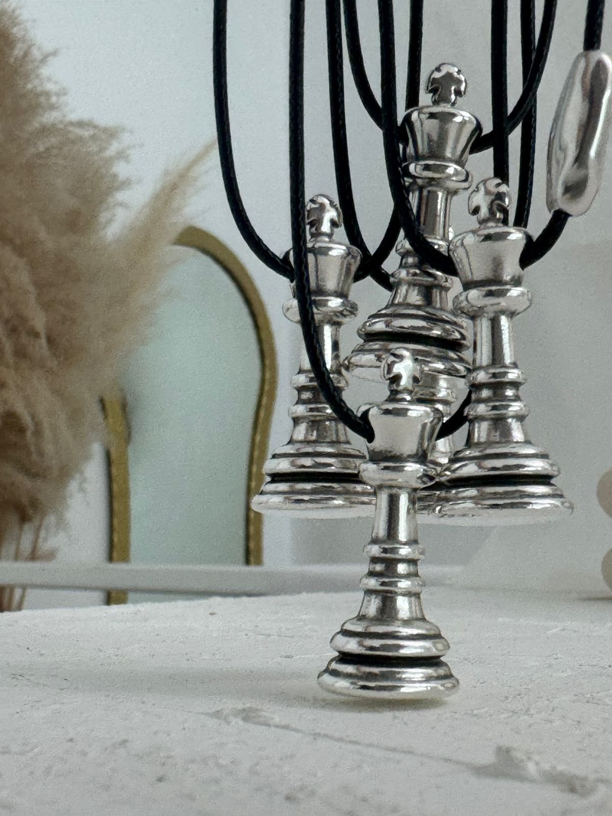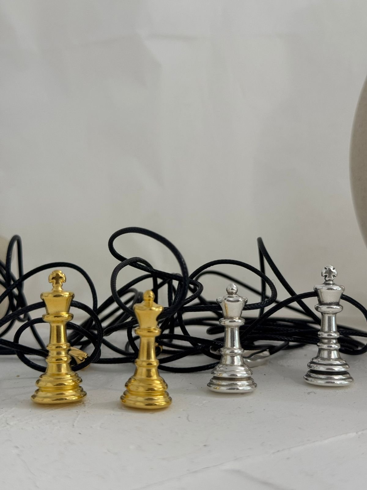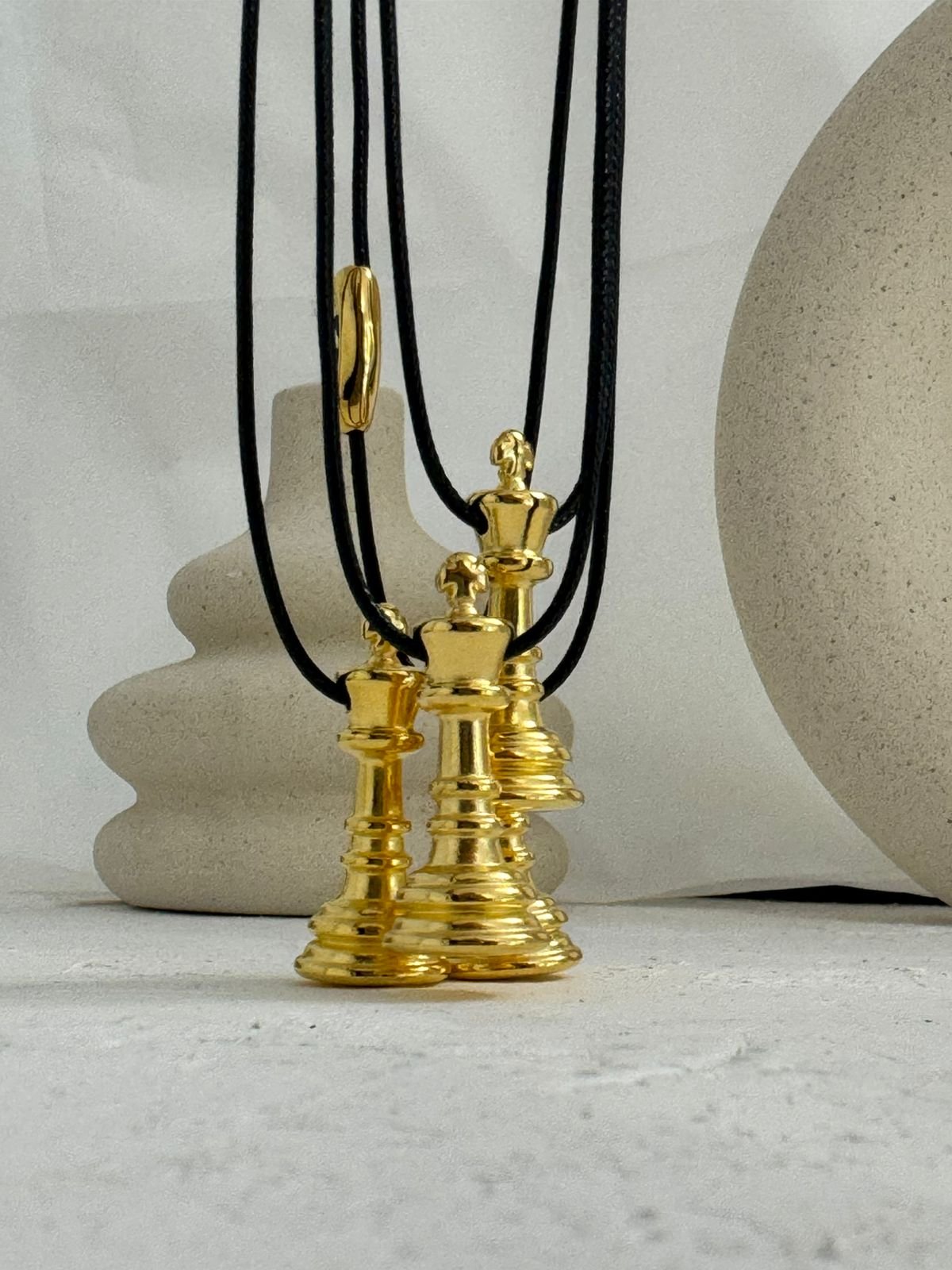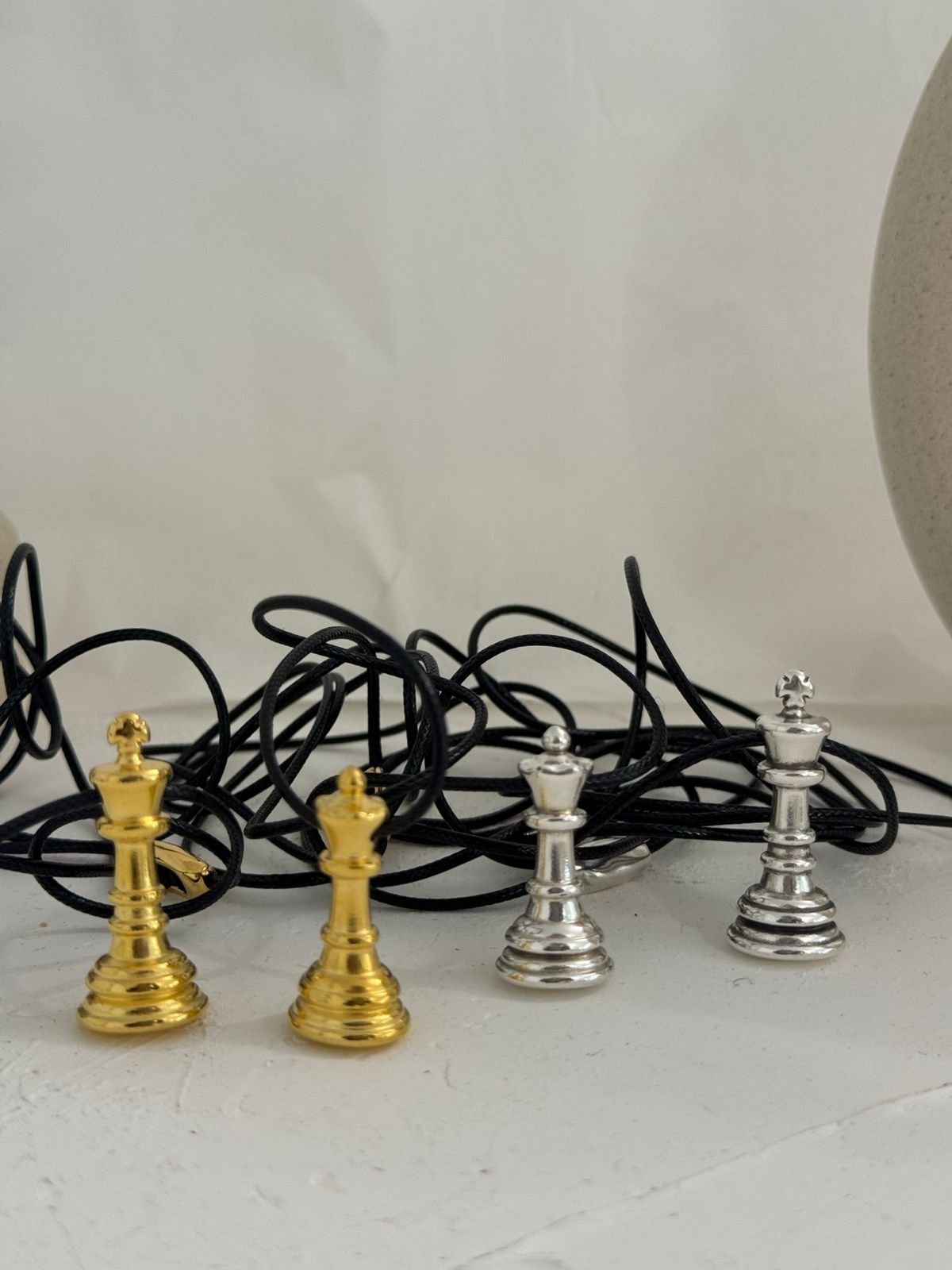 Ένα κολιέ εμπνευσμένο από το πιο διαχρονικό παιχνίδι στρατηγικής — εκεί όπου η δύναμη και η κομψότητα συνυπάρχουν. Ο βασιλιάς και η βασίλισσα του σκακιού γίνονται σύμβολα ισορροπίας: λογική και ένστικτο, δύναμη και χάρη, δύο ενέργειες που συμπληρώνουν η μία την άλλη.