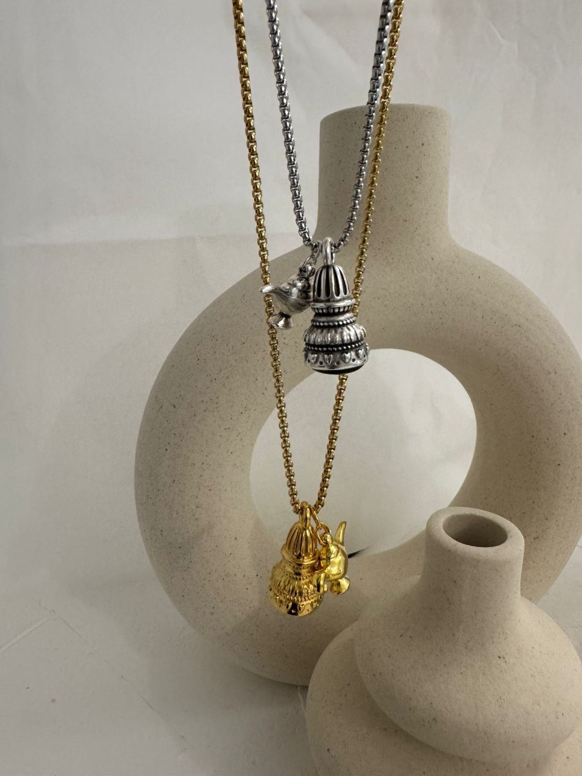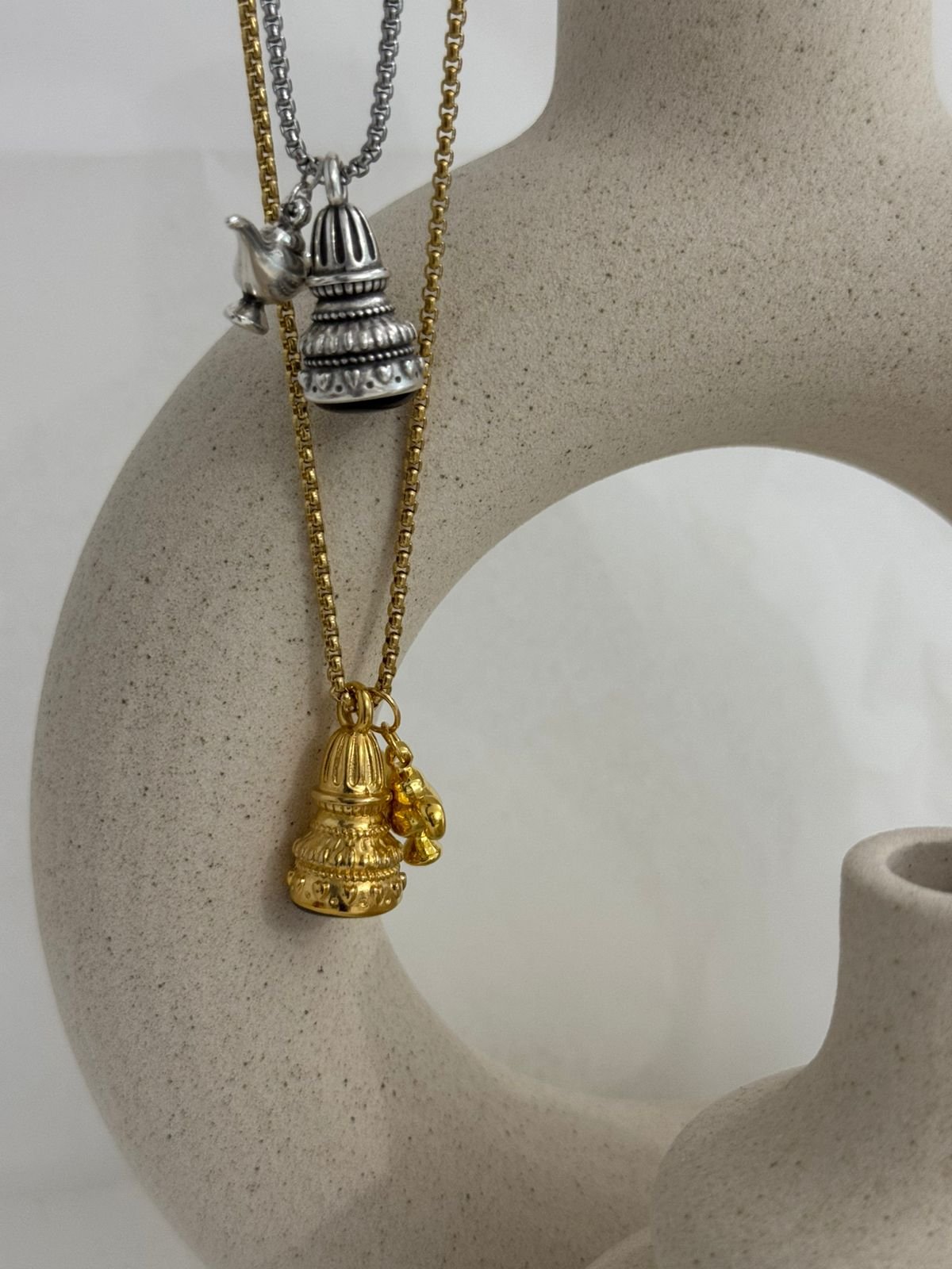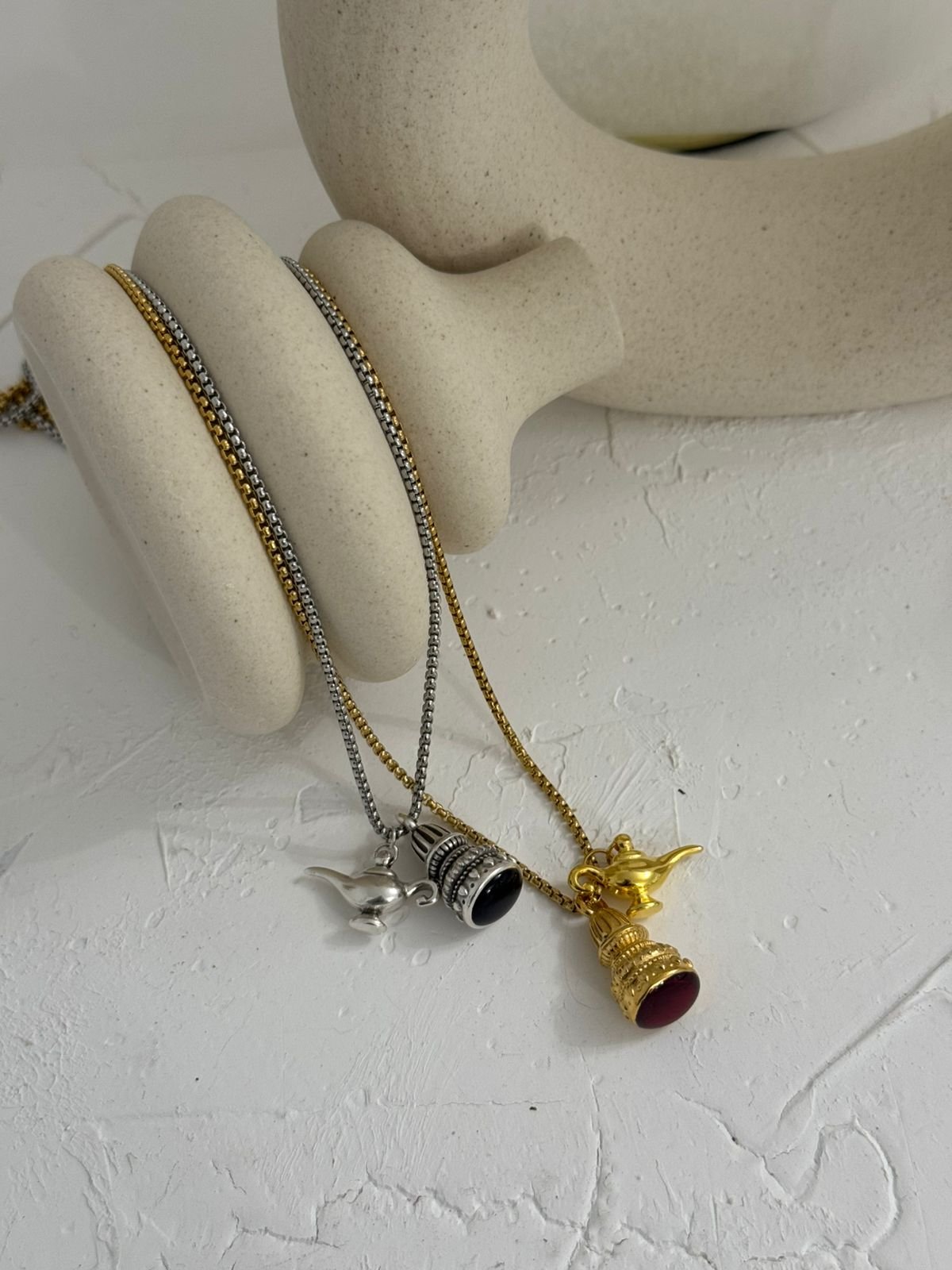 Ένα μοναδικό κολιέ που συνδυάζει την κομψότητα του vintage με την απλότητα της αλυσίδας αγκαλιάζει το λυχνάρι, δημιουργώντας μια διακριτική, αλλά μαγευτική λεπτομέρεια που τραβάει το βλέμμα. Ιδανικό για να δώσει έναν ρομαντικό και ταυτόχρονα μοντέρνο τόνο σε κάθε σας εμφάνιση.”