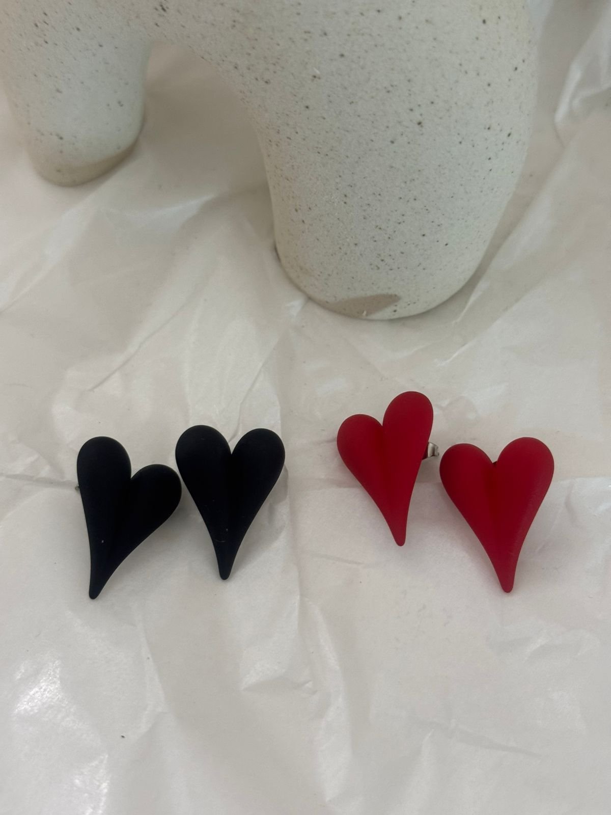 Σκουλαρίκια με ακρυλική καρδιά σε κόκκινο και μαύρο — ο τέλειος συνδυασμός πάθους και μυστηρίου.