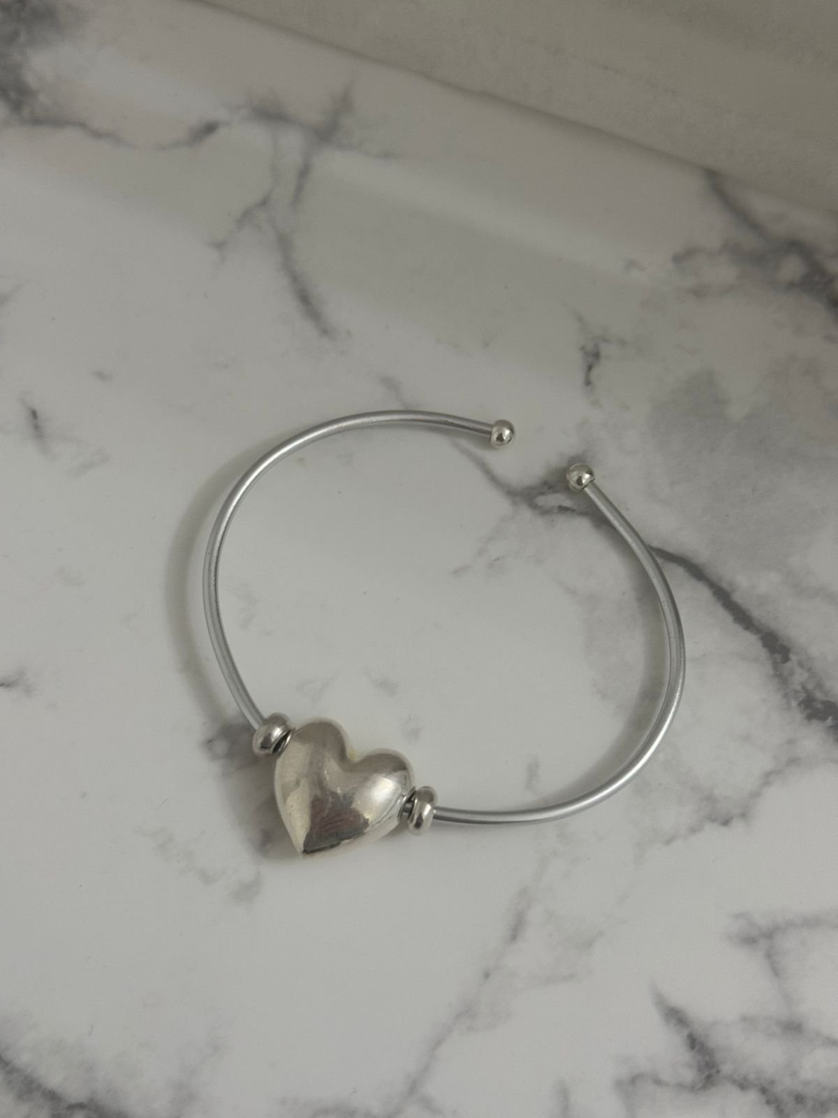 Χειροποίητη βέργα από αλουμίνιο με μεταλλική καρδιά — ένα κόσμημα λιτό αλλά με έντονη προσωπικότητα.