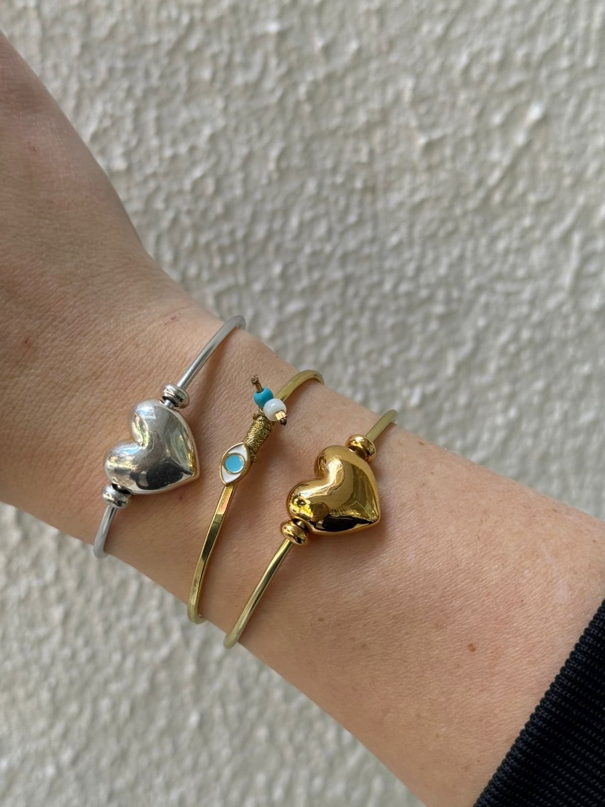Ελαφριά, μοντέρνα και ιδιαίτερη, αγκαλιάζει τον καρπό και δίνει μια minimal πινελιά που ξεχωρίζει. Η μεταλλική καρδιά στο κέντρο θυμίζει ότι το στυλ μπορεί να είναι δυναμικό, χωρίς να χάνει τη ζεστασιά του.