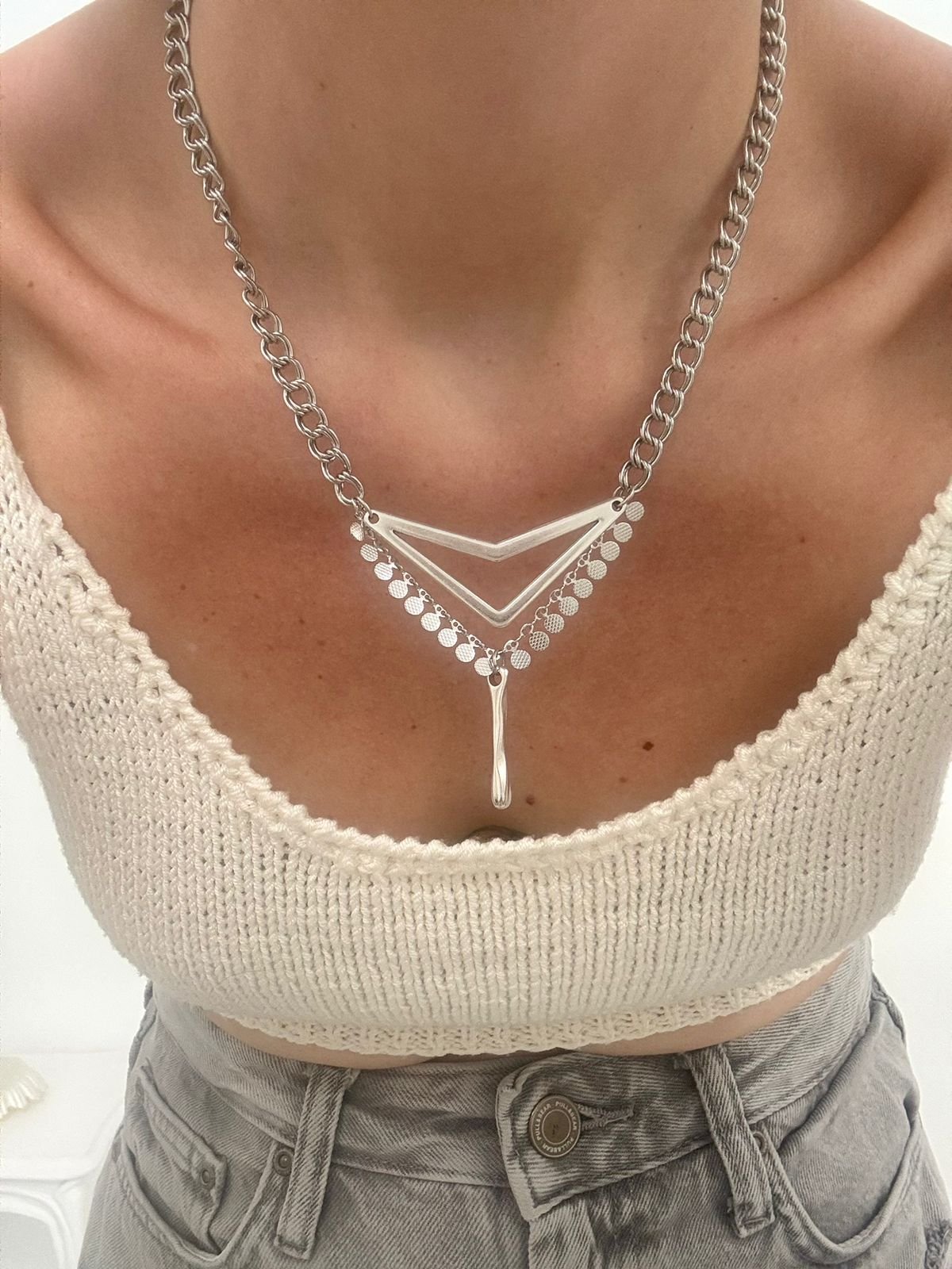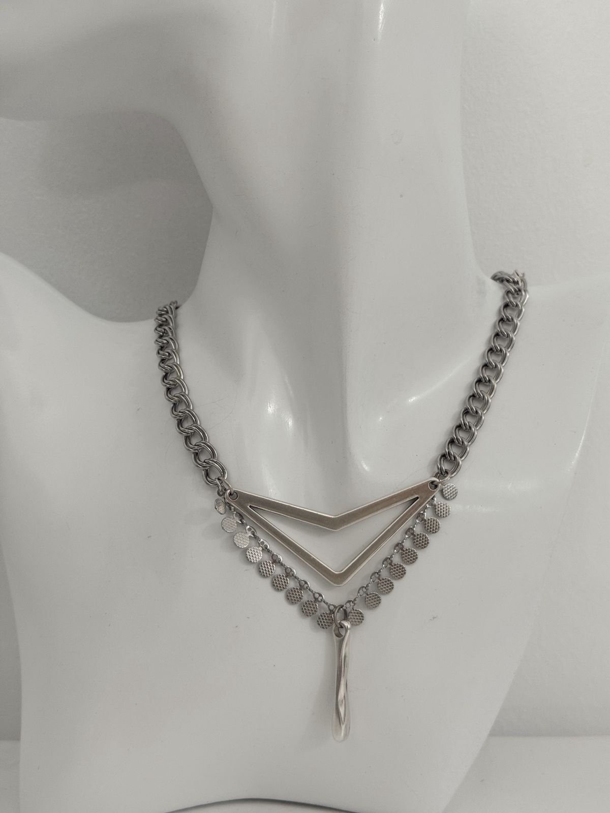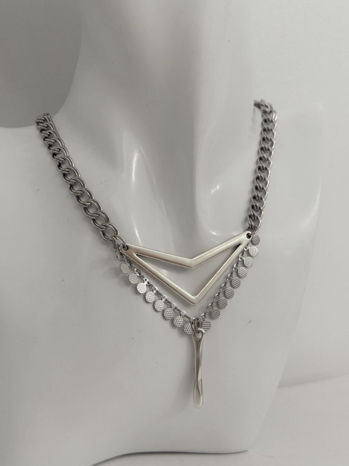 Κολιέ με ατσάλινη αλυσίδα και ορειχάλκινο επαργυρωμένο 925 στοιχείο.
