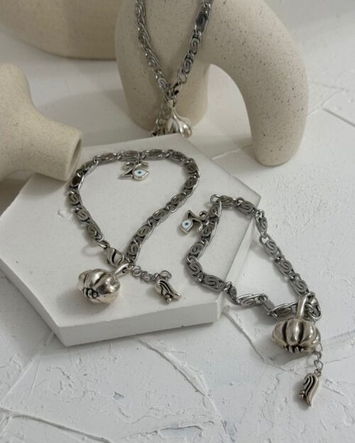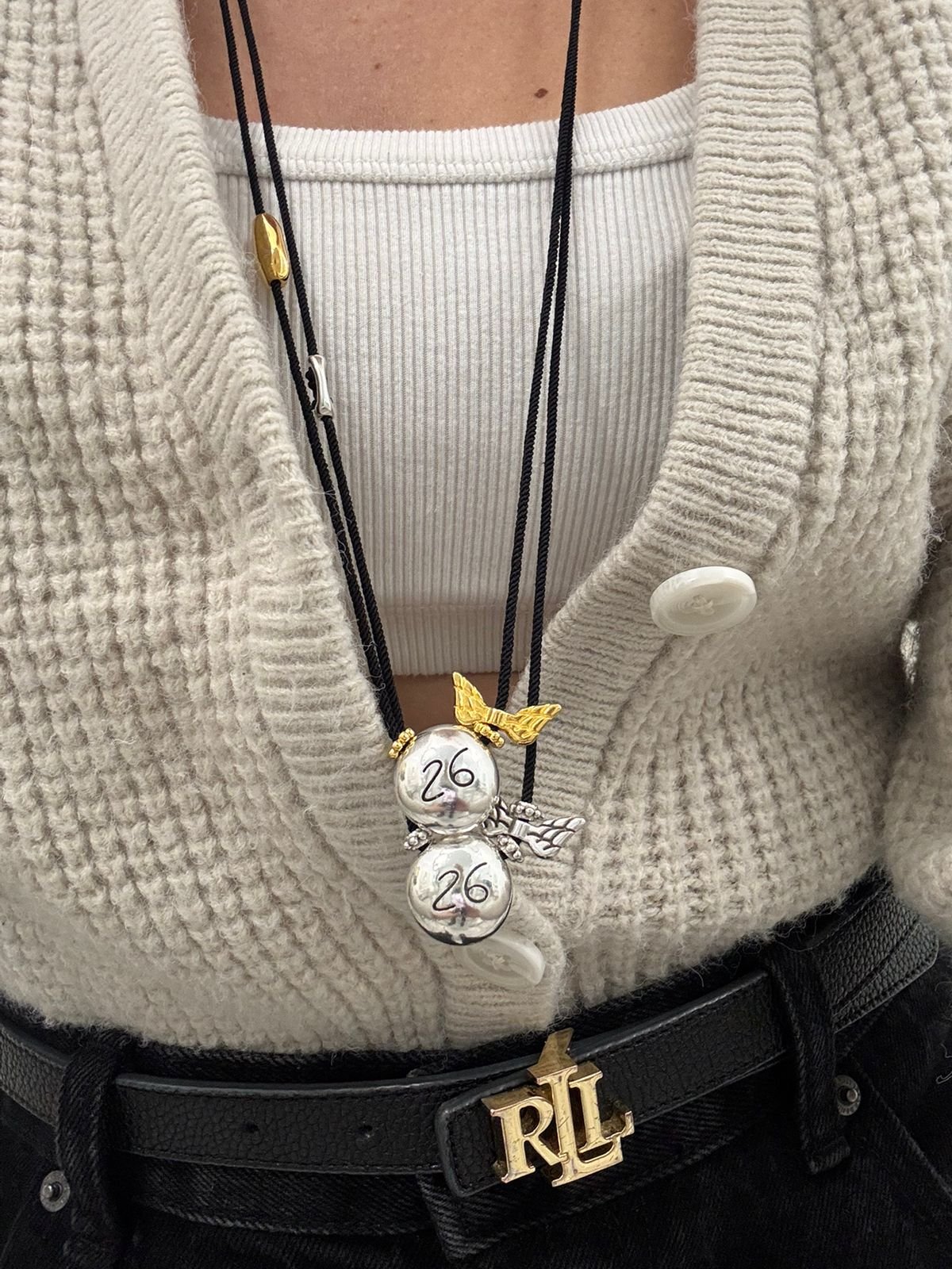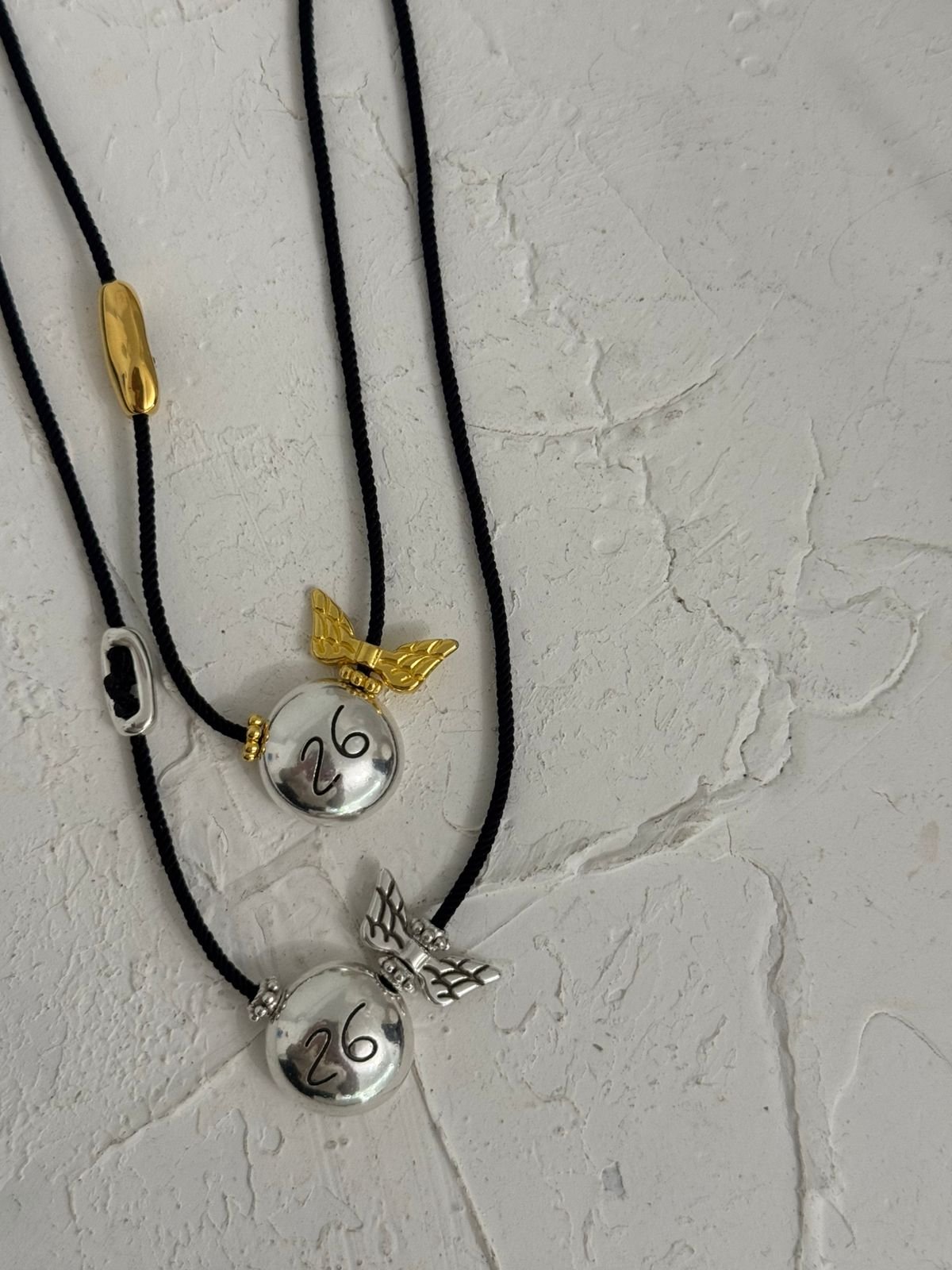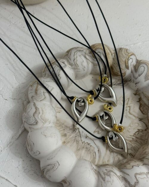Κολιέ γούρι κορδόνι με ορειχαλκινα επιχρυσωμενα 24k/ επαργυρωμένα στοιχεία.