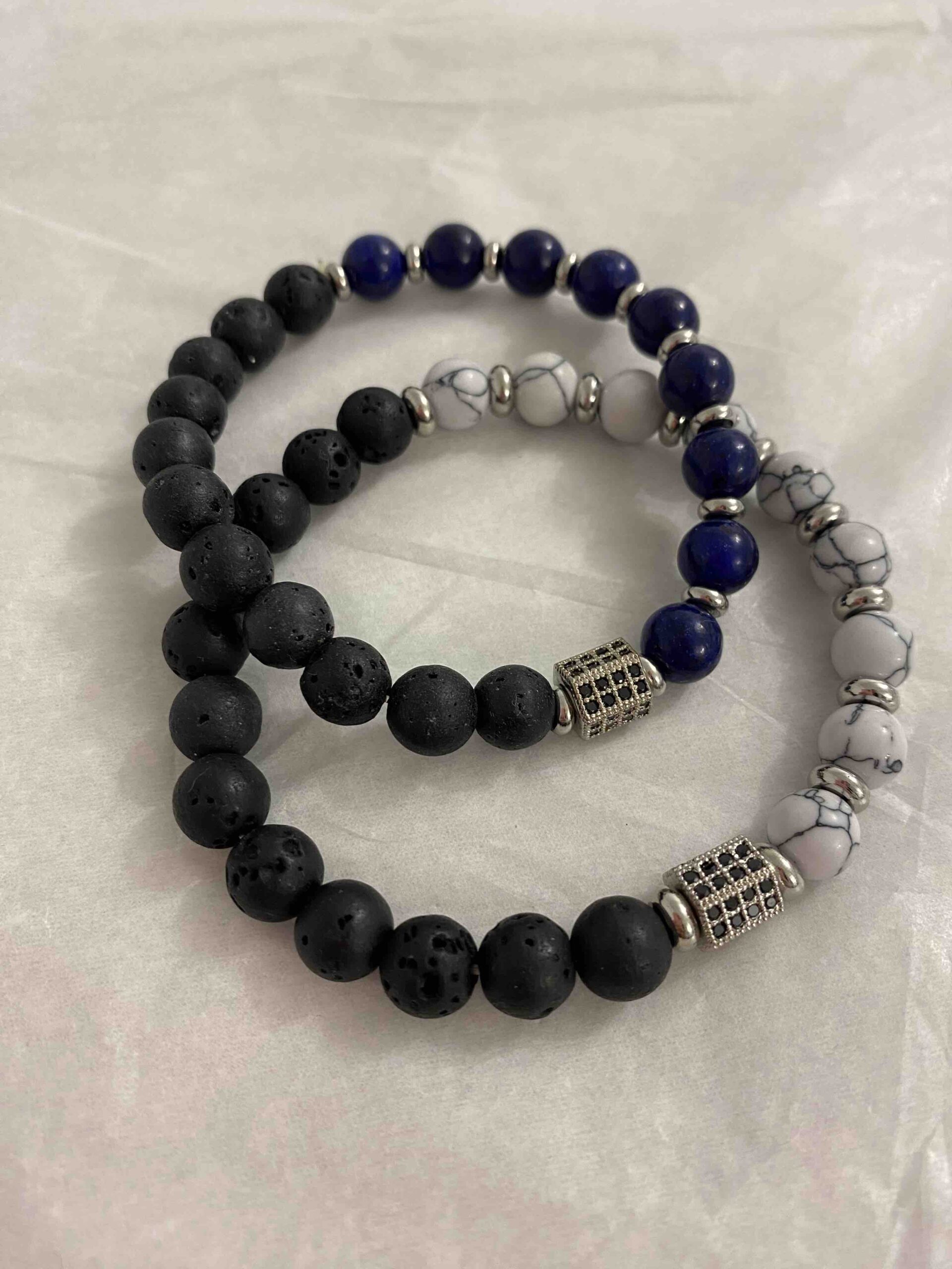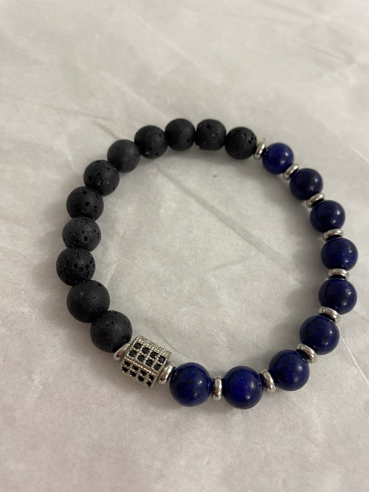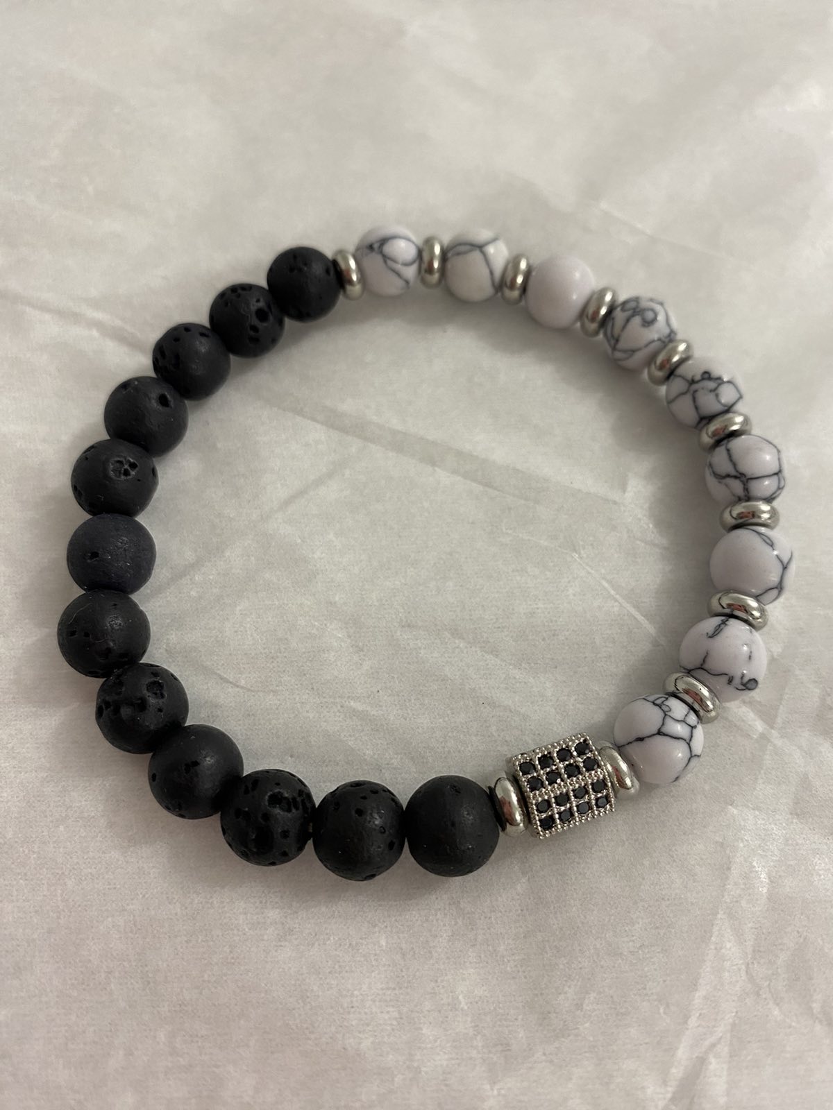 Βραχιόλι ελαστικό με ημιπολύτιμες χάντρες και ατσάλινο στοιχείο.