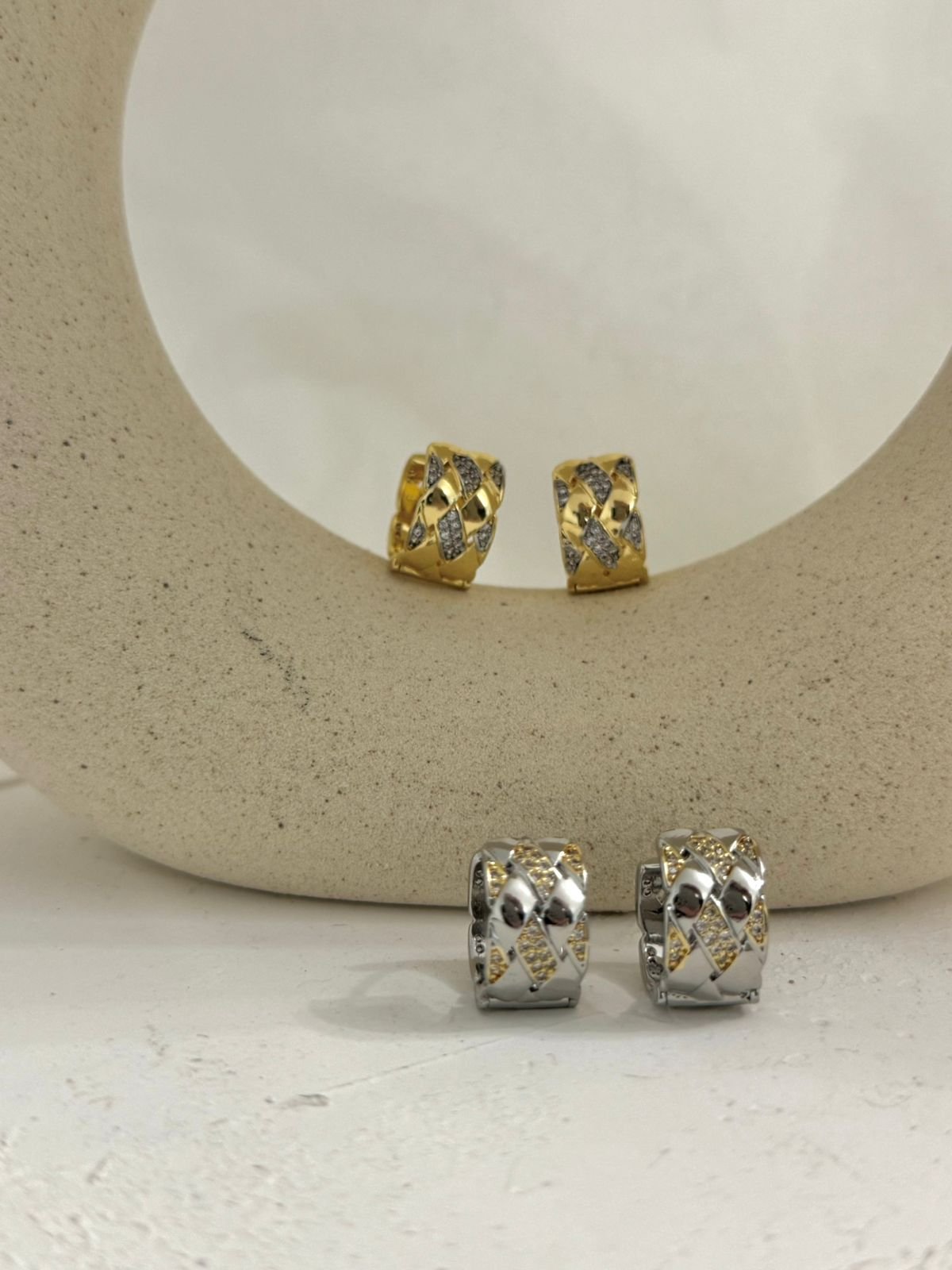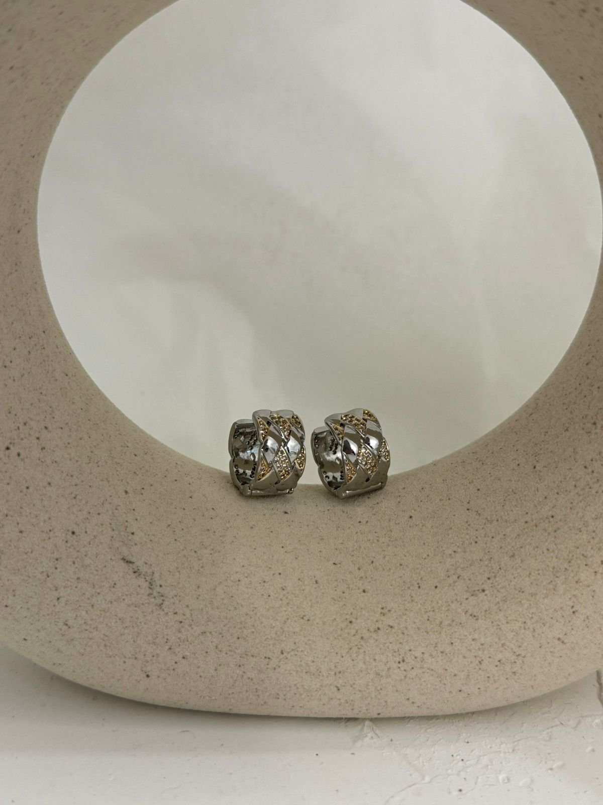 Ασημοχρύσοι κρίκοι με καπιτονέ υφή: ένα παιχνίδι υλικών και φωτός που τραβάει το βλέμμα. Ισχυροί αλλά εκλεπτυσμένοι, είναι το τέλειο statement για γυναίκες που ξέρουν να ξεχωρίζουν χωρίς να προσπαθούν.
