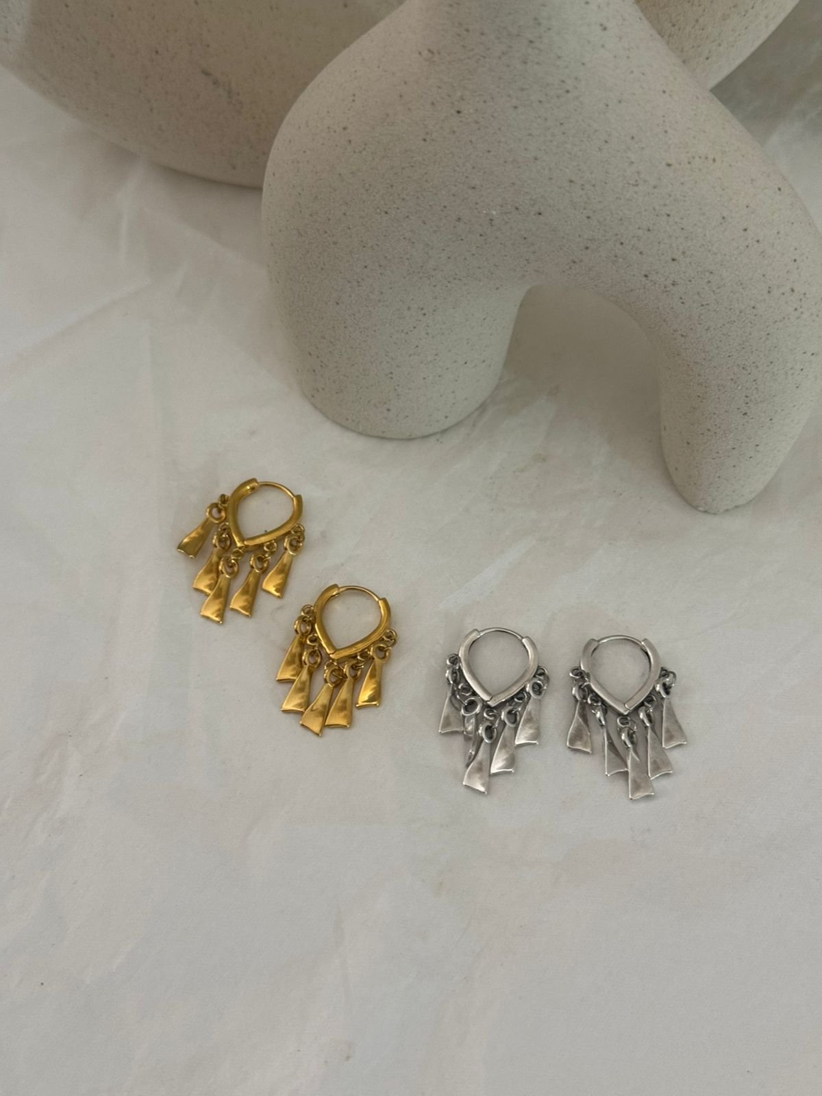 Λεπτά κρικάκια με κυματιστό charm που δίνει κίνηση και μοναδικότητα. Ένα minimal κόσμημα με καλλιτεχνική αισθητική, ιδανικό για καθημερινή κομψότητα.