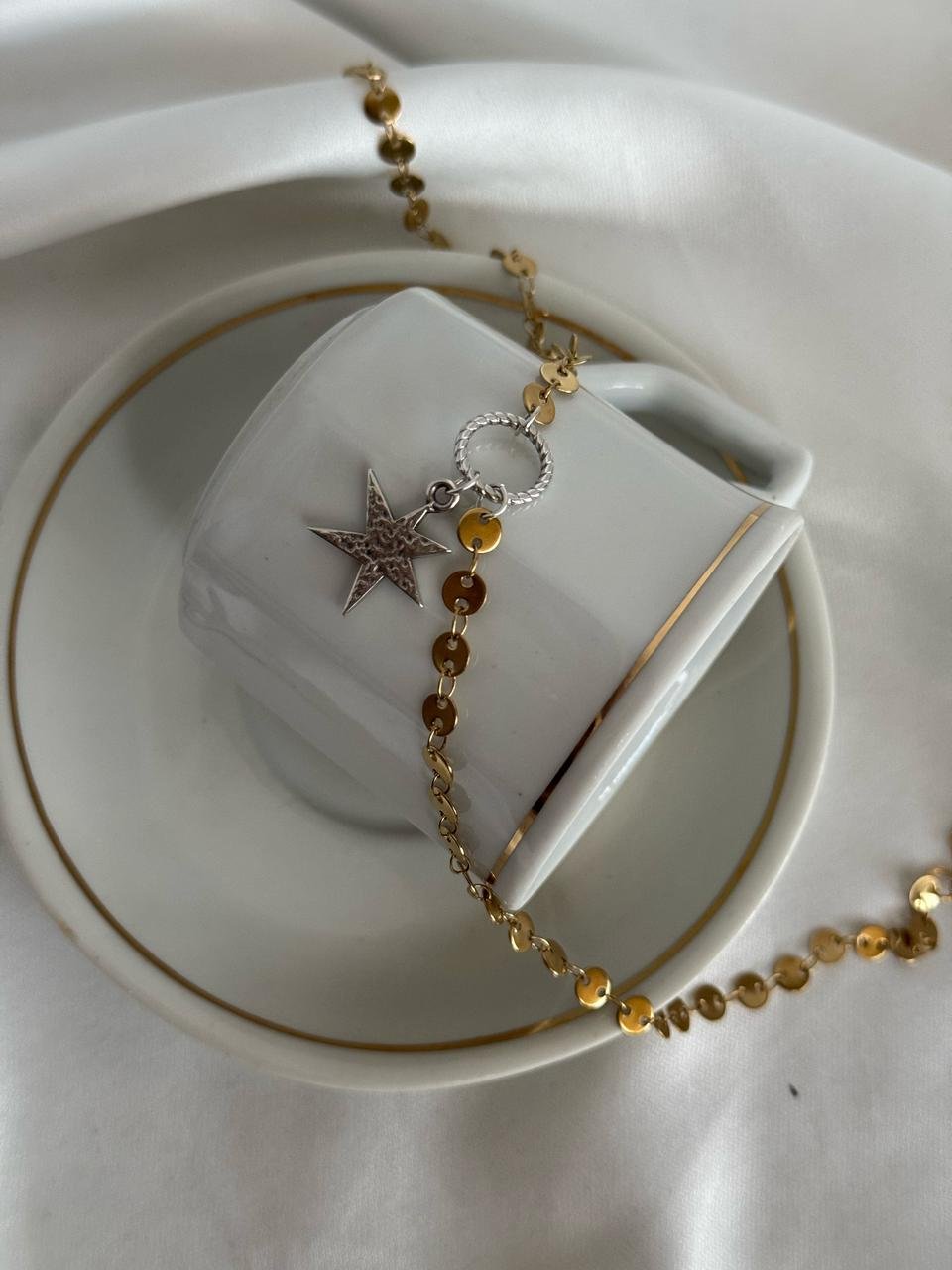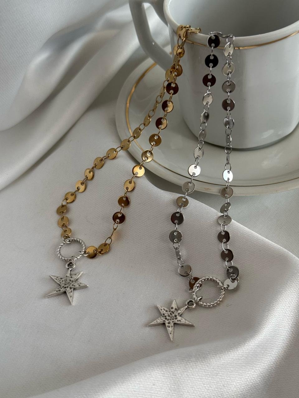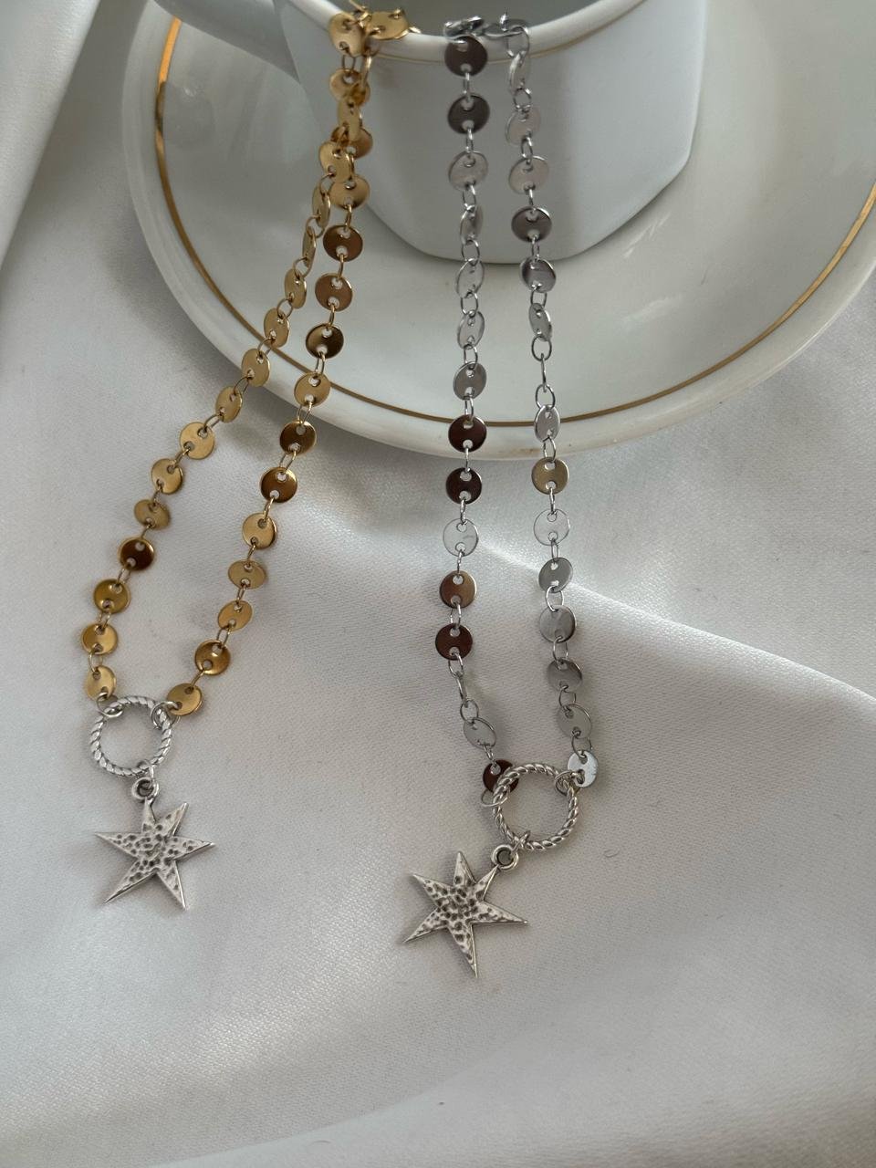 Κολιέ Τζόκερ με ατσάλινη αλυσίδα και ορειχάλκινα επαργυρωμένα στοιχεία.
