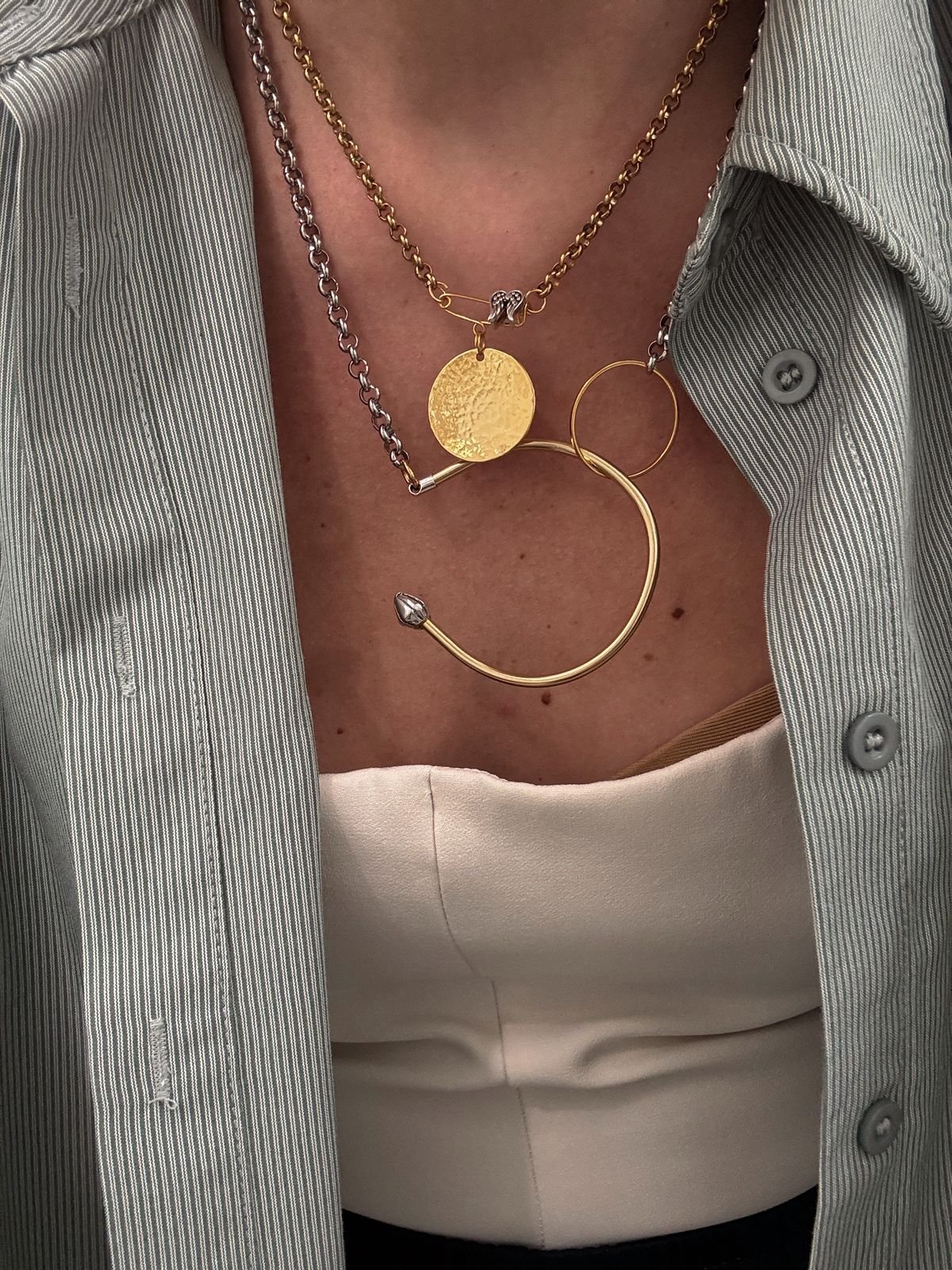 Το κολιέ αυτό δεν είναι απλώς αξεσουάρ· είναι ένας τρόπος να εκφράζεις τη μοναδικότητά σου. Φοριέται μόνο του ως statement ή συνδυάζεται για layered look, πάντα προσθέτοντας μια αίσθηση κομψότητας και προσωπικού στυλ.
