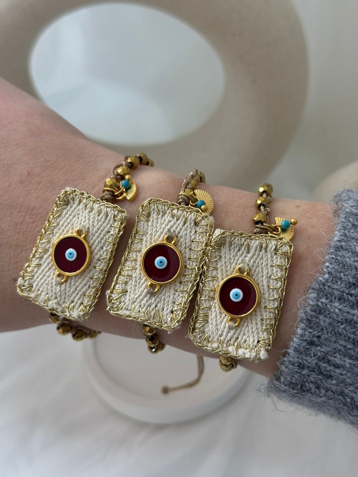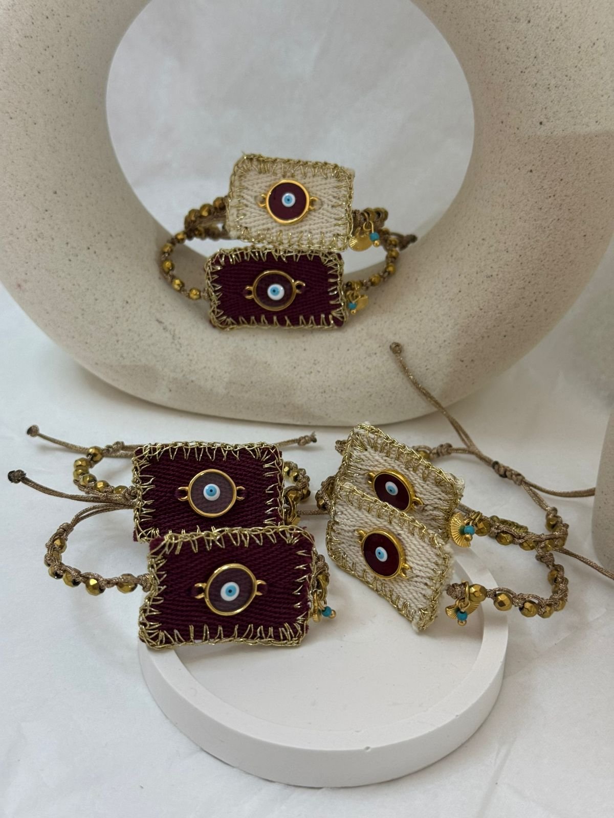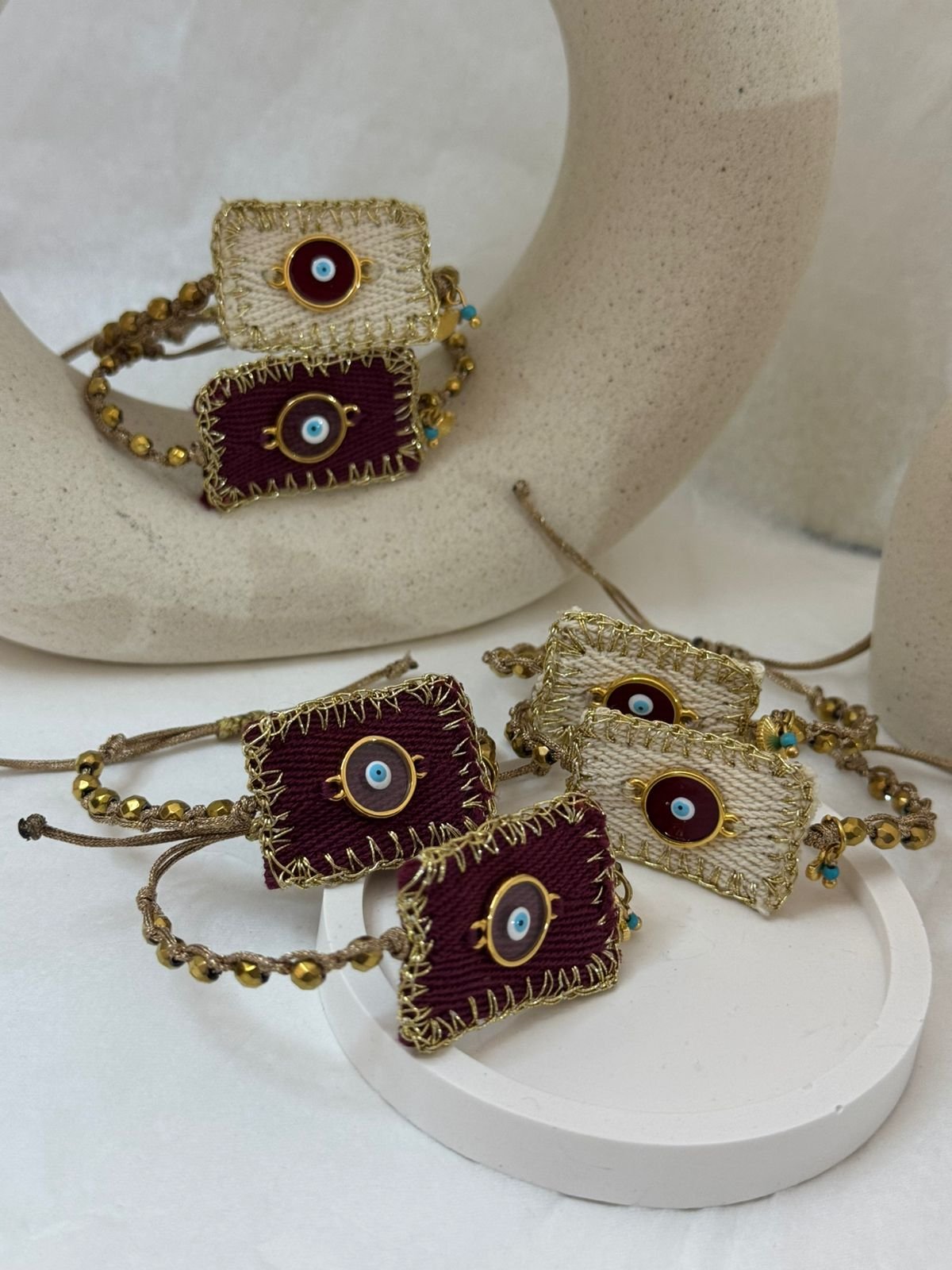 Χειροποίητο βραχιόλι φυλαχτό με μάτι στο κέντρο, σύμβολο προστασίας και θετικής ενέργειας. Σχεδιασμένο με αγάπη και προσοχή στη λεπτομέρεια, αγκαλιάζει τον καρπό διακριτικά, προσφέροντας στυλ αλλά και νόημα. Το μάτι στο κέντρο λειτουργεί ως φυλαχτό ενάντια στην αρνητική ενέργεια, καθιστώντας το ιδανικό για καθημερινή χρήση ή ως ένα ξεχωριστό δώρο με συμβολισμό.