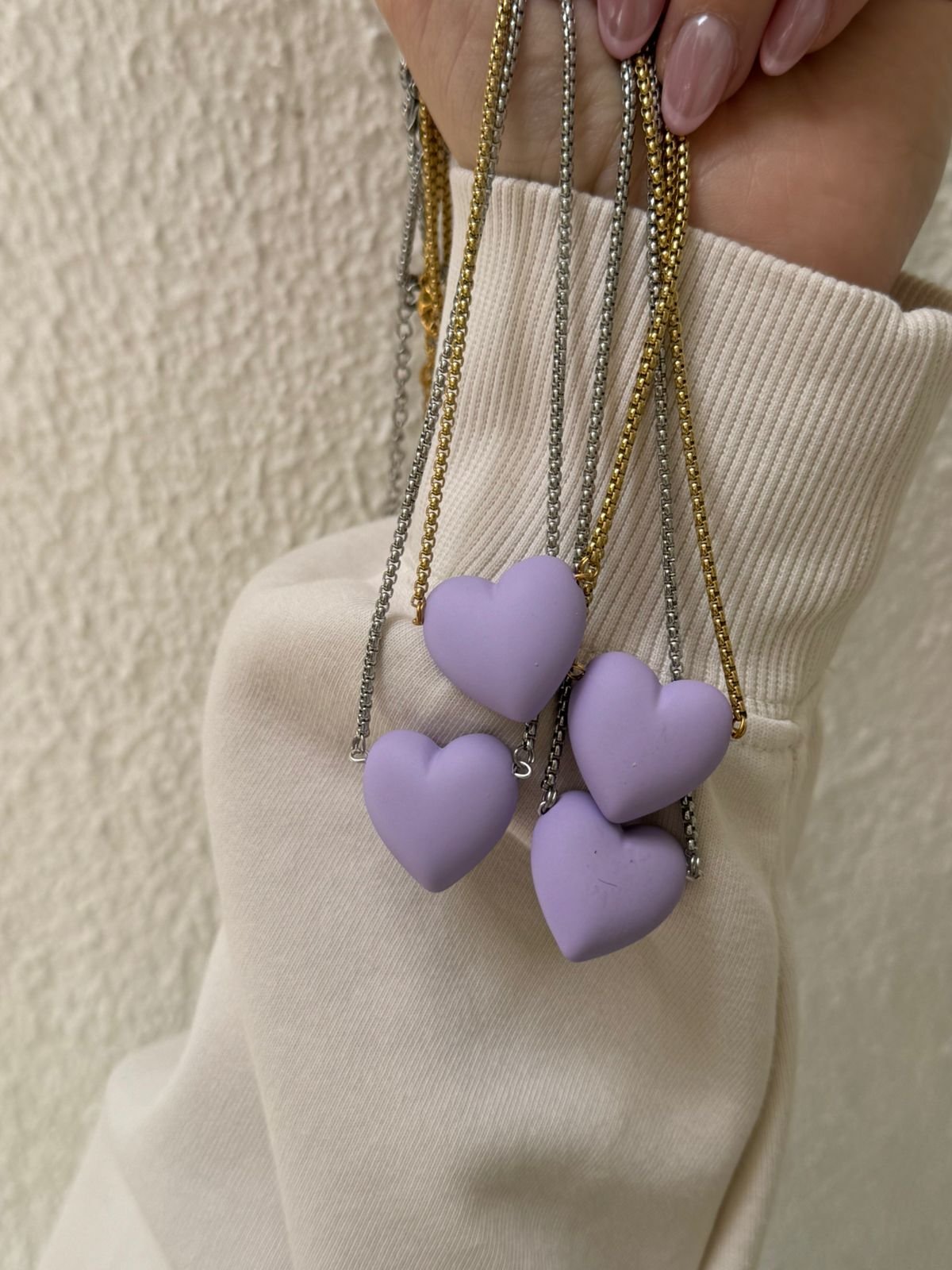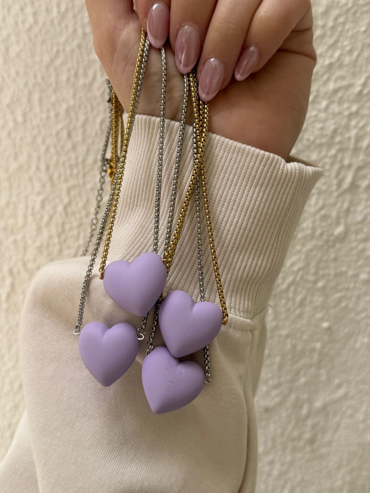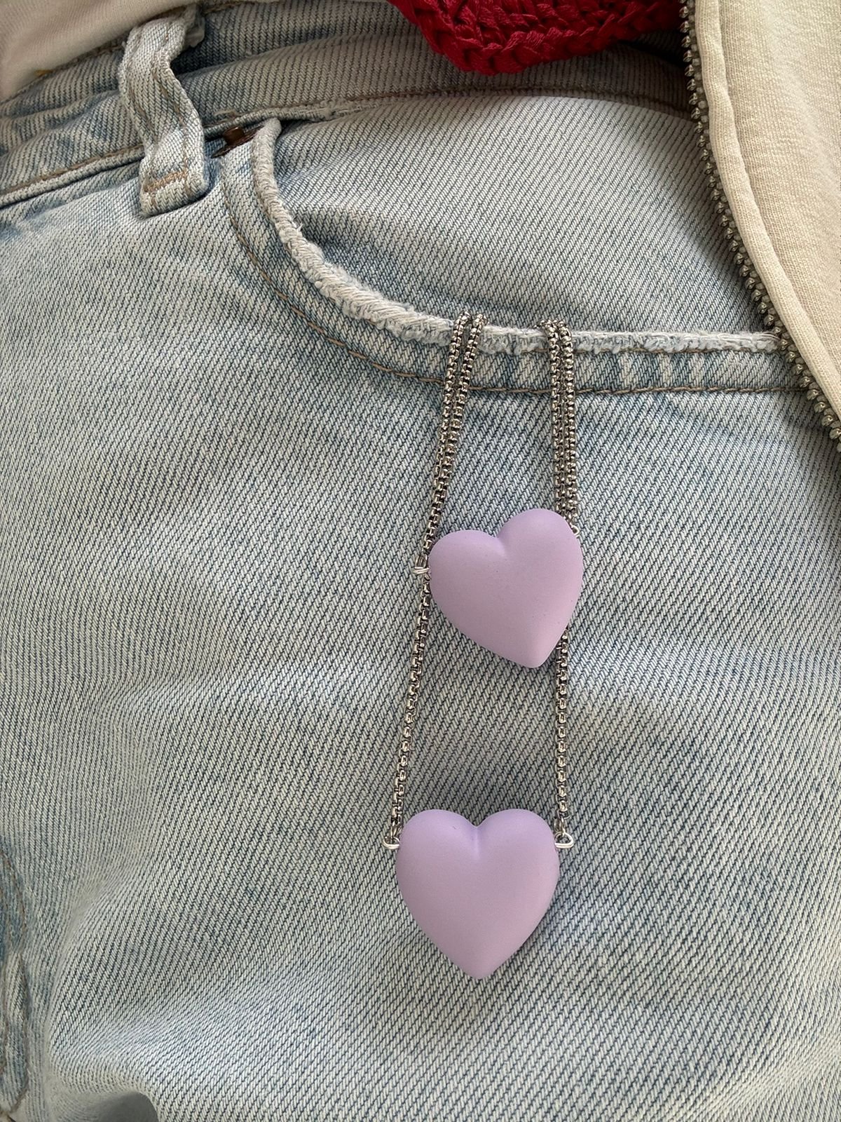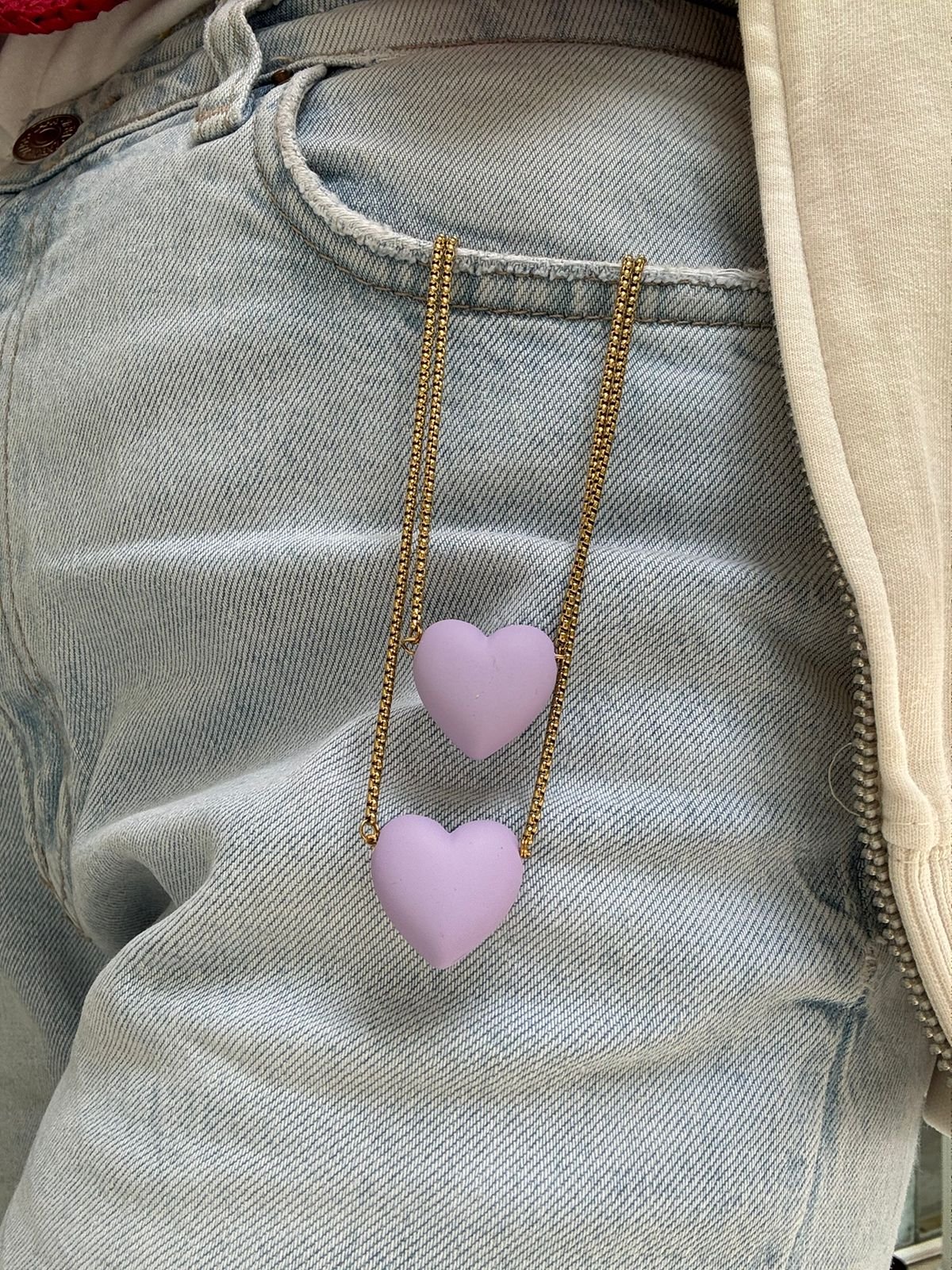 Ρομαντικό, αλλά με χαρακτήρα. Ένα κολιέ με καρδιά σε μωβ-λιλά απόχρωση που ισορροπεί ανάμεσα στο γλυκό και το κομψό. Φωτίζει το ντεκολτέ και δίνει μια διακριτική πινελιά χρώματος, ιδανική για κάθε στιγμή της ημέρας — από ένα απλό outfit μέχρι μια πιο ιδιαίτερη εμφάνιση.
