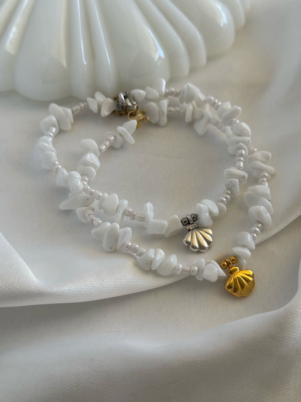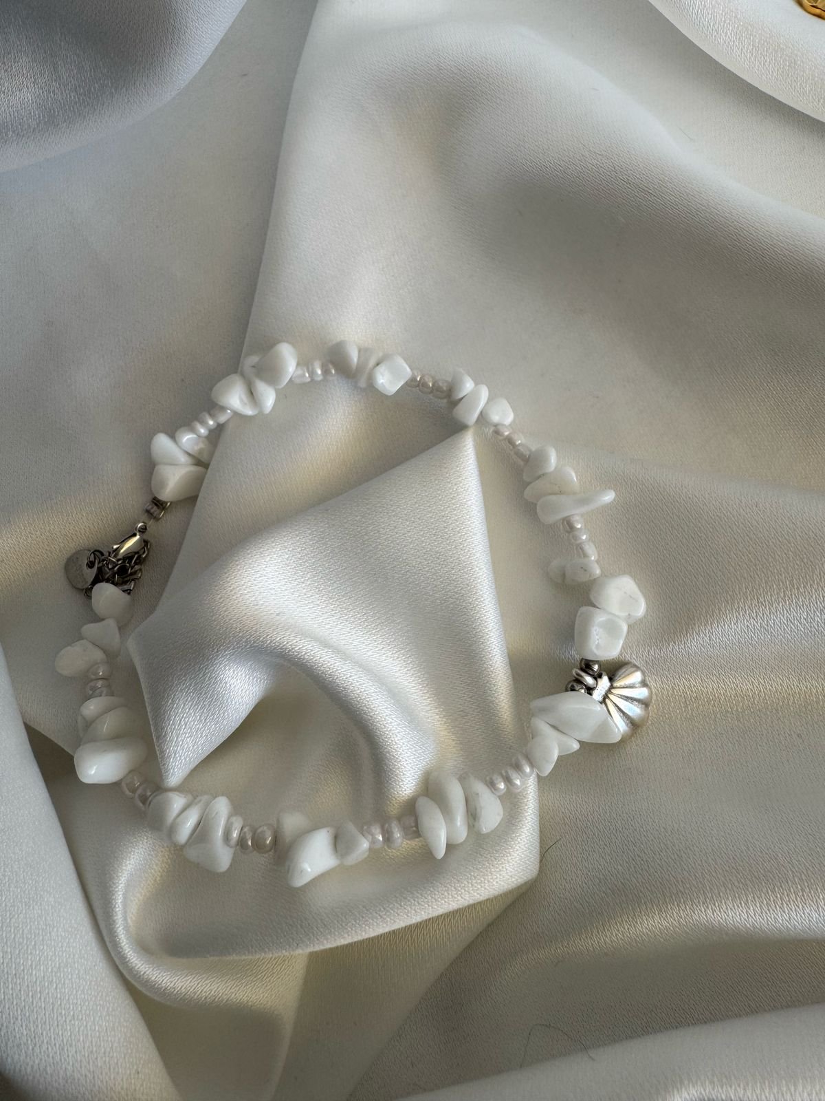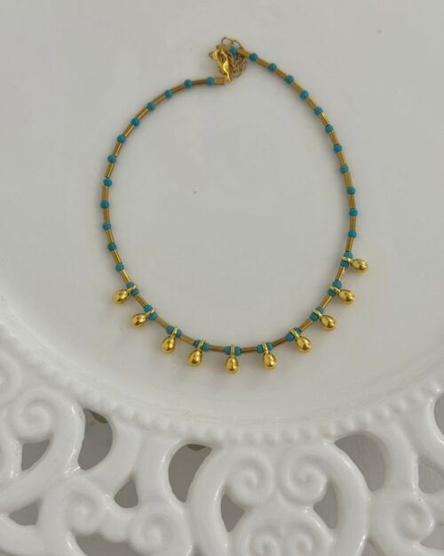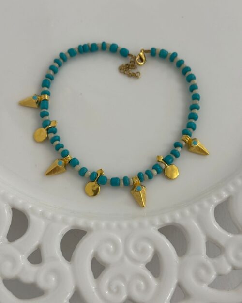 Βραχιόλι ποδιού με χάντρες ημιπολύτιμες και ορειχάλκινα επιχρυσωμένα/ επαργυρωμένα στοιχεία.