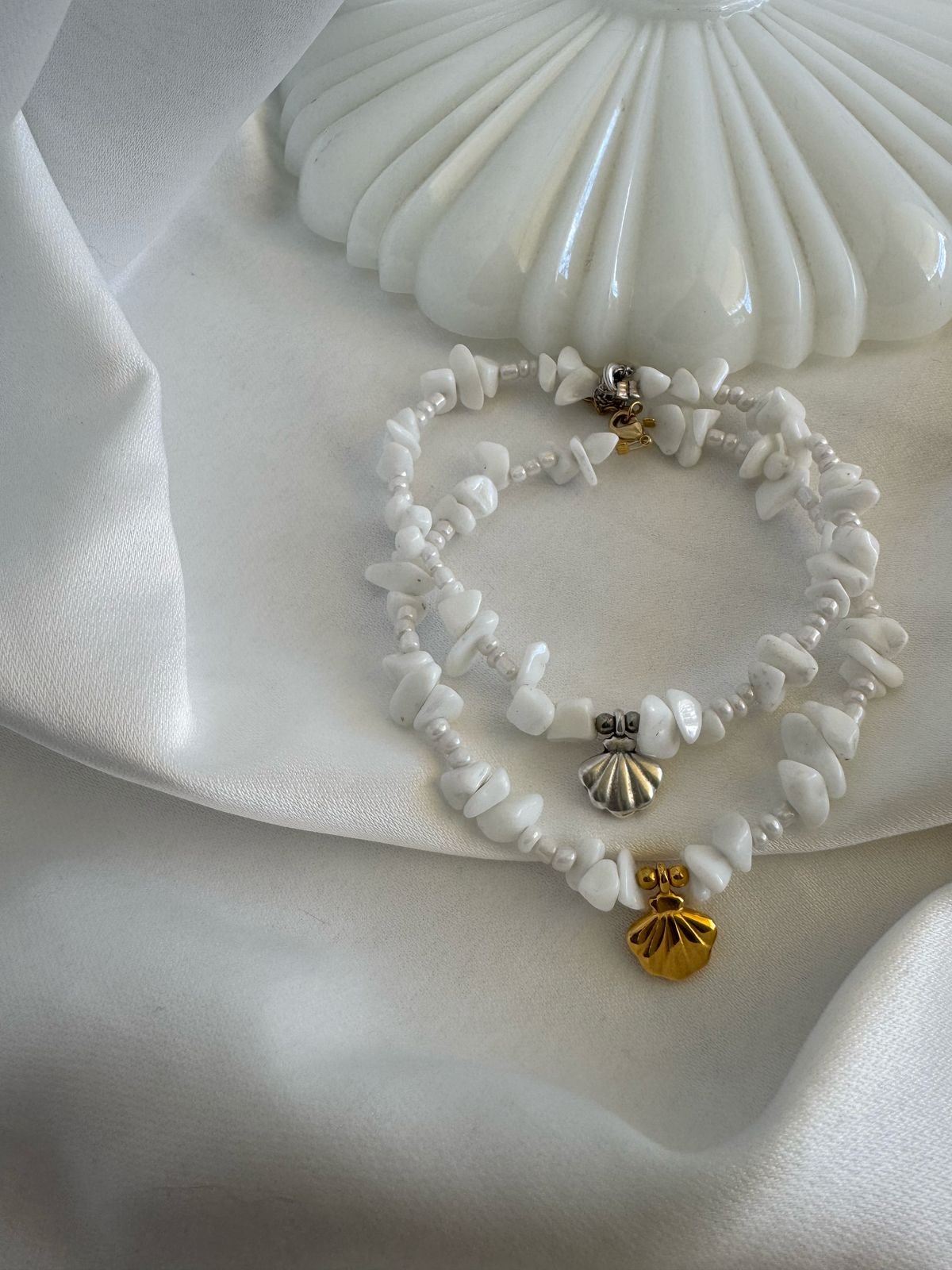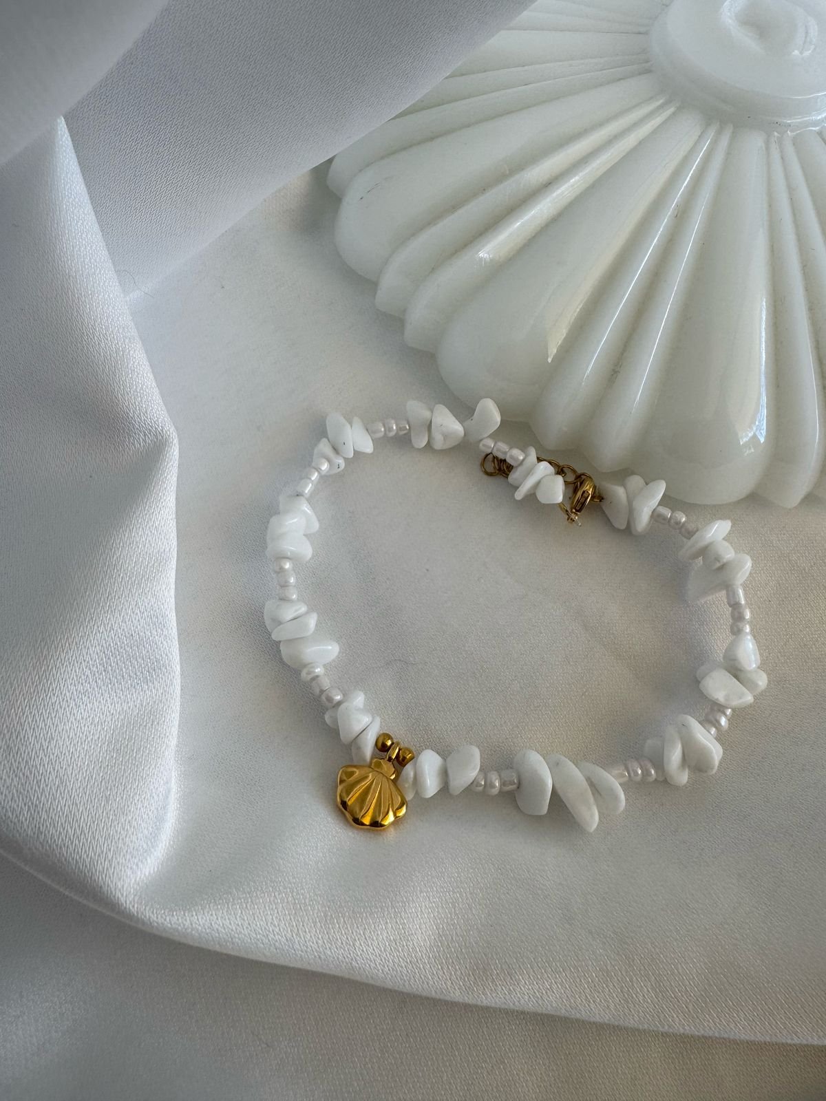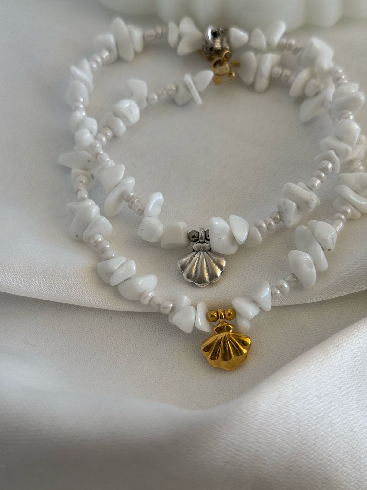 Βραχιόλι ποδιού με χάντρες ημιπολύτιμες και ορειχάλκινα επιχρυσωμένα/ επαργυρωμένα στοιχεία.