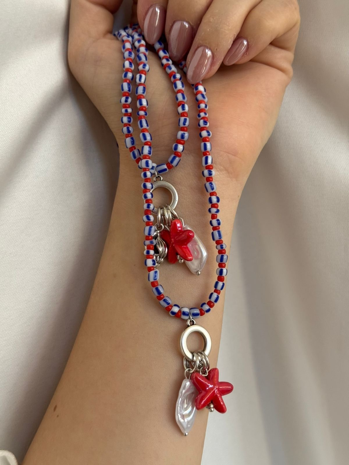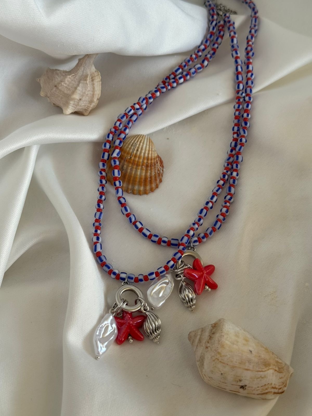 Κολιέ με κεραμικό στοιχείο, πέρλα και ορείχαλκινο επαργυρωμένο 925 στοιχείο.