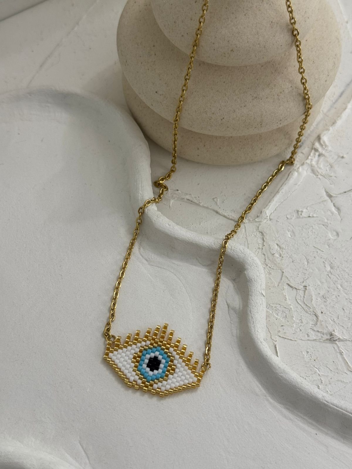 Ένα διαχρονικο ατσάλινο κολιέ με μάτι που συνδυάζει κομψότητα και συμβολισμό. Λεπτοδουλεμένο σχέδιο που αγκαλιάζει τον λαιμό με διακριτική λάμψη, προσφέροντας προστασία και στυλ σε κάθε σου εμφάνιση. Ένα κόσμημα που δεν περνά απαρατήρητο.