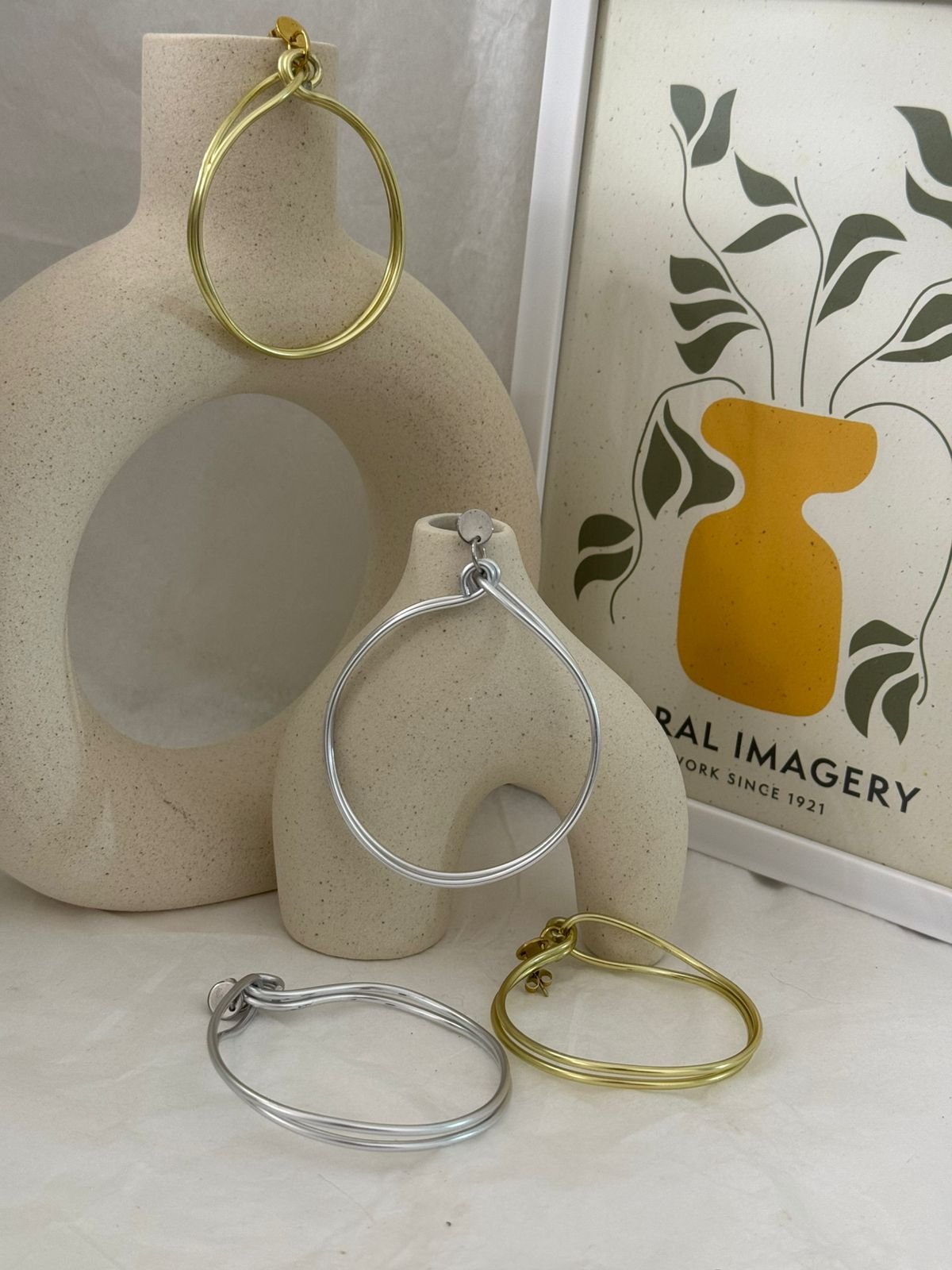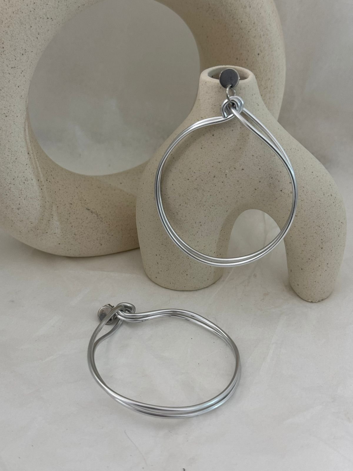 Χειροποίητα σκουλαρίκια από αλουμίνιο σε κομψό σχήμα κύκλου, με ατσάλινο κούμπωμα για άνεση και ανθεκτικότητα. Ελαφριά και μοντέρνα, αποτελούν μια διαχρονική επιλογή που φοριέται εύκολα από το πρωί έως το βράδυ, προσθέτοντας διακριτικό χαρακτήρα σε κάθε εμφάνιση.