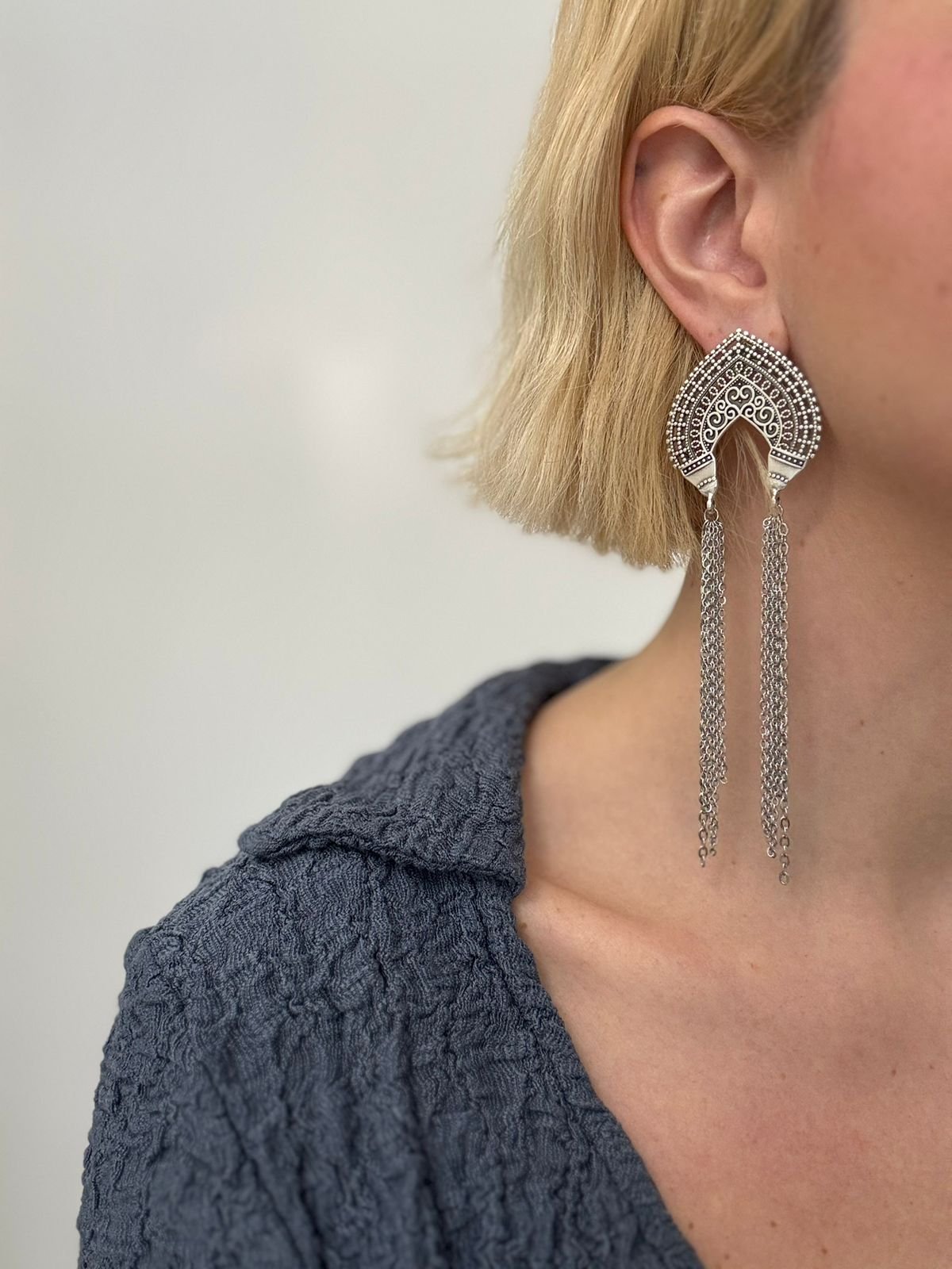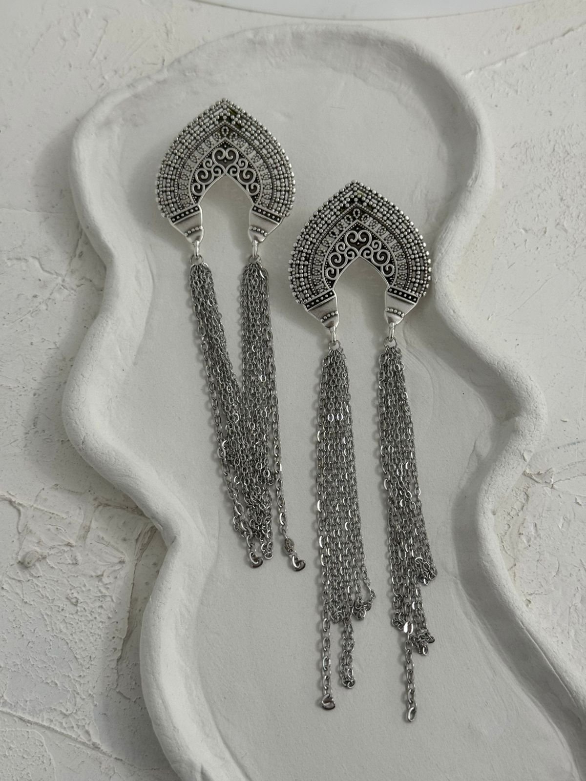Ορείχαλκινα επαργυρωμένα σκουλαρίκια με ατσάλινες αλυσίδες.
