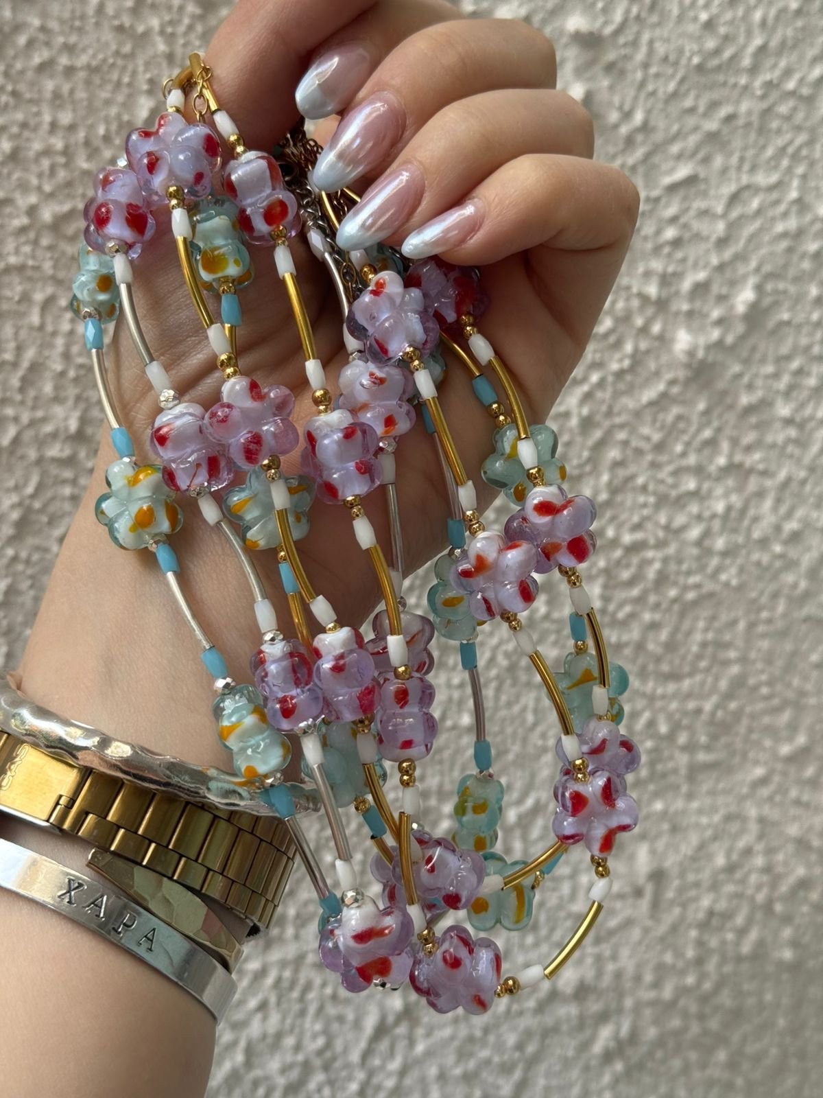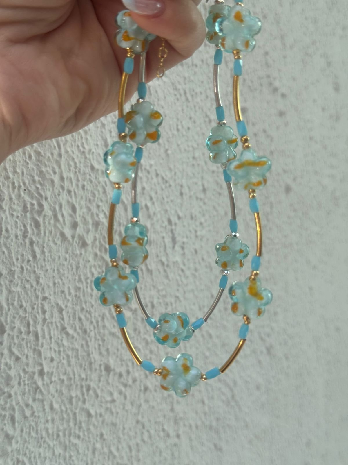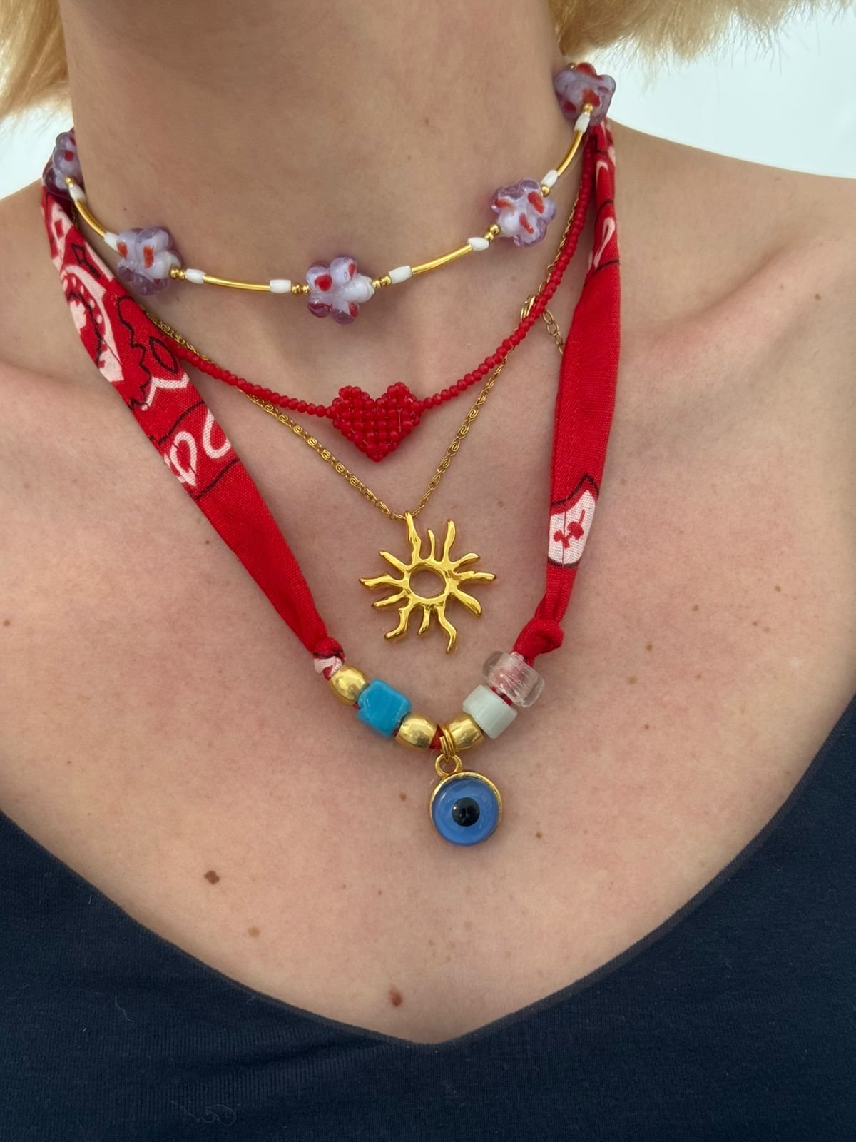 Κολιέ τσοκερ με γυάλινες χάντρες και ορειχάλκινα επιχρυσωμενα 24k/ επαργυρωμένα 925 στοιχεία.