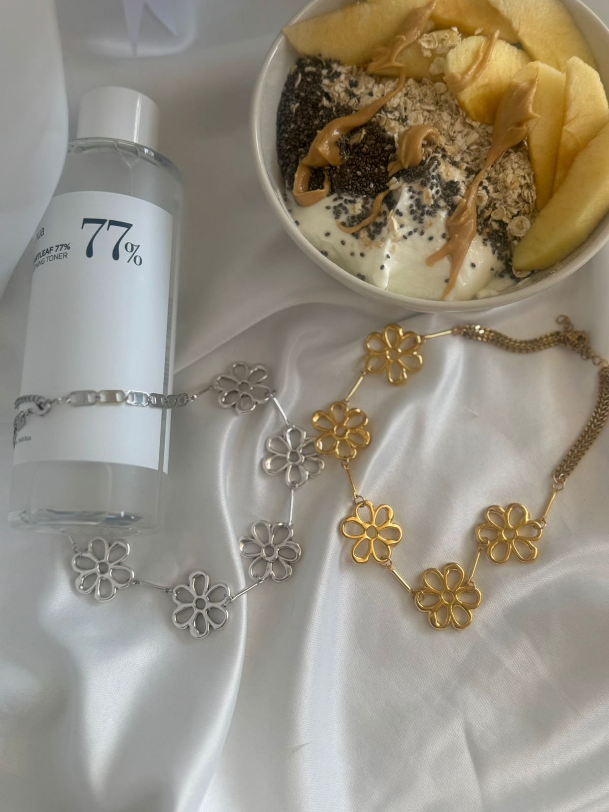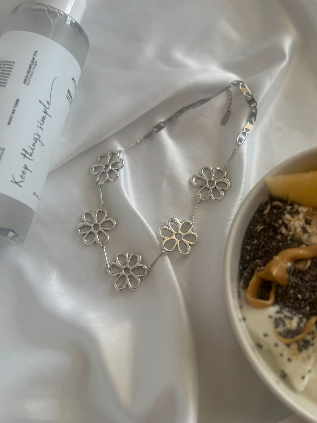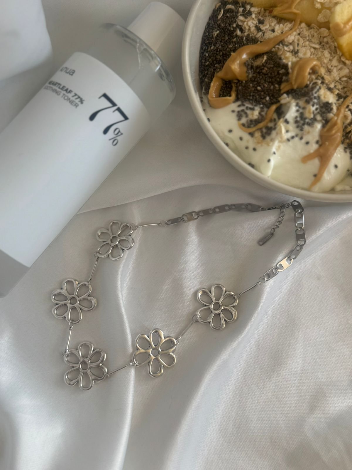 Κολιέ τσόκερ με ορειχάλκινα επιχρυσωμένα 24Κ/ επαργυρωμένα 925 στοιχεία και ατσάλινη αλυσίδα.