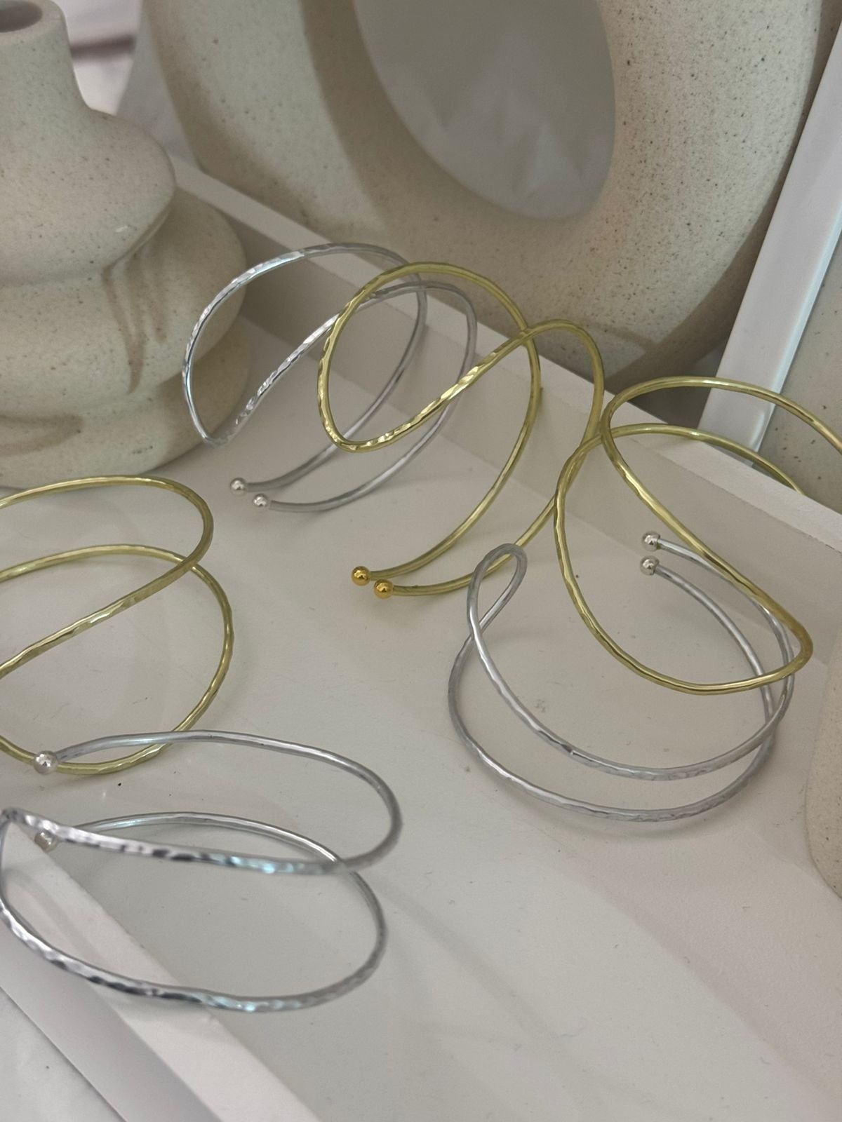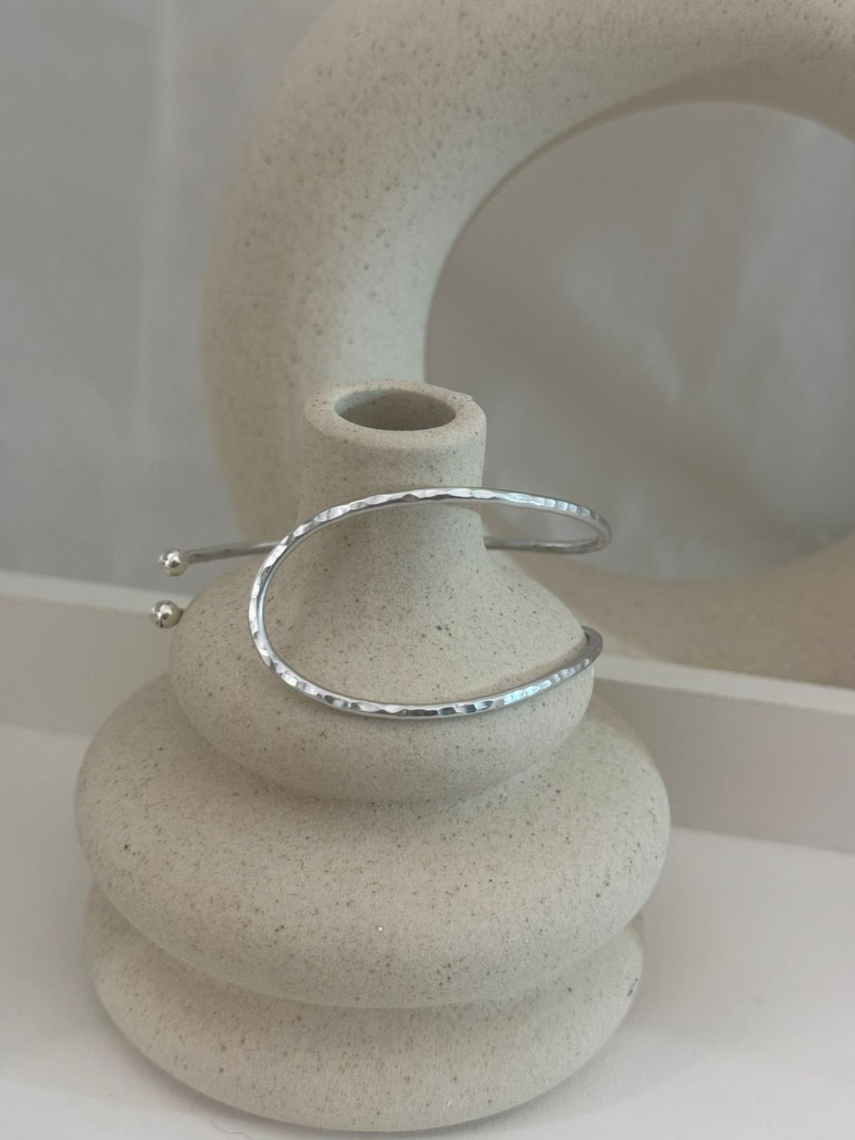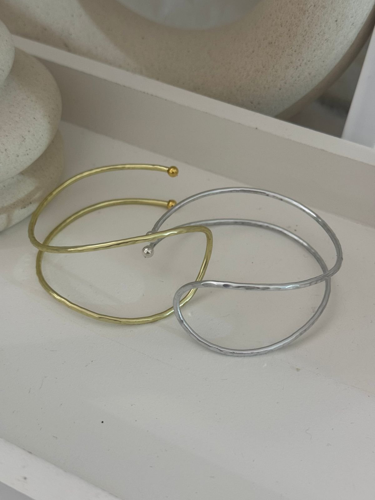 Χειροποίητη διπλή βέργα, σφυρηλατημένη στο χέρι με προσοχή στη λεπτομέρεια. Οι καθαρές γραμμές της συναντούν τη μοναδική υφή του σφυρηλατήματος, δημιουργώντας ένα διαχρονικό κόσμημα με μοντέρνο χαρακτήρα. Ιδανική για καθημερινή κομψότητα αλλά και για ιδιαίτερες εμφανίσεις, φοριέται μόνη της ή σε συνδυασμό με άλλα κομμάτια.