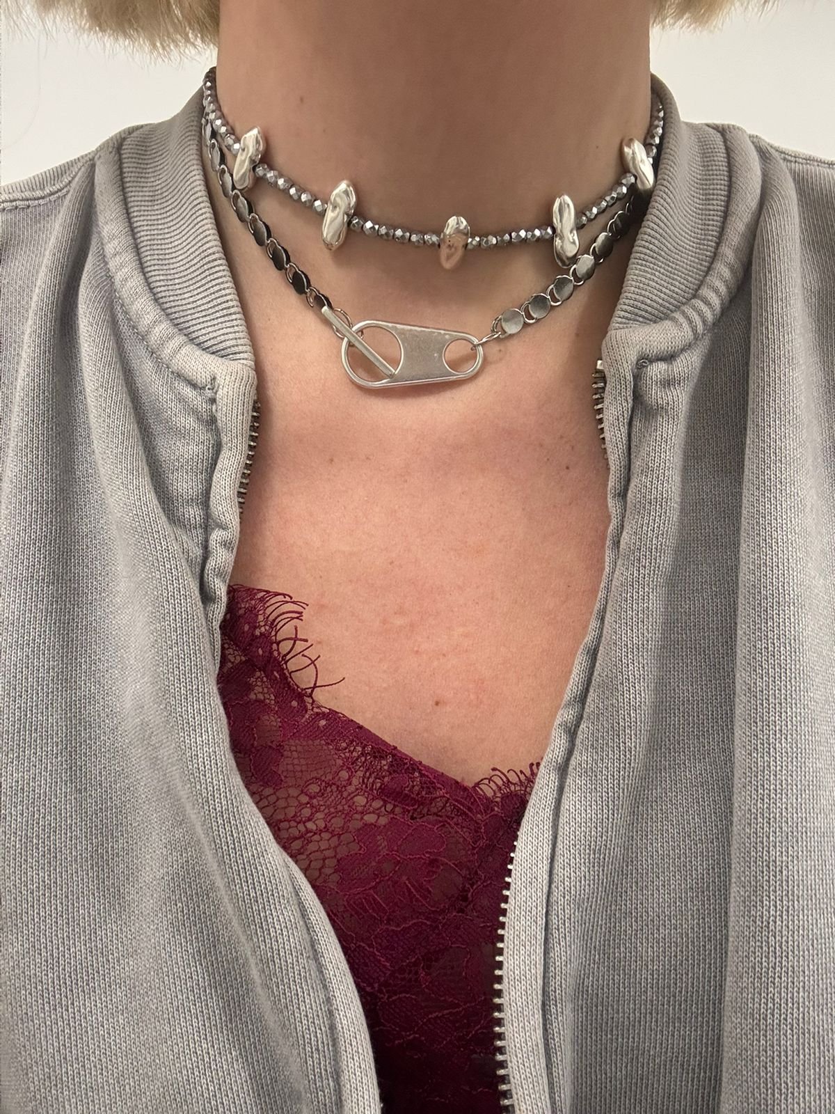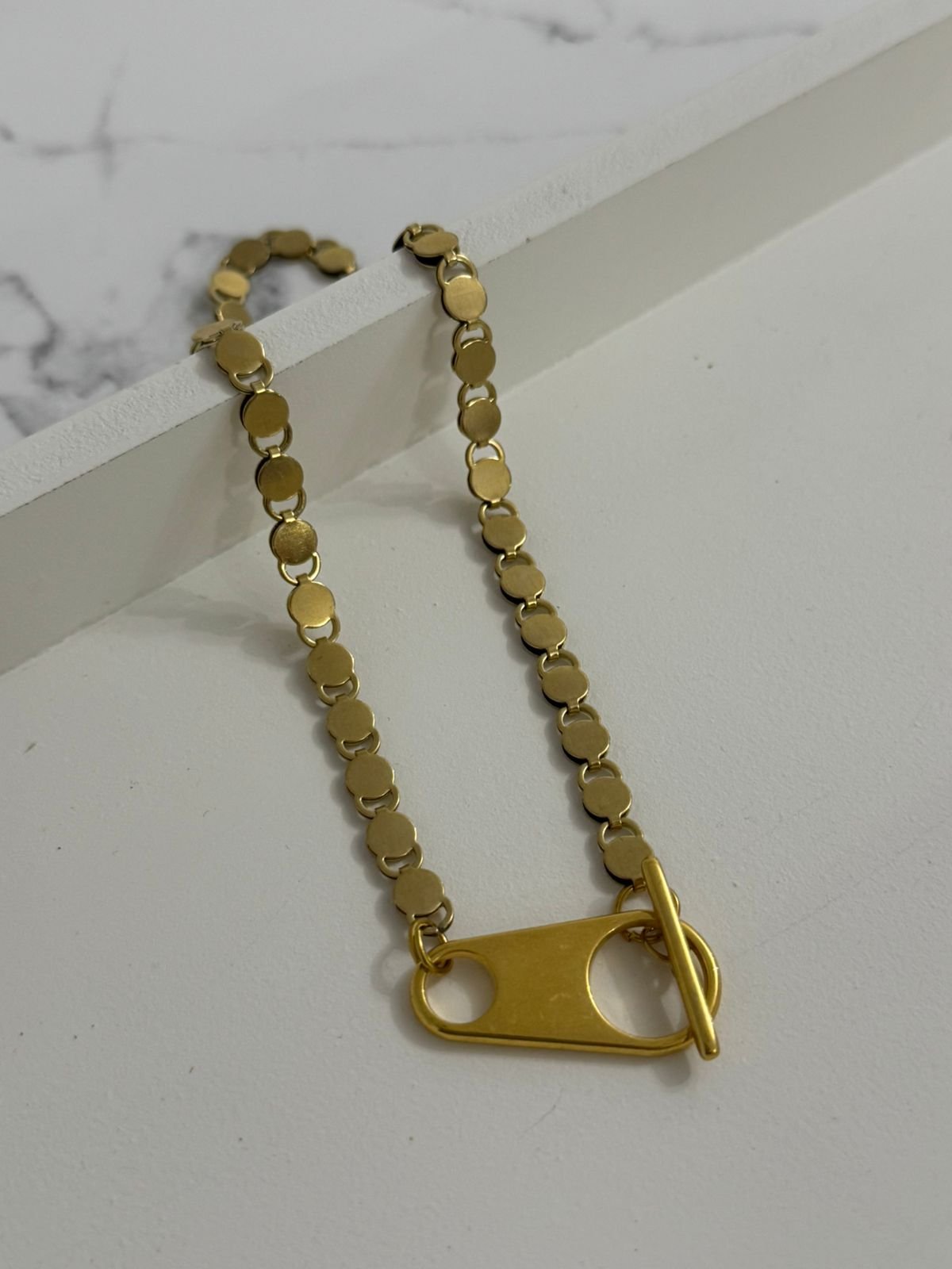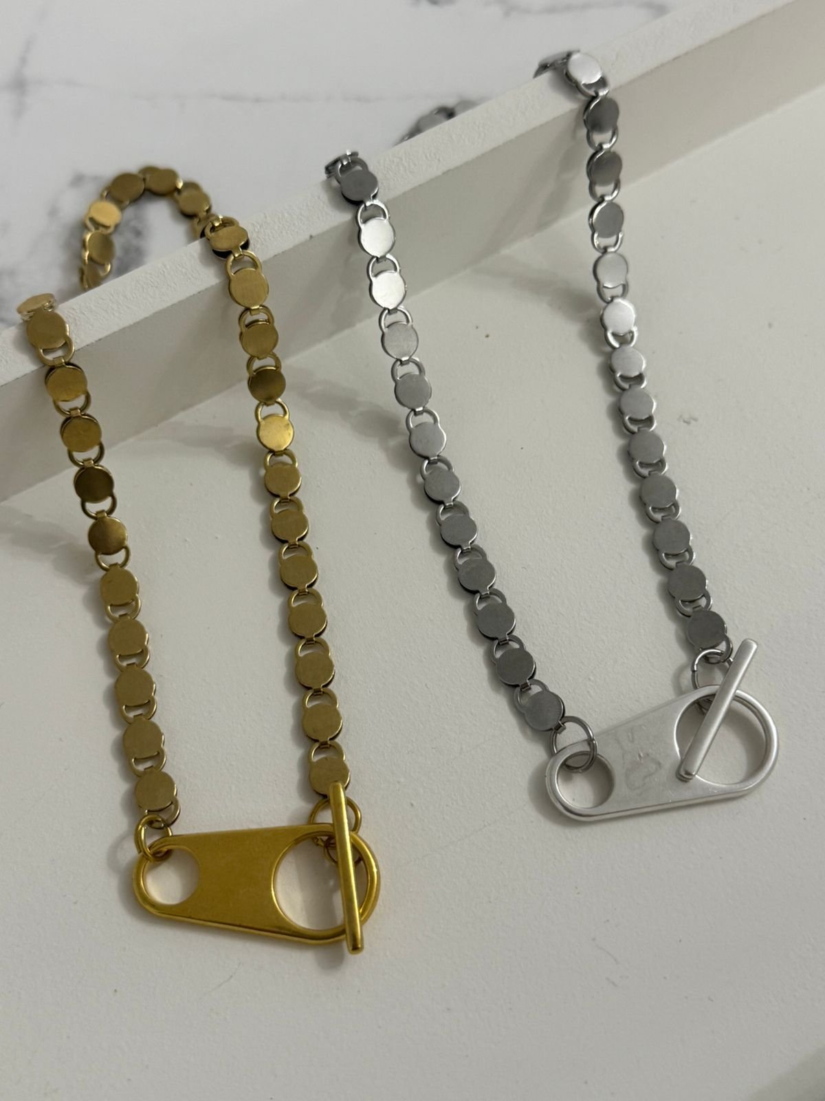 Ατσάλινη αλυσίδα με ορειχαλκινο επαργυρωμένο/ επιχρυσωμενο στοιχείο.