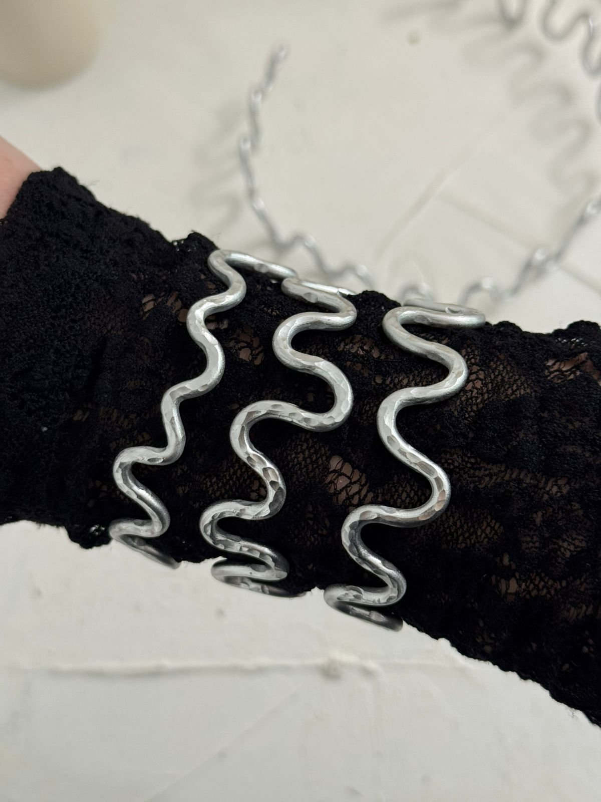 Χειροποίητο κυματιστό βραχιόλι από σφυρήλατο αλουμίνιο, σχεδιασμένο να αγκαλιάζει τον καρπό με φυσική ροή και ελαφριά αίσθηση.