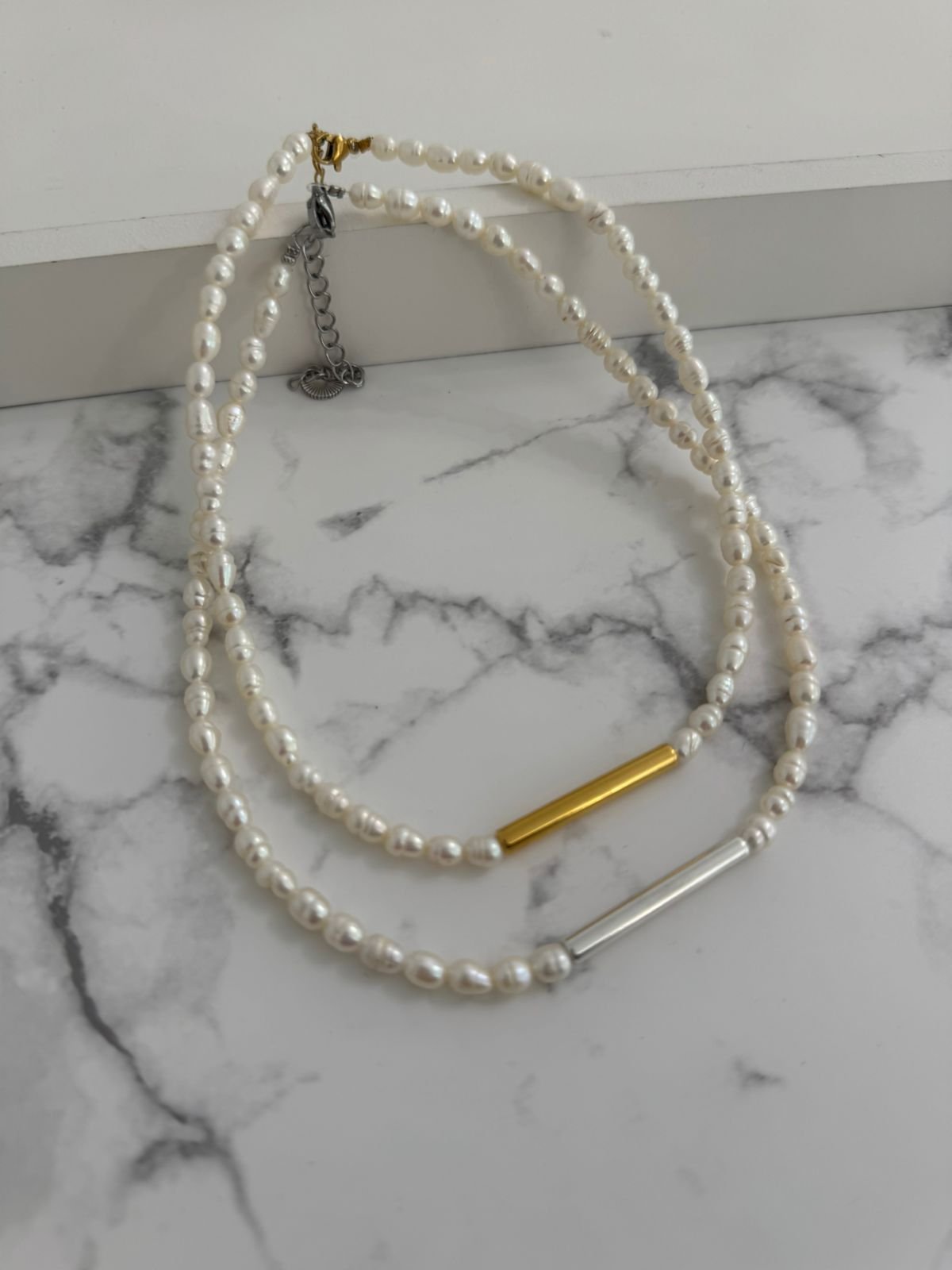 Φυσικά μαργαριτάρια με ορειχαλκινο επαργυρωμένο/ επιχρυσωμένο στοιχείο.