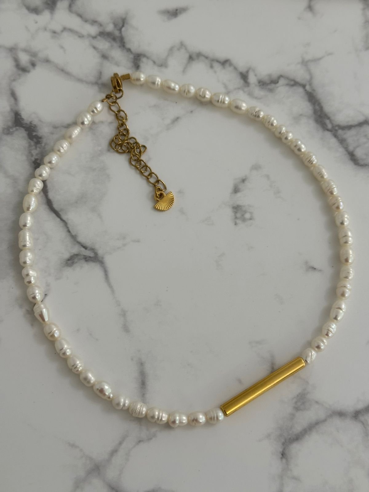 Κολιέ choker με μαργαριτάρια και μπάρα στο κέντρο
